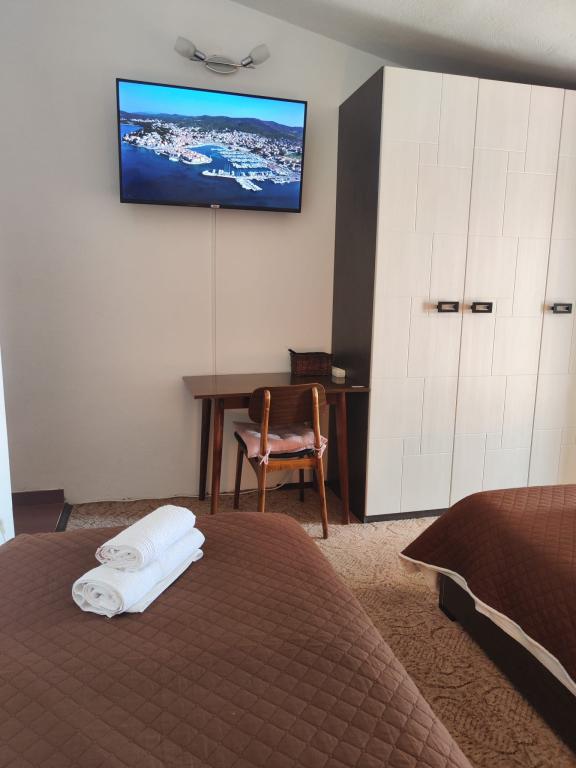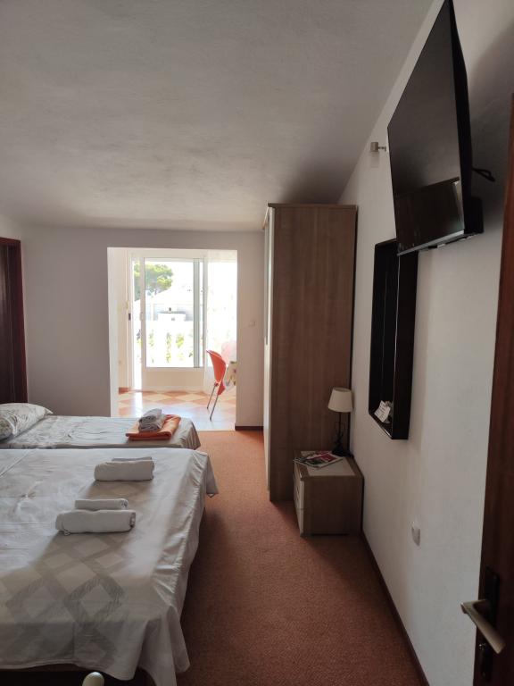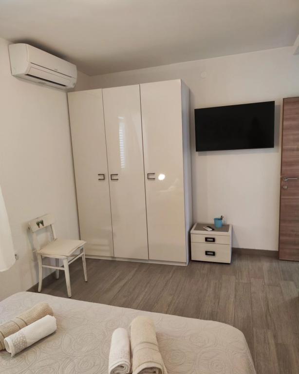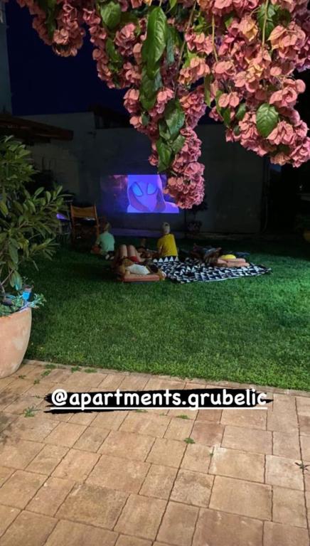 Apartments/OPG Grubelić include two separate houses located next to each other. They are located near all important facilities (shop, beach, town center) and are ideal for a family vacation. The houses are divided by the entrance to the yard with a large, free parking lot for 6-9 vehicles, as well as a landscaped garden with a barbecue and a closed terrace that can be used by guests from both accommodation facilities. Object 1 is rented entirely to one group, and consists of two air-conditioned bedrooms, one of which has a kitchenette, private bathroom and exit to the terrace. A Smart TV is installed in the second room. The apartment has a large, fully equipped kitchen and an air-conditioned living room with two sofa beds and a TV. Object 2 consists of several studio apartments and apartments with two bedrooms. All apartments have a balcony that is protected from the sun (the exception is apartment A2, which does not have access to the balcony). The facilities are located 2 minutes' walk from the first store, and 5-10 minutes to the beach/center.