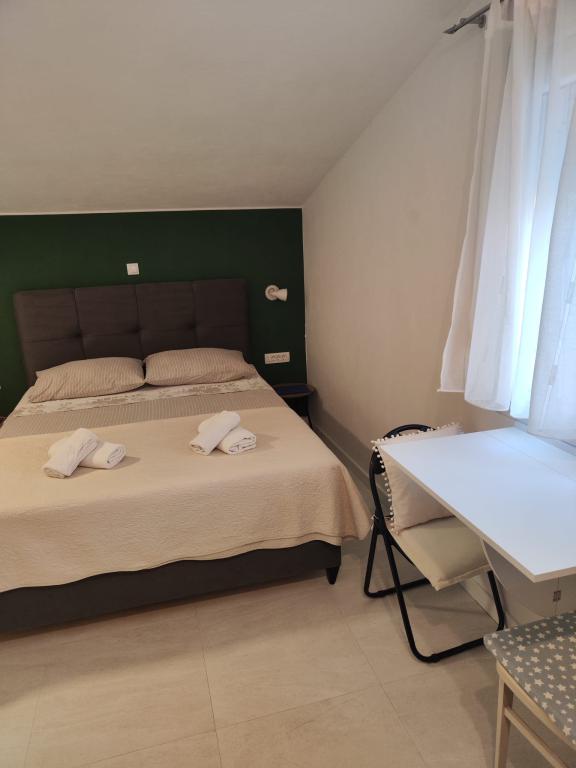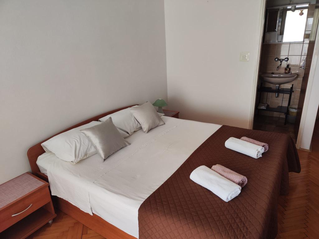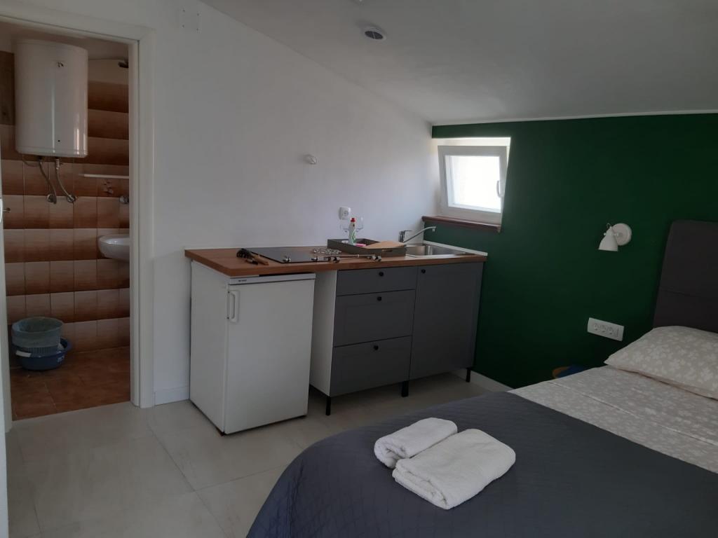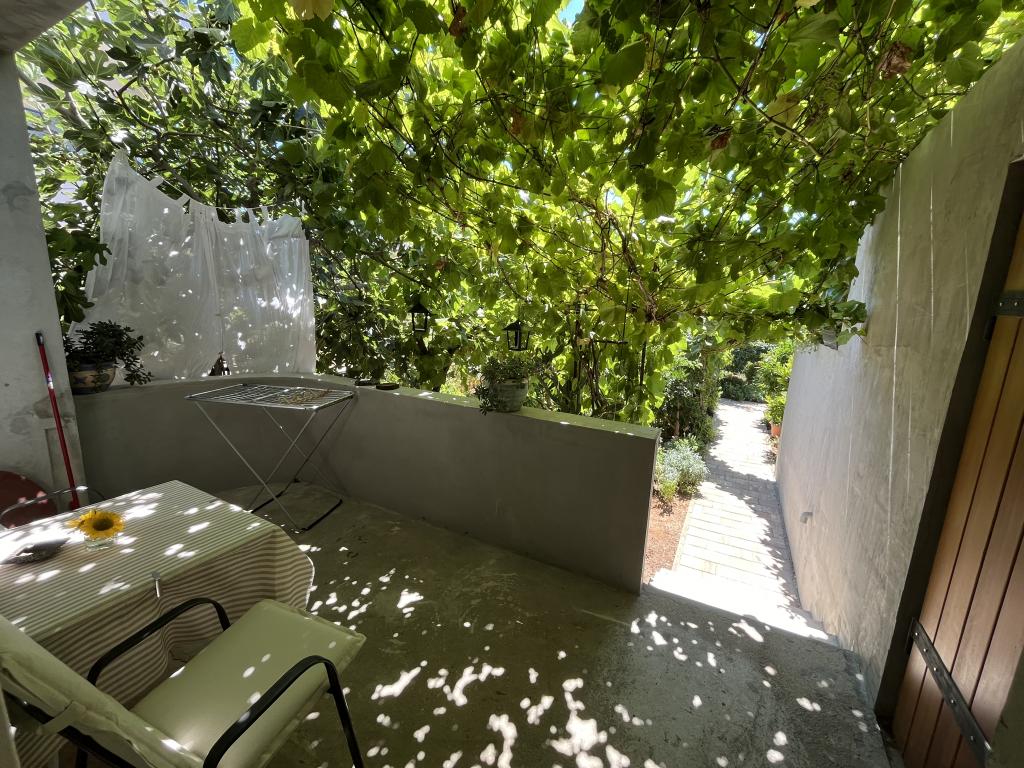 The owners are hospitable, kind, approachable. They offered us lemonade when we arrived. The apartment is clean, tidy, just right for 2 people. Clean bed linen, clean towels and a clean bathroom. The apartment is covered with vines for shade, and has a separate terrace (special wooden door), so privacy is excellent. Plodine, Ultra and Konzum are only a 5-10 minute walk away. On the way to Plodin, there is Ultra, which is a 2-minute walk away. The town center is also only a 5-minute walk away, as are the beaches, which are beautifully decorated. It was quiet in the apartment, no one created noise and disturbance, and it is a really great place to rest. All in all, an incredibly good apartment with even better owners. 10/10