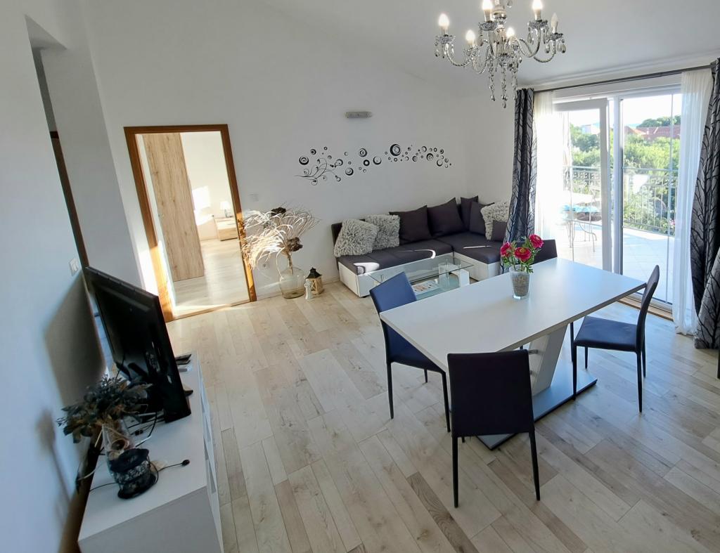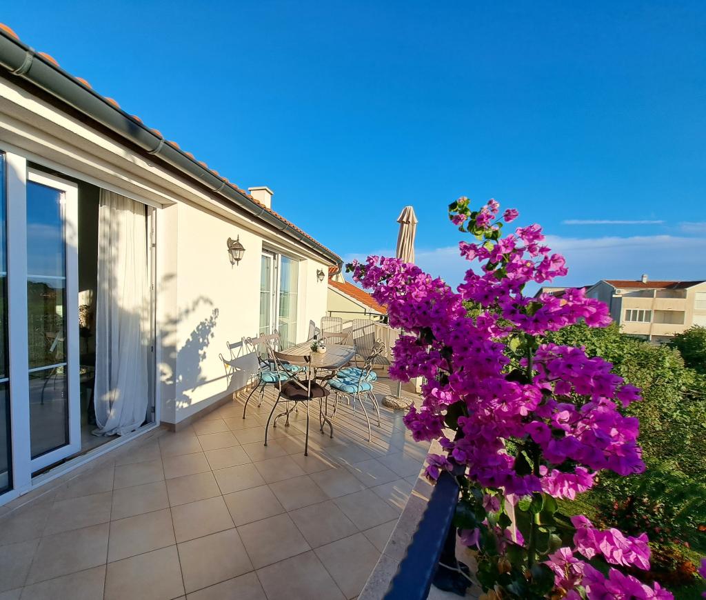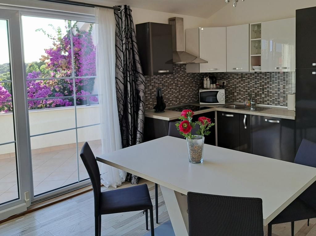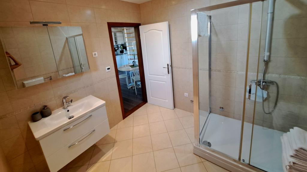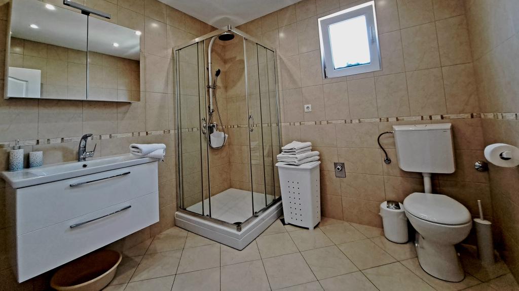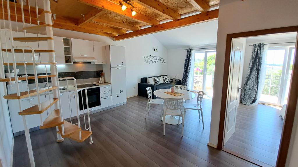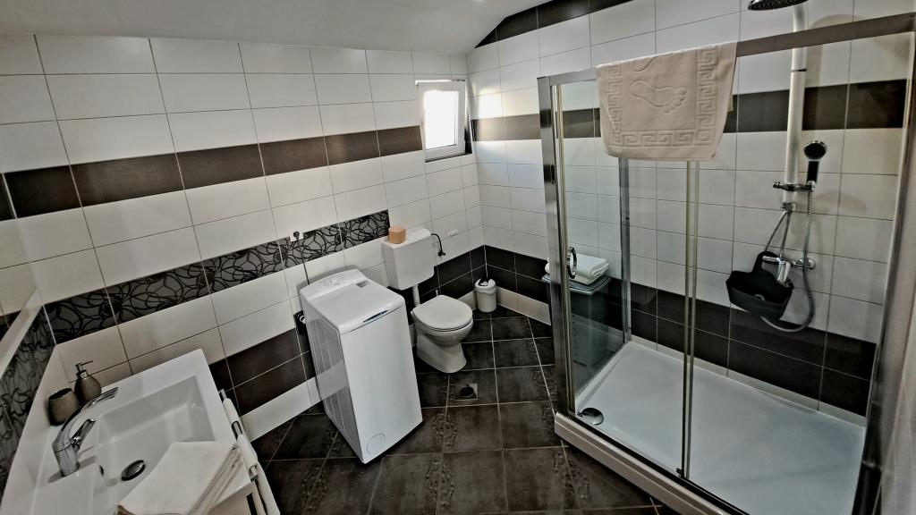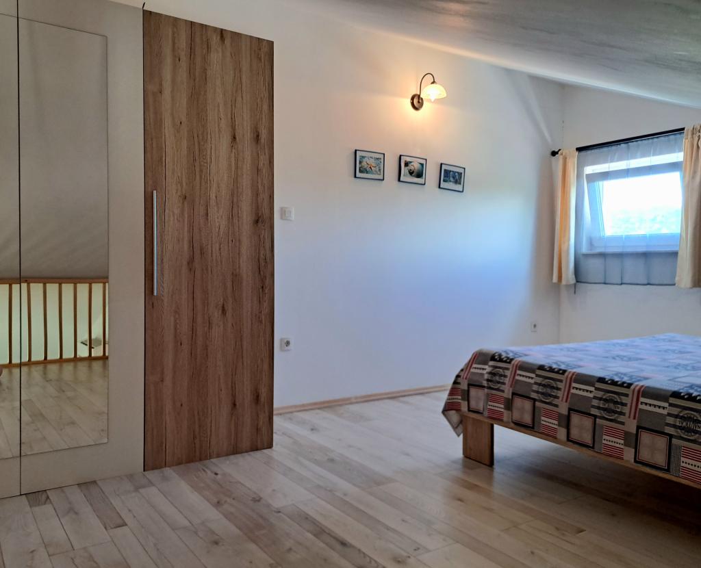 Apartments "OAZA MIRA" are located in a private, family house, 3 apartments, capacity from 4 to 18 people. Surrounded by greenery and flowers, a rest for the eyes and ears. Here you will be put to sleep and woken up by birds. The apartments we offer are 65 m² in size, two are two-story (galleries with a bedroom of approximately 20m2. All apartments have two bedrooms, a dining room, a fully equipped kitchen where you will find everything you need (microwave, toaster, oven, coffee maker, washing machine), large bathrooms. The apartments are spacious and air-conditioned. Free internet (wi fi), satellite TV. All apartments have a terrace or balcony with a view of the sea, garden and hills. Free private parking is available within the building and no reservation is required.