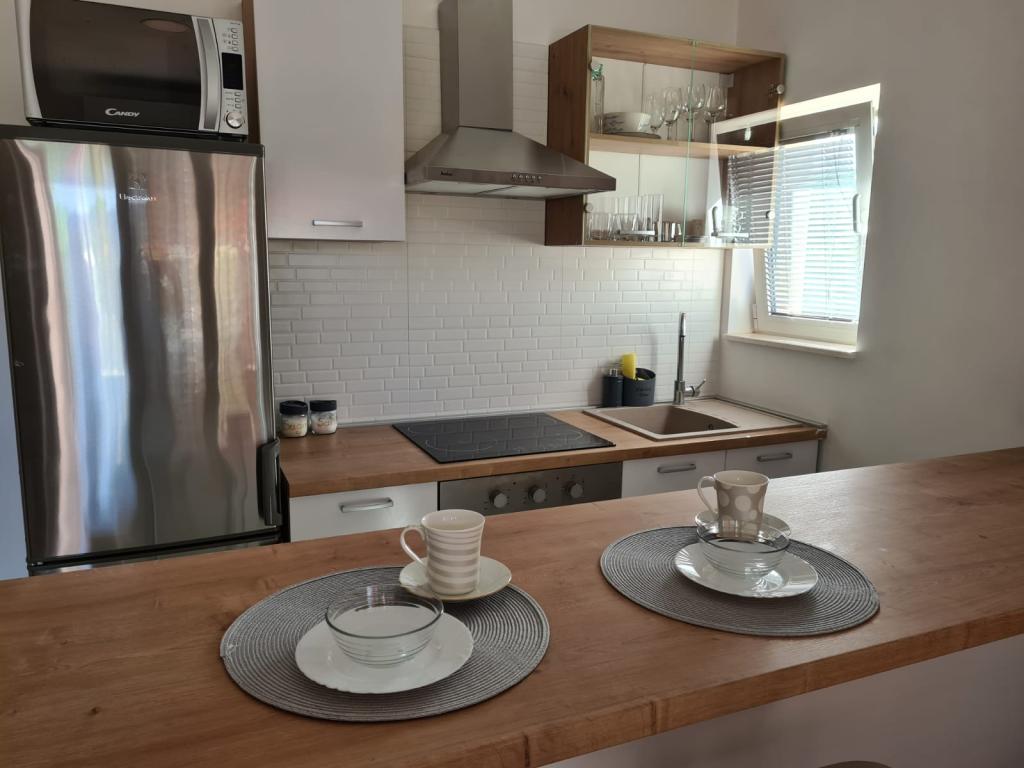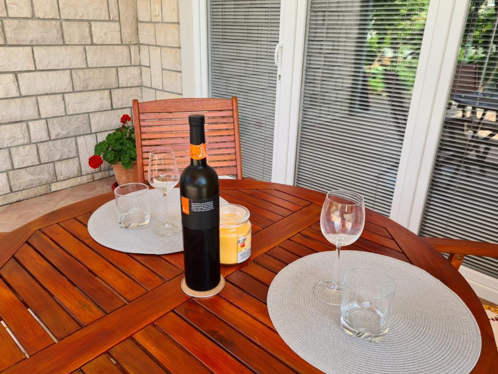 We had the great pleasure to spend a wonderful 13 days in the apartment 2 + 2. Fantastic, extremely nice and obliging hosts, very clean (on a scale of 10 I give 20) and tastefully furnished apartment. The car is in the shade thanks to the covered parking lot. Walk to the beach (about 5 minutes with a dog), a charming, quiet town, crystal water in the sea. The most important thing is that thanks to the small number of rented apartments (3) it is quiet and friendly. In the apartments you will find everything you need: towels, a hair dryer, an iron, a microwave, a toaster, a linen dryer, a washing machine, and even a first aid kit. We cordially greet Mera and Dragan and wholeheartedly recommend staying in your apartments. Iwona and Jan and our dog, Psotek POLSKA