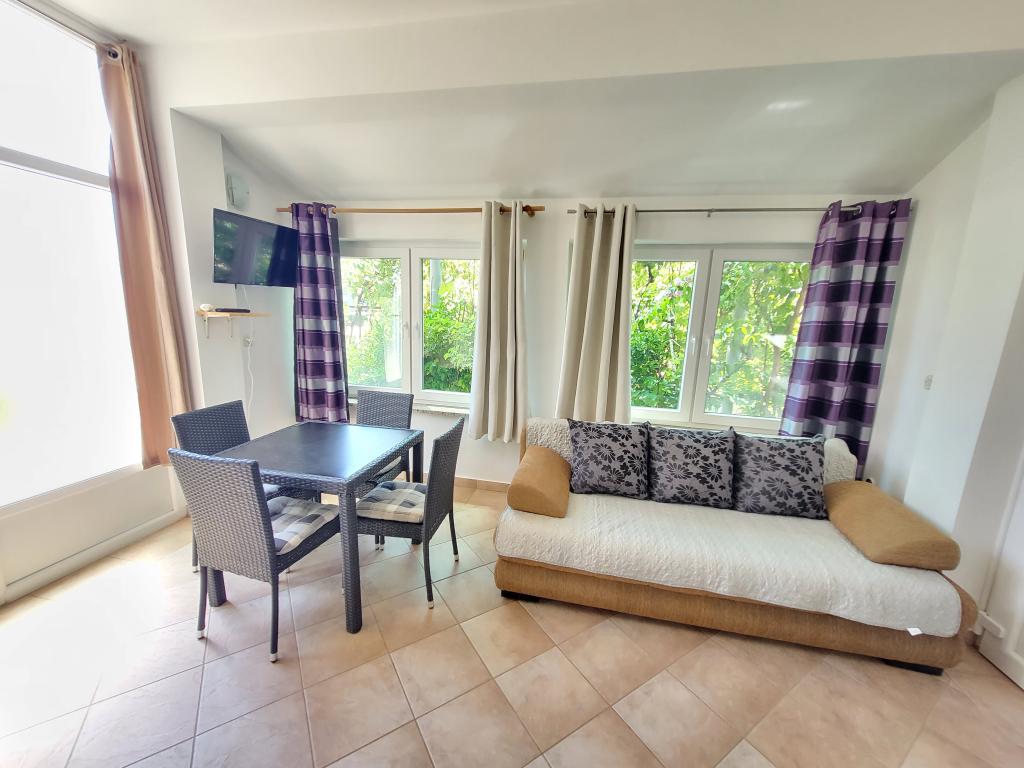 Welcome to Vinka apartments in the quiet town of Tribunj. Located in a quiet location, our apartments are only a 2-minute quick walk from the sea beach Bristak and only 300 meters from the bustling city center. We offer five different apartments, each equipped with amenities such as parking, satellite TV, air conditioning and wireless internet to ensure a pleasant stay. Two of our apartments are on the second floor, two on the ground floor and one on the first floor. We have three two-room apartments and two one-room apartments. Each apartment has a fully equipped kitchen, a toilet and a balcony or terrace for relaxing. The apartments on the second floor offer a beautiful view of the sea, the islands and the surrounding landscape, while the apartments on the ground floor are surrounded by the greenery of our garden. From our Vinka apartments, you can reach the center of Tribunj via a beautiful path. In the immediate vicinity you will find various taverns and restaurants that serve delicious dishes of Dalmatian and Mediterranean cuisine, complemented by excellent local wines that will surely delight your taste buds. Experience the perfect combination of comfort and practicality in Vinka apartments, your home away from home.