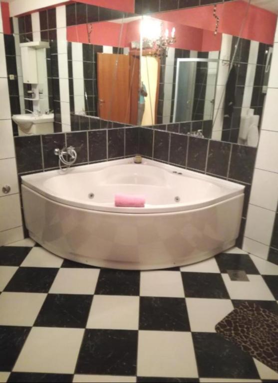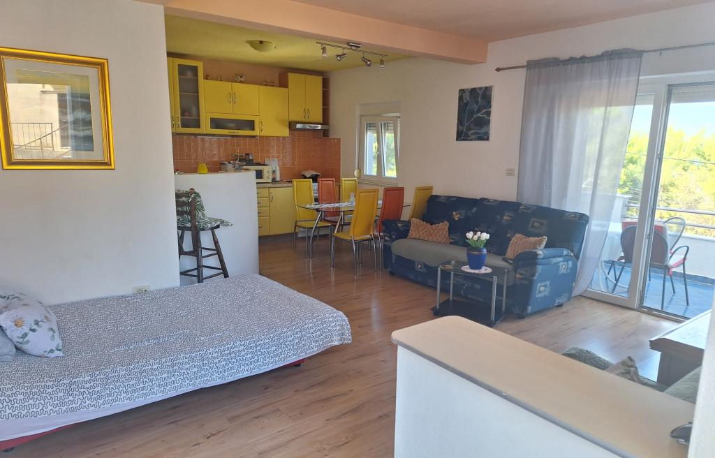 Apartment Laura is a new,luxury apartment for 6 person situated in nice,green and peaceful area. The size of apartment is 80 square meters+balcony of 8 square. It consist:one triple bedroom,one double bedroom,large bathroom with jacuzzy tub and shower tub,big living room with sofa for one person,fully equipped kitchen and balcony with a beautiful see wiev. Kitchen has fridge,owen,microwave,coffee. maker,dishwasher,dishes and eating utensils. Apartment has two air conditioners.Bedrooms are fully equipped(with bed clothes and towels).Living room has TV,DVD,wireless internet,sofa,two armchairs,table and chairs,and dresser. Apartment is fully equipped with everything for pleasant stay. Behind the house is a free parking for 2 cars.You have 1 minute walking to the gorgeous pebble beach surrounded by pine trees. The distance from apartment to the city is 1500 meters. The closest market is 500 meters from the apartment.