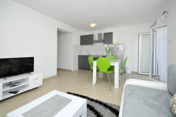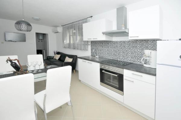 I spent two weeks with a charming family. The apartment we lived looks exactly like the pictures. The other two apartments also because I had the opportunity to see them. All apartments are newly renovated and are finished in style, really classy. They have all the amenities, from spoons, ending with pots and towels. The kitchenette has a large fridge freezer and oven with hob and oven. There is also wifi and air conditioning. The apartment has a long balcony, which even has a lot of shade in the afternoon. The owner Ana is a lovable woman who doubles and triples, to while away the man to stay. Divided into valuable information on what to see and treats home rakija. I recommend to visit the national park Krka, church on the rock at the end of the road in Slatine. You can also go to Split. As for the beach is worth going to the beach or in the Lower Labadusa Okrugu that are not overcrowded and have beautiful views. If someone is looking for entertainment on the beach, I recommend the beach in Copacabana Okrugu Upper. Trogir you can safely go on the legs, about 15-20 minutes.