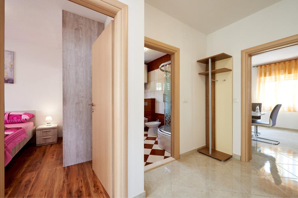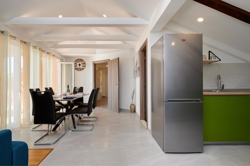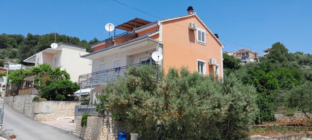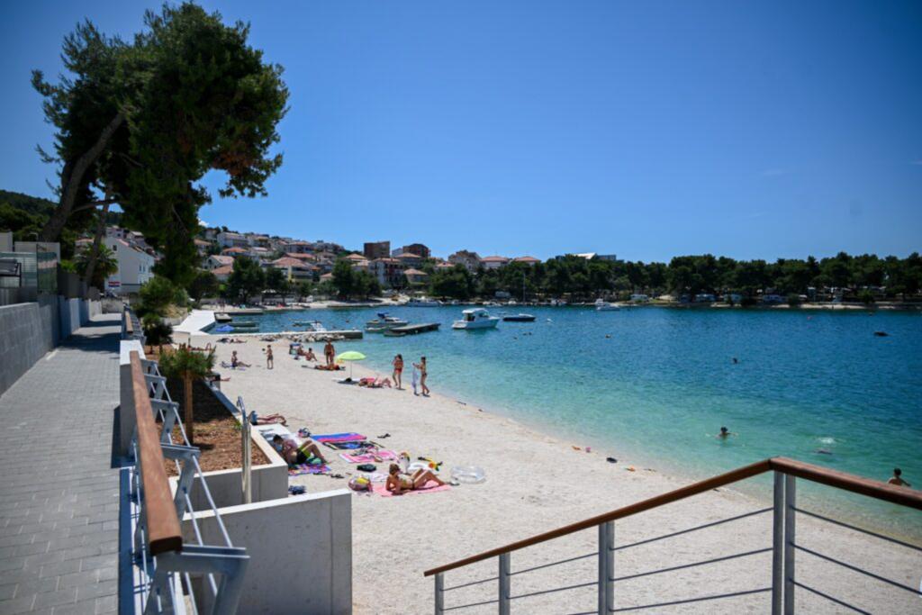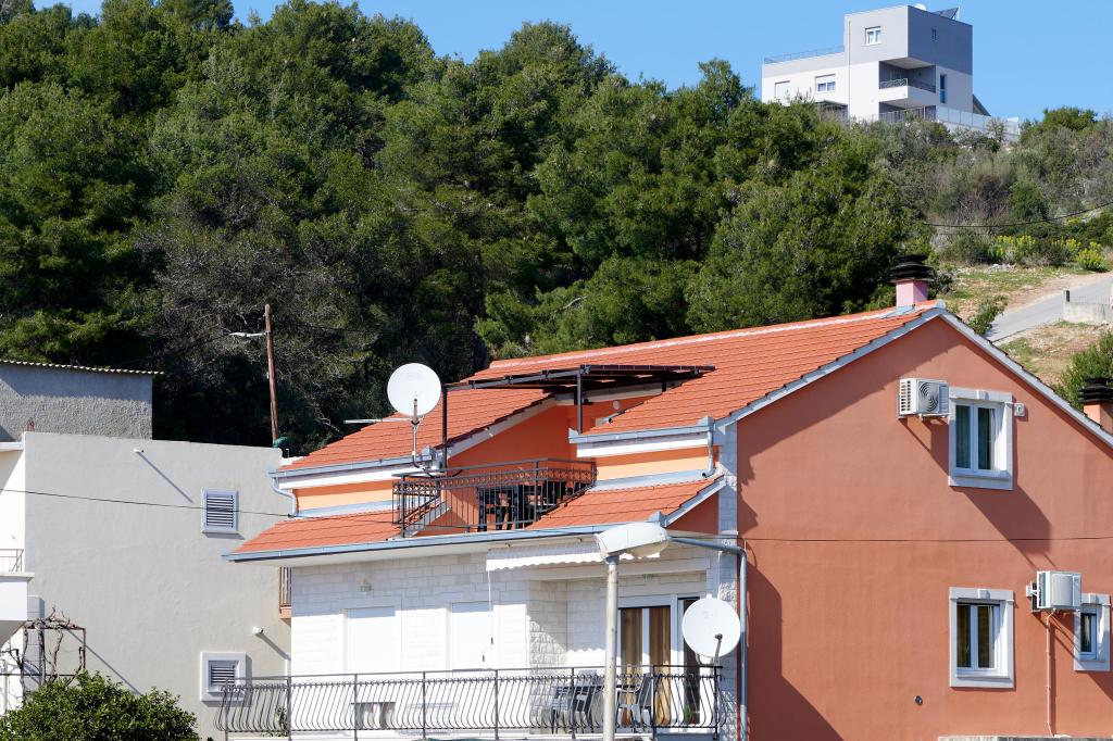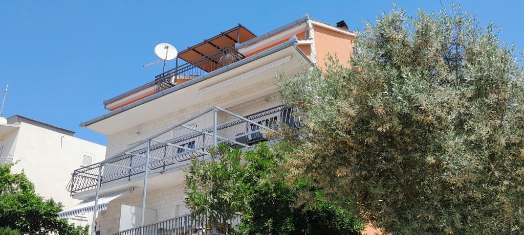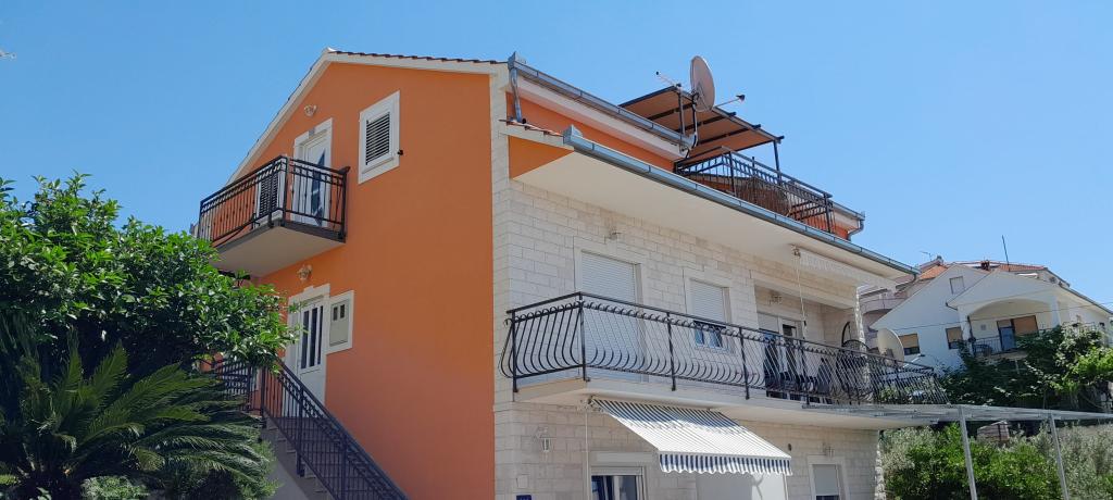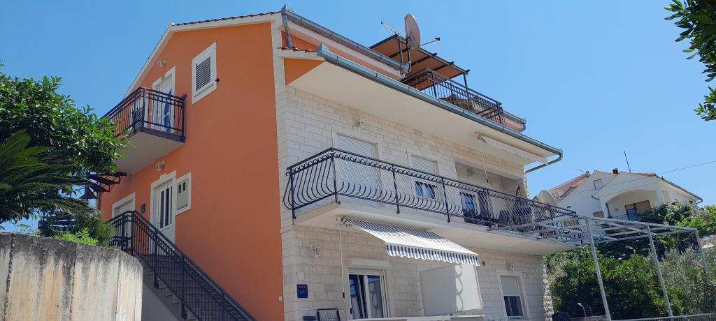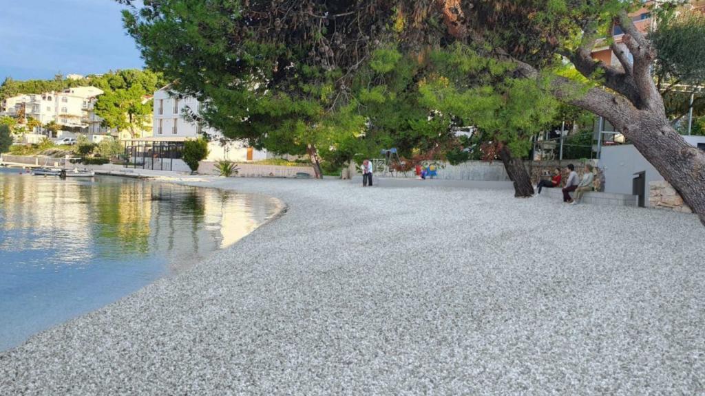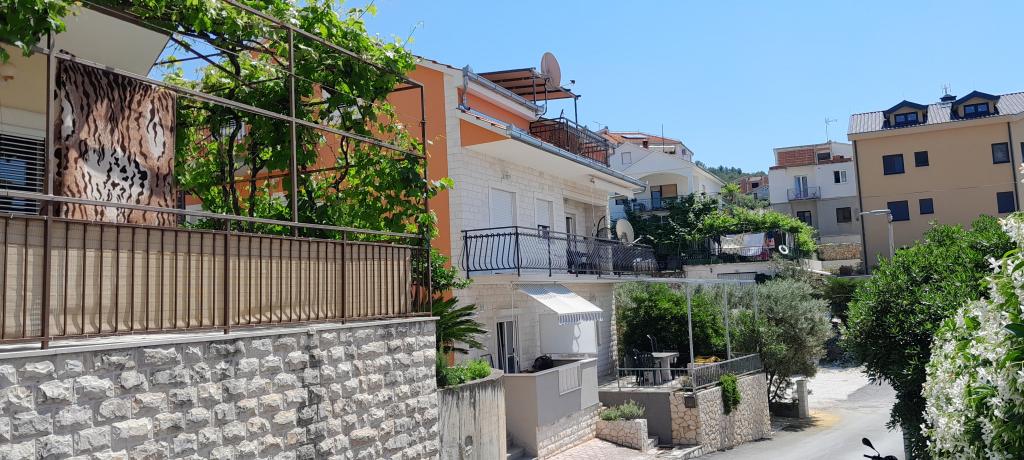 Apartments Magdalena are comfortable and well-equipped. They are located on the island of Čiovo, just 1.3 km from the center of the old town of Trogir. They have a beautiful view of the sea and the surrounding area. The apartments are located in a quiet neighborhood, just 250 m from the nearest beach. Restaurants, a supermarket, an ATM, a bus station and a boat line to the center are within 400 m of the apartment. The apartment is accessed by a road that goes up a hill. The equipment includes air conditioning, free parking, WiFi, a fully equipped kitchen, cable TV, a washing machine, a dishwasher... The apartments are 75 and 85 square meters plus outdoor terraces with comfortable armchairs and egg-shaped hanging swings. Apartment 1 is located on the first floor and has three bedrooms, while apartment 2 is on the second floor and has two bedrooms and two toilets. Everything is nicely decorated, clean and tidy. The apartments are a 5-minute walk from the beach and a 15-minute walk from the center of Trogir. The nearby beach is the departure point for the boat line that goes to the city center, the ride takes 10 minutes.