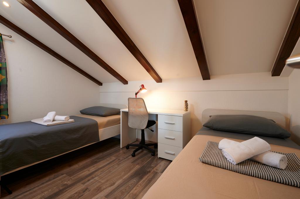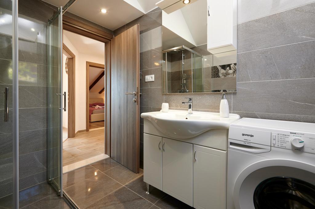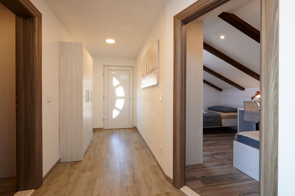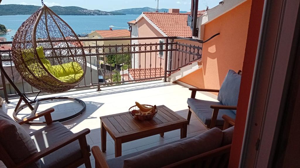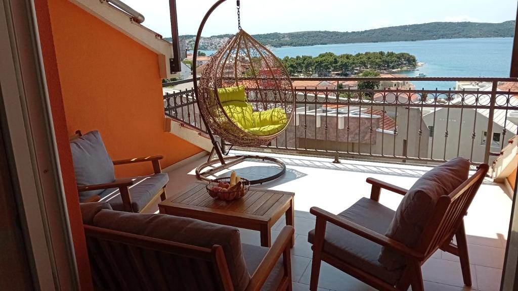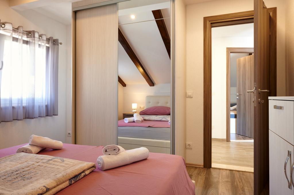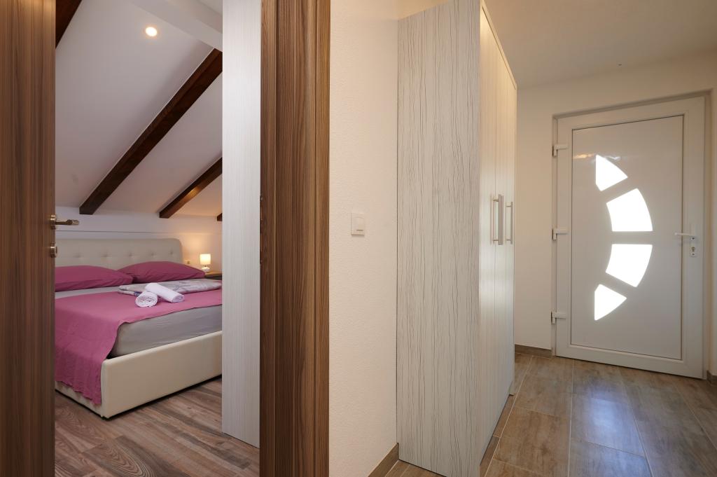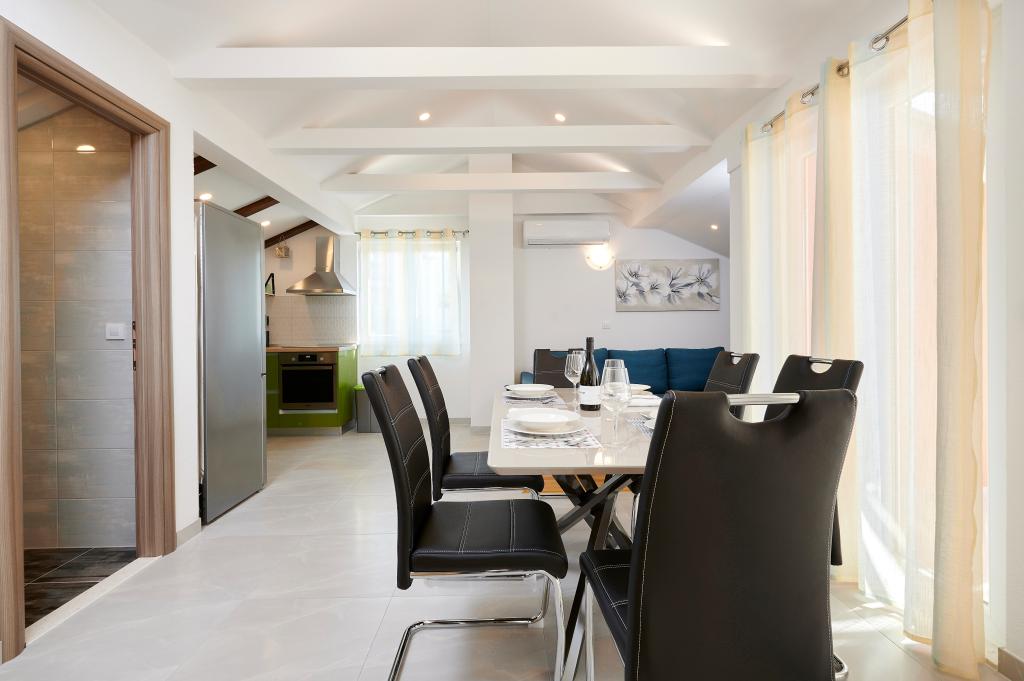 Apartments Magdalena are comfortable and well-equipped. They are located on the island of Čiovo, just 1.3 km from the center of the old town of Trogir. They have a beautiful view of the sea and the surrounding area. The apartments are located in a quiet neighborhood, just 250 m from the nearest beach. Restaurants, a supermarket, an ATM, a bus station and a boat line to the center are within 400 m of the apartment. The apartment is accessed by a road that goes up a hill. The equipment includes air conditioning, free parking, WiFi, a fully equipped kitchen, cable TV, a washing machine, a dishwasher... The apartments are 75 and 85 square meters plus outdoor terraces with comfortable armchairs and egg-shaped hanging swings. Apartment 1 is located on the first floor and has three bedrooms, while apartment 2 is on the second floor and has two bedrooms and two toilets. Everything is nicely decorated, clean and tidy. The apartments are a 5-minute walk from the beach and a 15-minute walk from the center of Trogir. The nearby beach is the departure point for the boat line that goes to the city center, the ride takes 10 minutes.