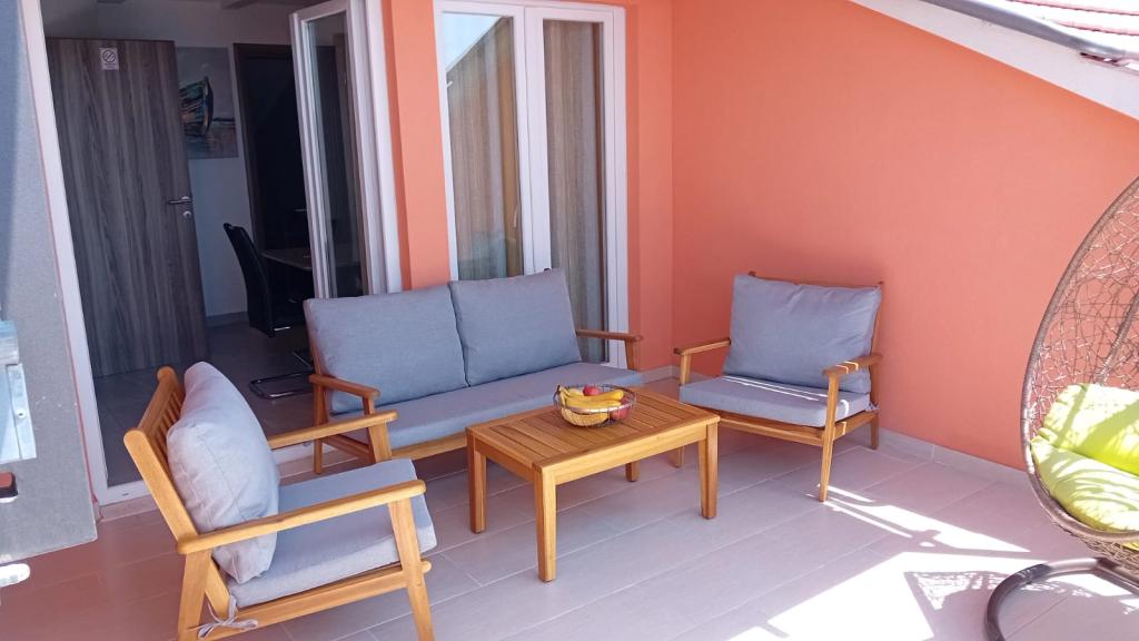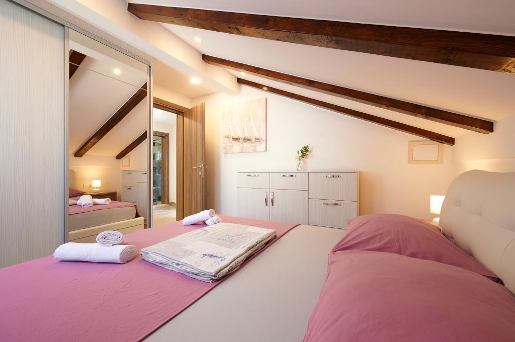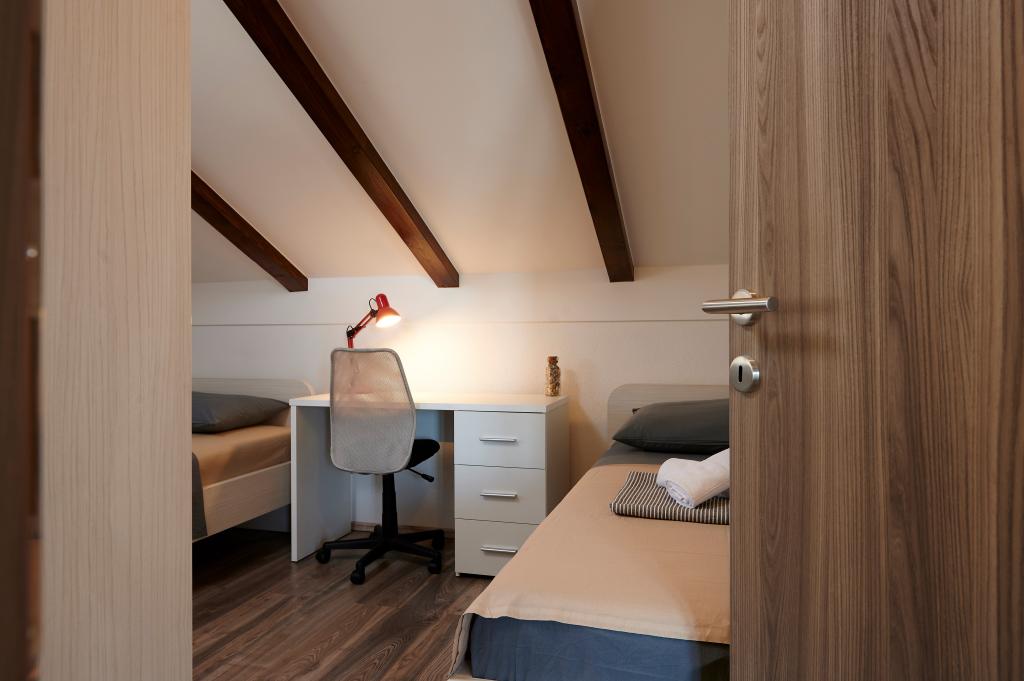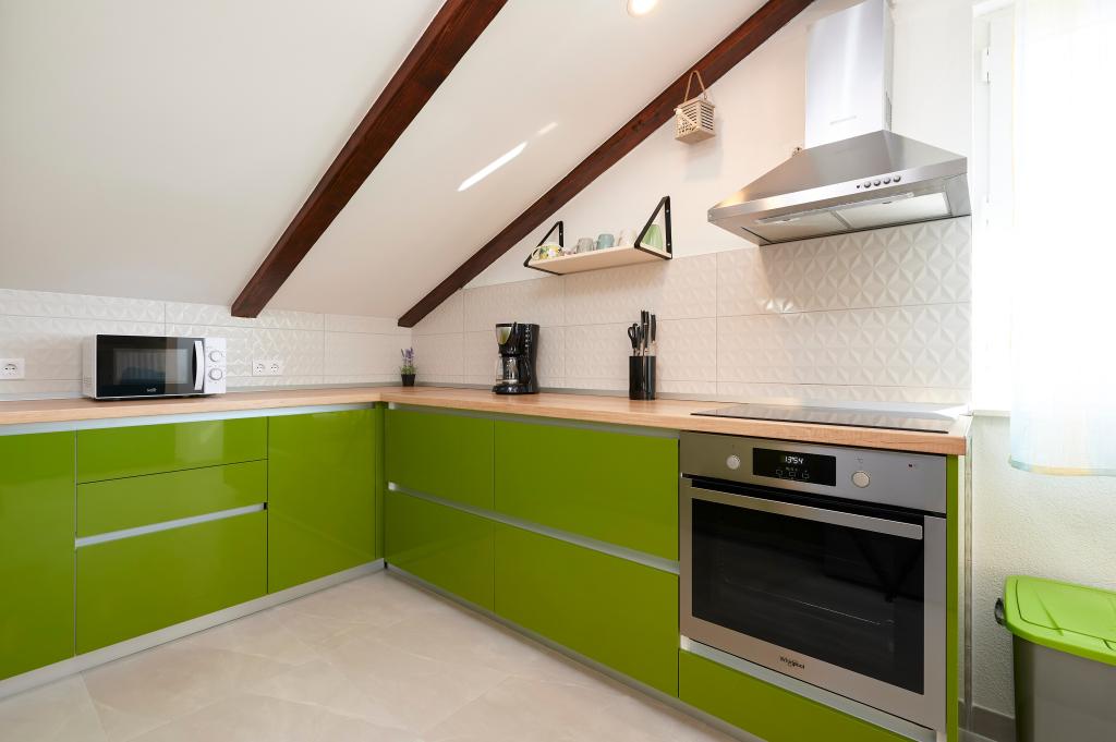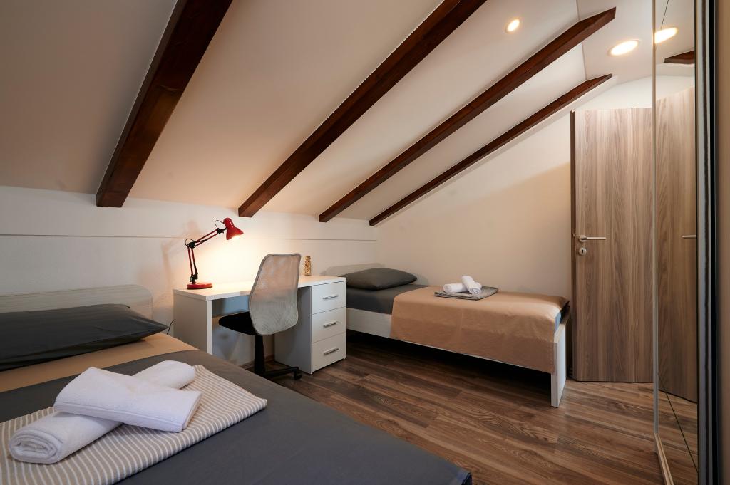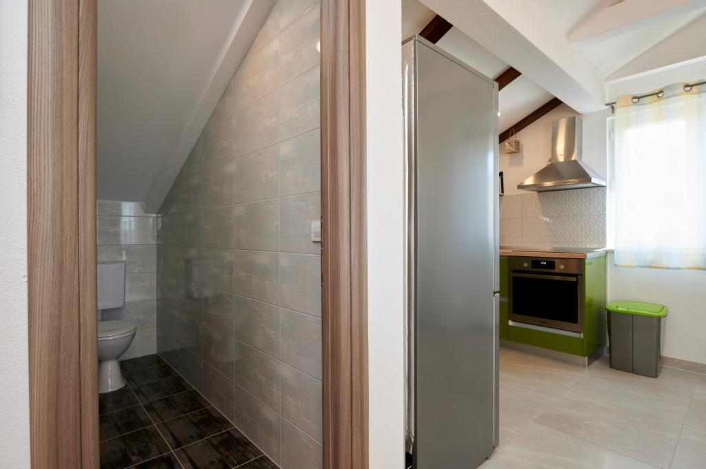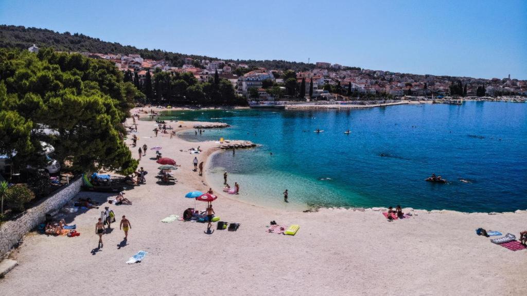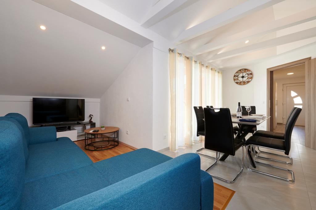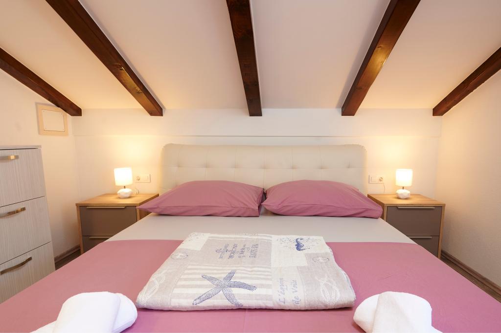 Apartments Magdalena are comfortable and well-equipped. They are located on the island of Čiovo, just 1.3 km from the center of the old town of Trogir. They have a beautiful view of the sea and the surrounding area. The apartments are located in a quiet neighborhood, just 250 m from the nearest beach. Restaurants, a supermarket, an ATM, a bus station and a boat line to the center are within 400 m of the apartment. The apartment is accessed by a road that goes up a hill. The equipment includes air conditioning, free parking, WiFi, a fully equipped kitchen, cable TV, a washing machine, a dishwasher... The apartments are 75 and 85 square meters plus outdoor terraces with comfortable armchairs and egg-shaped hanging swings. Apartment 1 is located on the first floor and has three bedrooms, while apartment 2 is on the second floor and has two bedrooms and two toilets. Everything is nicely decorated, clean and tidy. The apartments are a 5-minute walk from the beach and a 15-minute walk from the center of Trogir. The nearby beach is the departure point for the boat line that goes to the city center, the ride takes 10 minutes.