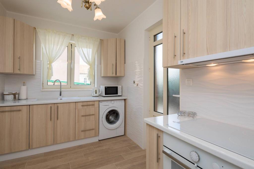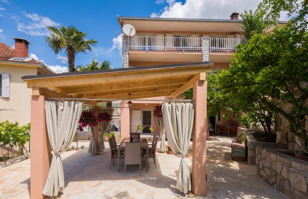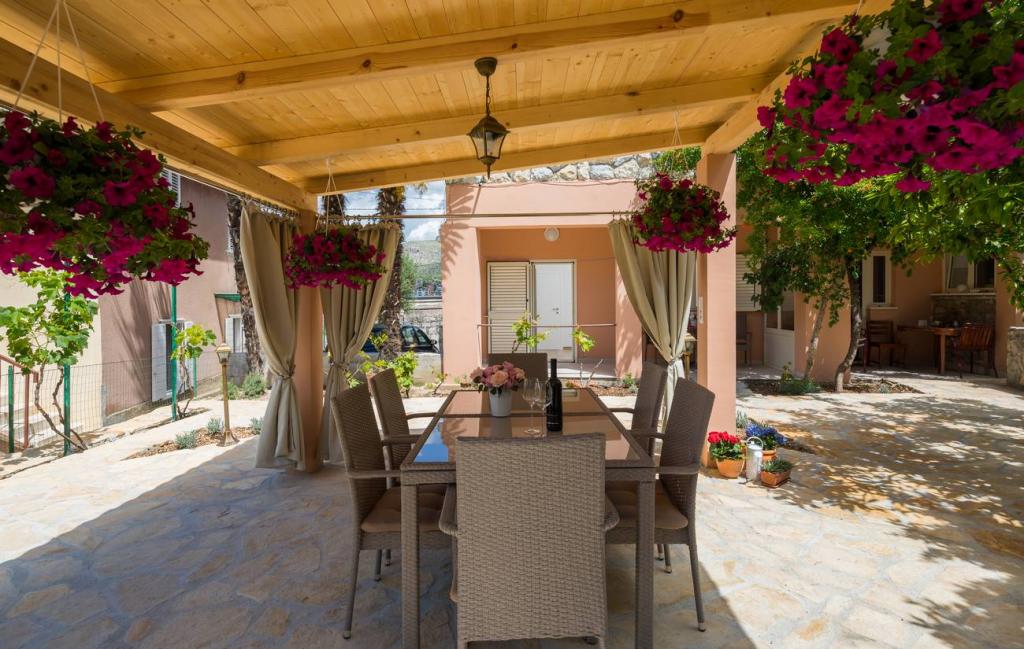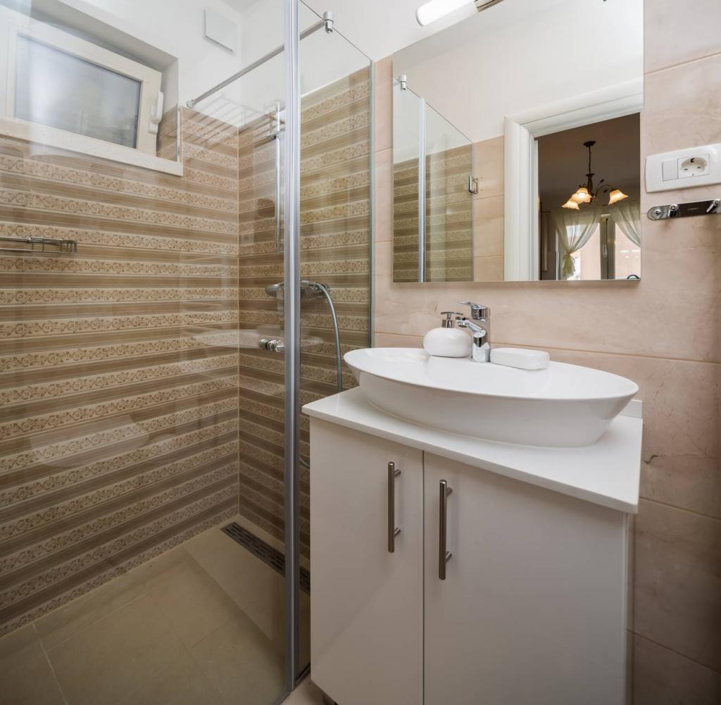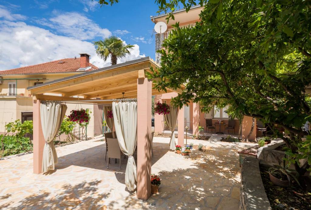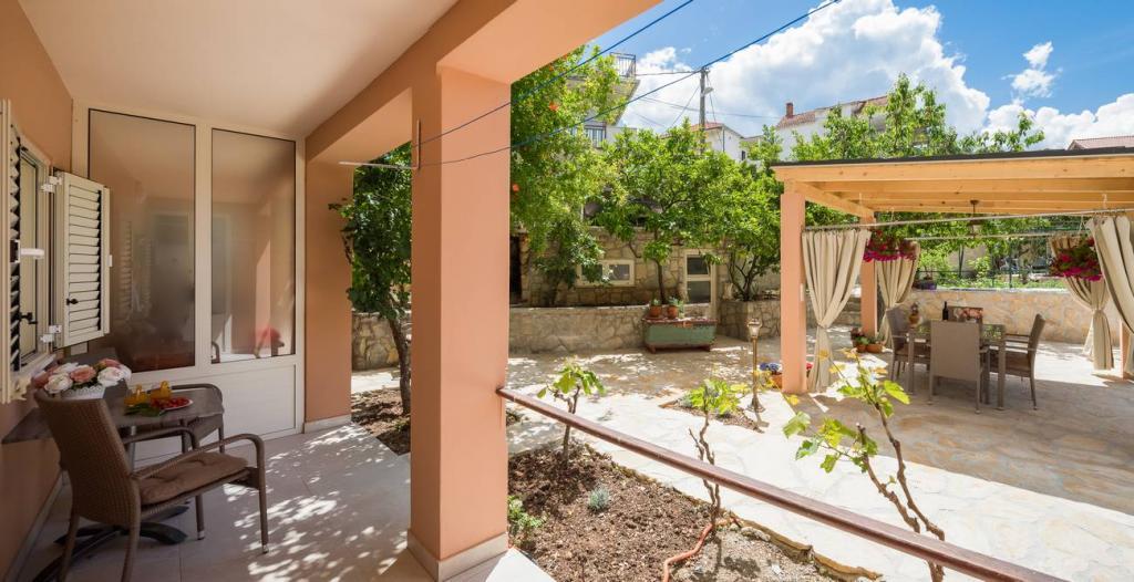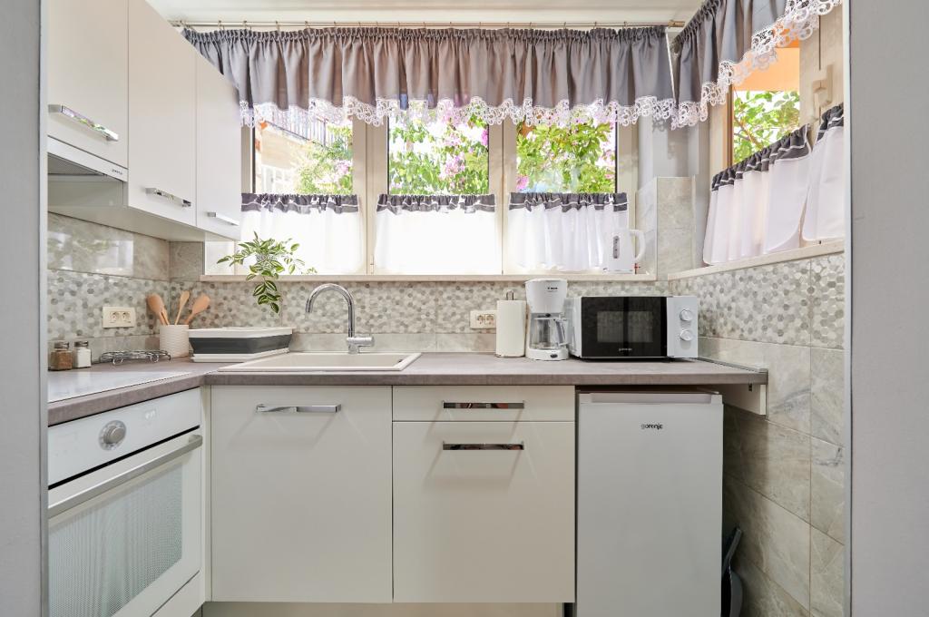 Apartments Oaza are located on the northern side of the Čiovo peninsula, which is connected by 3 bridges to the historic center of Trogir and the mainland. Our house is only a 5-minute walk from the heart of Trogir. The good location of the apartment allows for quick and easy access to the city center as well as to the beaches that stretch along the entire peninsula. In the immediate vicinity of our apartments there are shops, a bakery, a post office, a pharmacy, restaurants offering Dalmatian specialties, cafes and a bus station. Apartment 2+2 (for max. 4 people) is located on the second floor. The apartment has a fully equipped kitchen connected to the living room, a bathroom with a shower, and two double bedrooms - one with a double bed and the other with two single beds. The apartment has 2 balconies, the southern one with a view of the green area of the Čiovo peninsula and the garden, and the northern one with a view of the sea, Trogir and Mount Kozjak. Studio 3 (for max. 3 people) is located on the ground floor of our family house. The apartment has a fully equipped kitchen, bathroom
