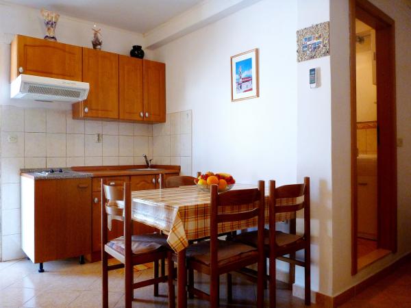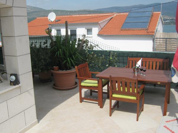 The studio apartment is nicely furnished, we were greeted by neat and clean. The disadvantage is who comes with a small child as soon as you leave the apartment is the road, and the terrace is upstairs. We didn't even use the terrace because you don't have your privacy. The place is very nice, the center of Trogir is close, you can walk (about 2 km away from the apartment). For the first few days we were bothered by the noise from the plane, until we got used to it because the Split airport is nearby. The beach is really close, you can choose from concrete to pebble. Regarding the accommodation, the hosts did not turn out well, they charged us for the accommodation of a two-year-old child. Be careful when negotiating and with whom you negotiate the price.