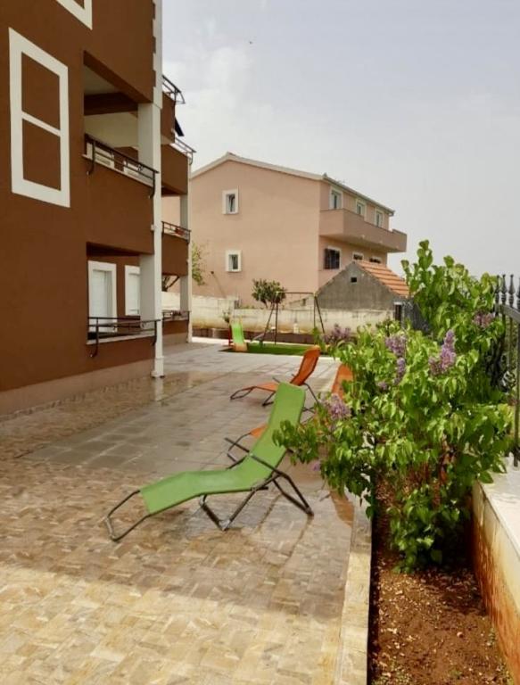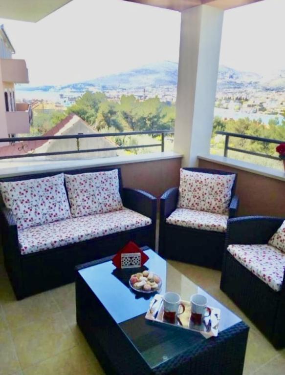 Modernly equipped apartments on a quiet hill with a beautiful view of the sea and the city of Trogir. The house is located only 10 minutes walk from the city center and all the best restaurants. The pebble beach is only 150 m away via a path through the forest.