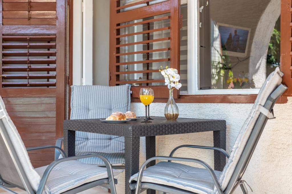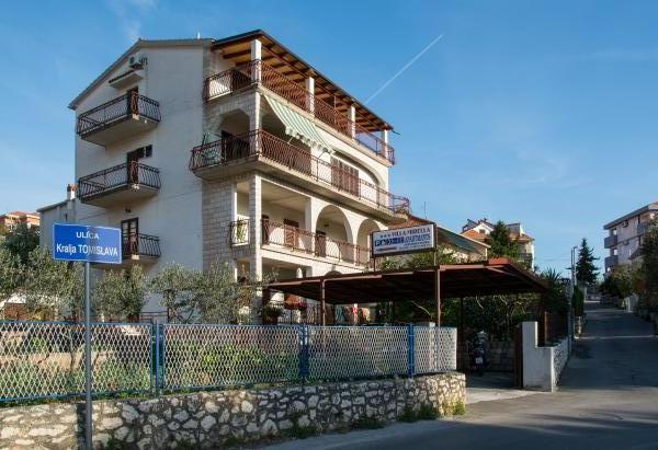 Modrified, air conditioned and all with sea view Apartments Villa Mirella are located right by the sea, right next to the beach! The facility is located 15 min walk to the center and 5 min from the house there is a camp with bachelor plazas and contents, cafe bar, restaurant etc ... 10 min walk is 1.5 km long sandy beach with all contents, every 20 m is cafe bar, restaurants, palaces, ice cream and other .... Near the house there is everything, super market, restaurant, pharmacy, cafe bar, post office,.