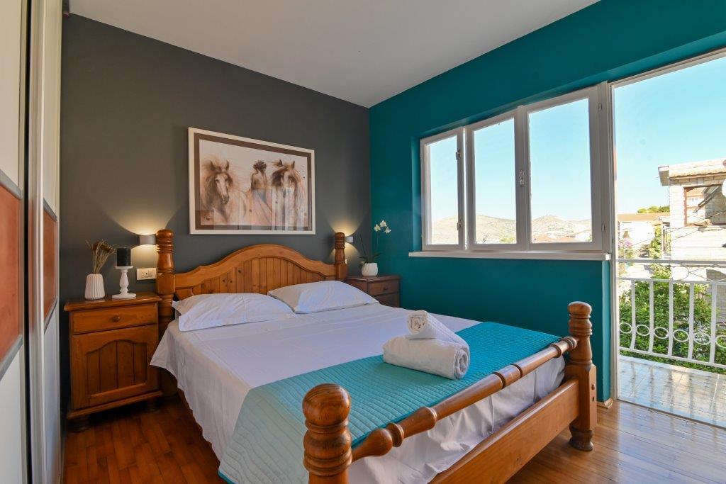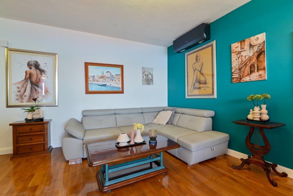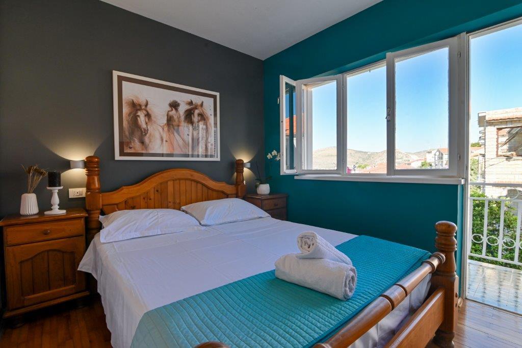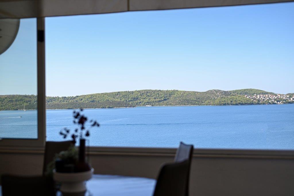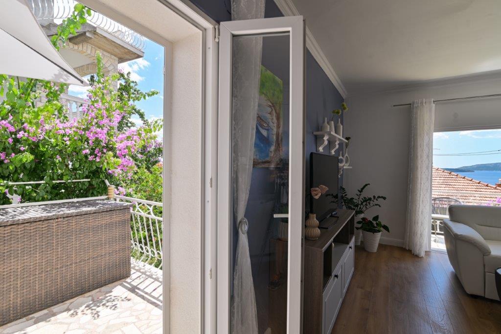 This is a house with tekskluzivna apartments. It is located in an attractive area of the city. The south side of the island Ciovo (connected by bridge to the shore and the beautiful town of Trogir (UNESCO)). The house is located in Mirnyi neighborhood, away from the sea (beach with pine trees), some 200m from the attractive town beach in Okrug Gornji about 700m. Distance from restaurants and shops was completed 150m, hospital, post office and all facilities are located in the city center which is located about 15 minutes. walking and some 5 km from the airport Split (offered transportation from the airport by prior agreement with the owners). The house has two apartments. Each is fully equipped and have a wonderful view of the sea. One is categorized with 4 stars. It is located on the ground floor has a terrace and two balconies. 2 bedrooms, living room with sofa bed, dining area and kitchen and 2 bathrooms. Equipped with a fully (air conditioning, Wi-Fi, satellite TV, washing machine, all kitchen appliances, private parking ... a. The second is categorized with 3 stars. He is the first