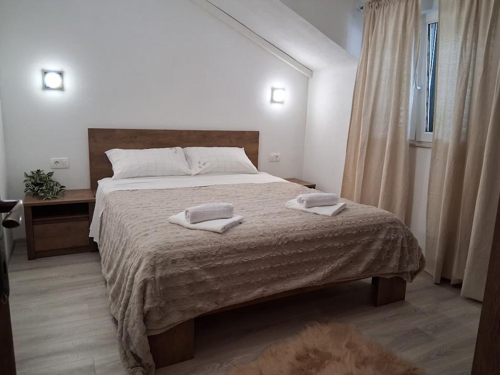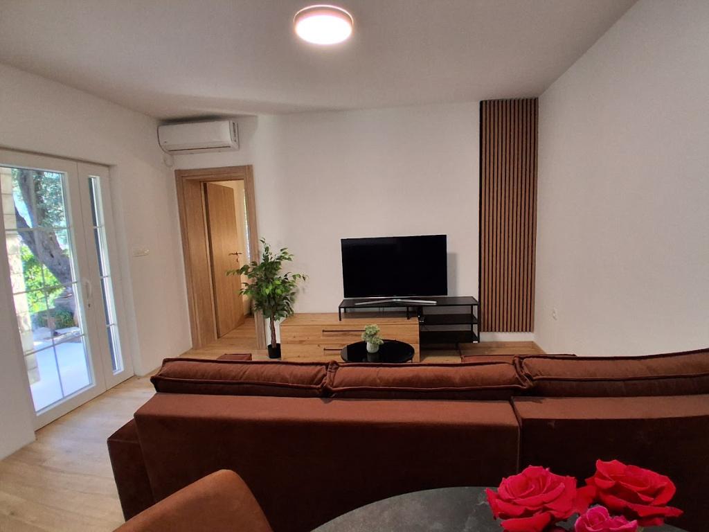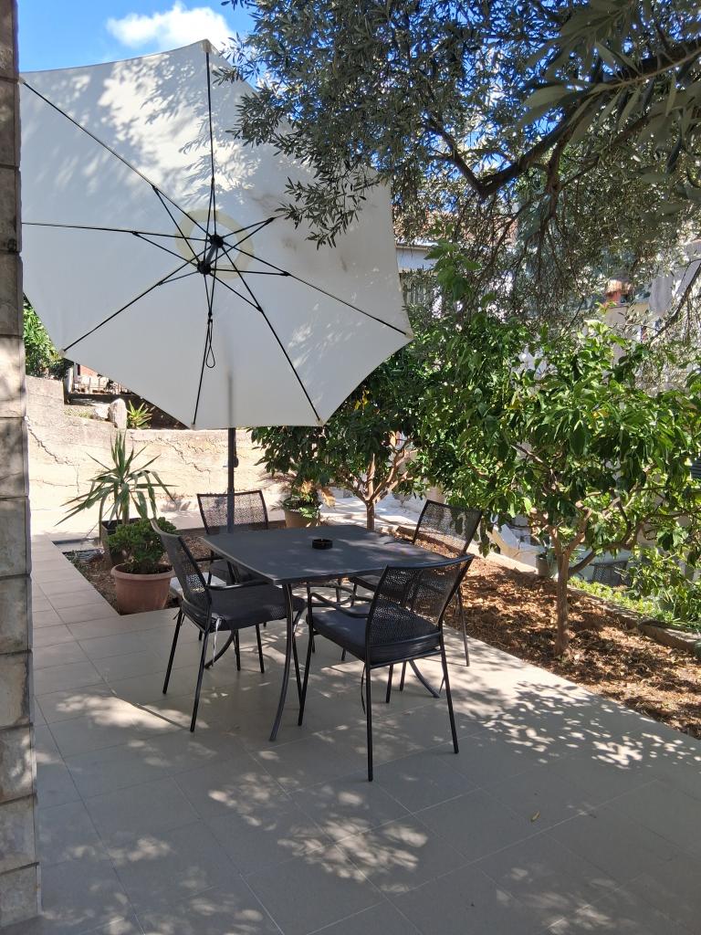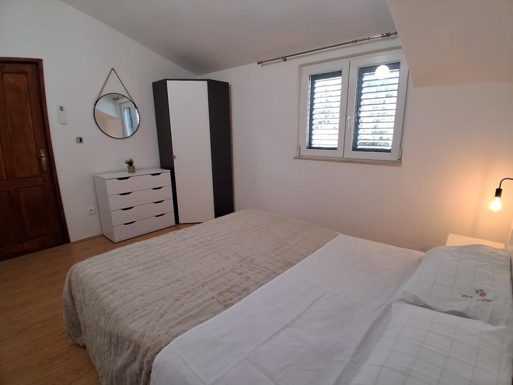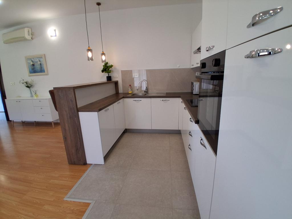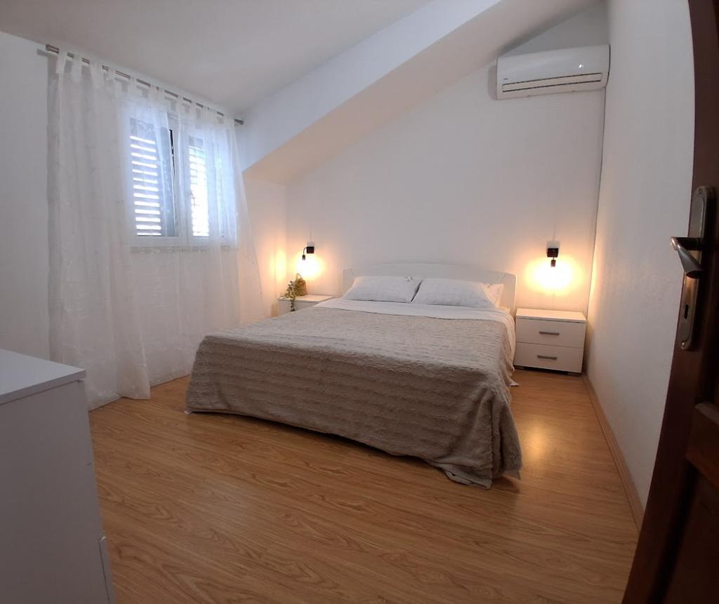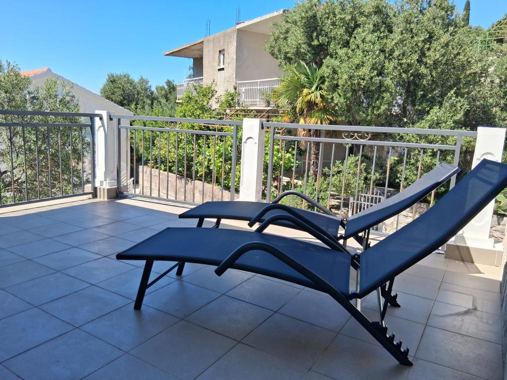 Fully and modernly equipped two-bedroom large apartment with sea view and large covered terrace - entire floor and one-bedroom apartment on the ground floor with a wonderful terrace TWO-BEDROOM APARTMENT consists of two bedrooms with double beds, one bathroom, spacious kitchen and living room with sofa that converts into a bed if necessary ONE-BEDROOM APARTMENT consists of one room with double bed plus extra bed for a third person. There is also the possibility of a sofa bed in the living room. 5-7 minutes away from the beautiful beach and beach bar; Distance to the center approximately 10 minutes walk. The price includes parking, WI FI, air conditioning in each room, towels, washing machine and dishwasher, rest room, electric kettle, coffee maker (two-bedroom apartment), hairdryer, clothes iron and ironing board (two-bedroom apartment)
