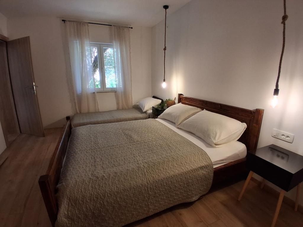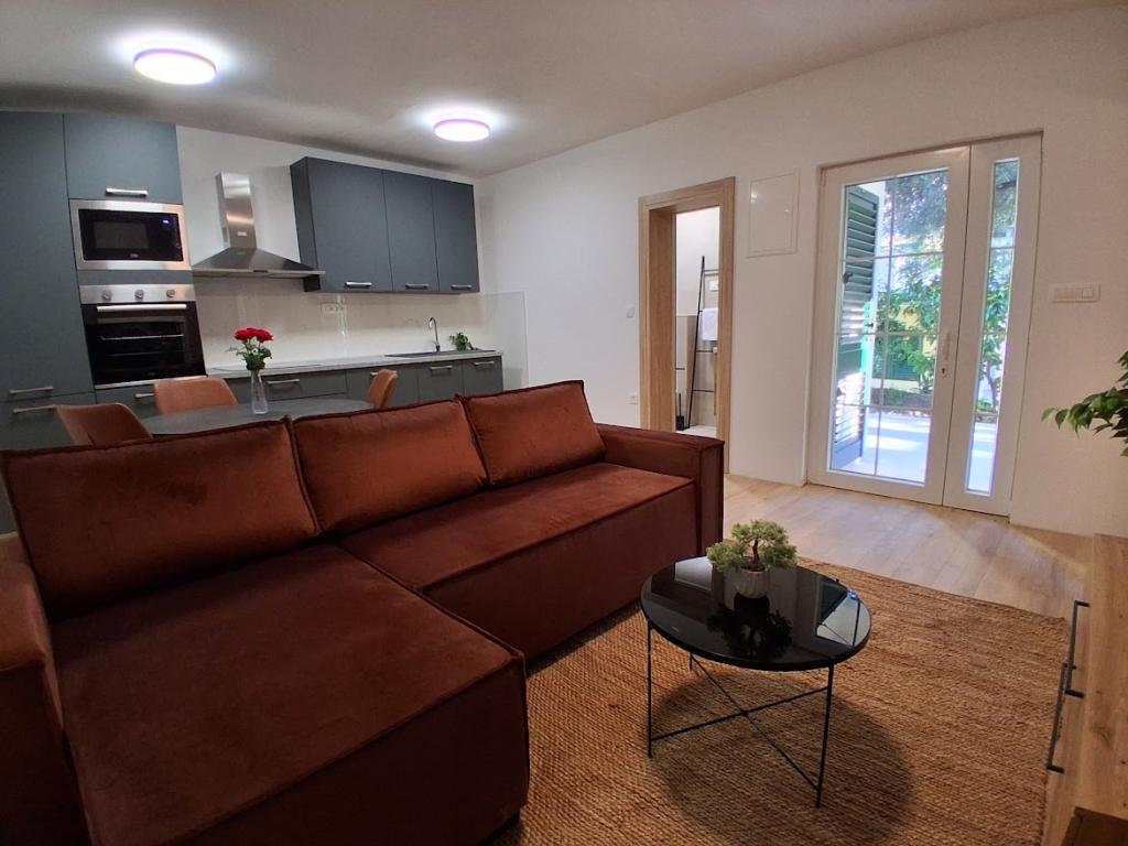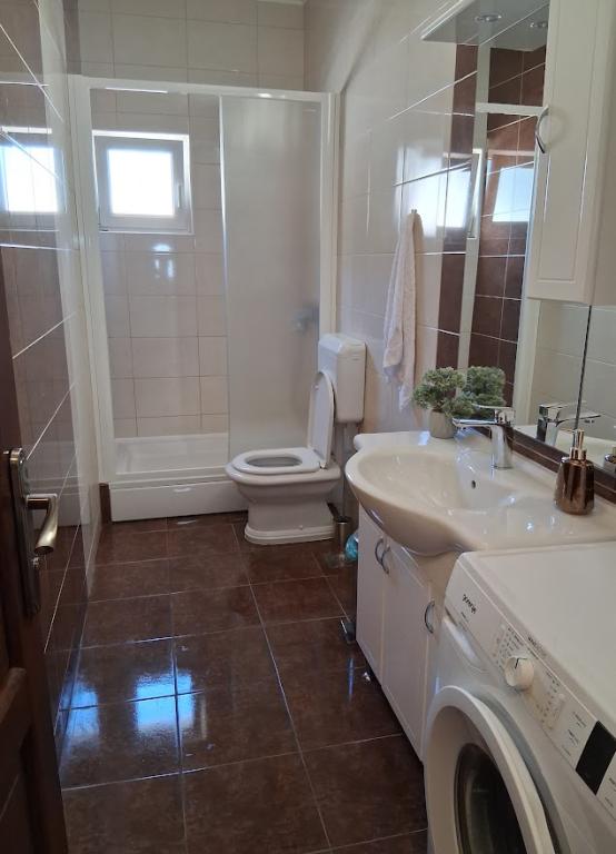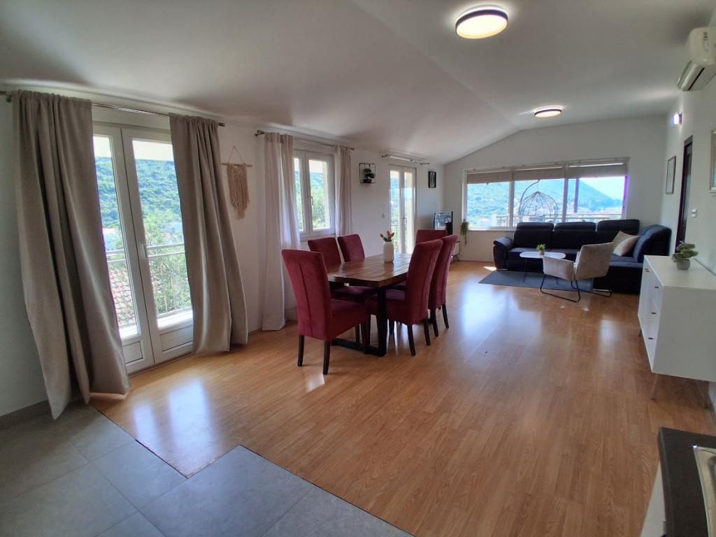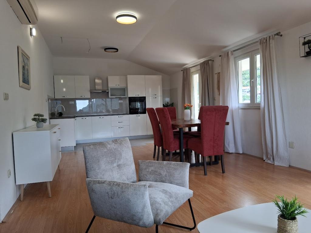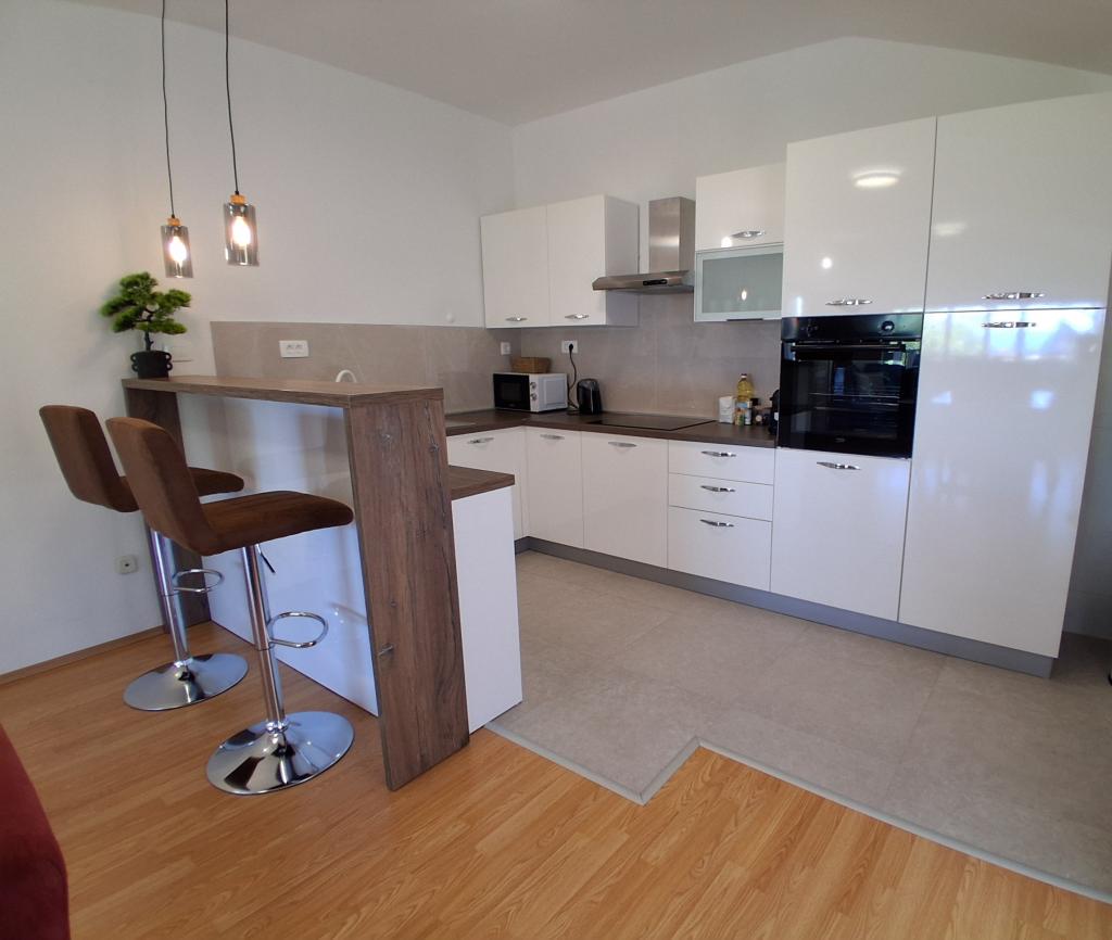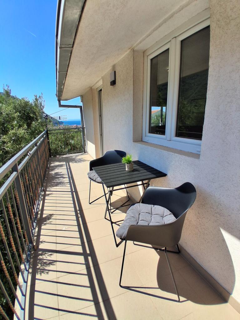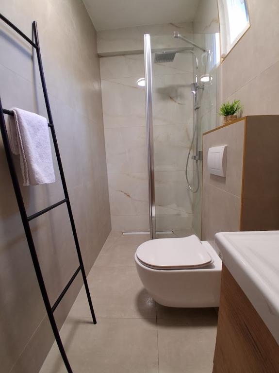 Fully and modernly equipped two-bedroom large apartment with sea view and large covered terrace - entire floor and one-bedroom apartment on the ground floor with a wonderful terrace TWO-BEDROOM APARTMENT consists of two bedrooms with double beds, one bathroom, spacious kitchen and living room with sofa that converts into a bed if necessary ONE-BEDROOM APARTMENT consists of one room with double bed plus extra bed for a third person. There is also the possibility of a sofa bed in the living room. 5-7 minutes away from the beautiful beach and beach bar; Distance to the center approximately 10 minutes walk. The price includes parking, WI FI, air conditioning in each room, towels, washing machine and dishwasher, rest room, electric kettle, coffee maker (two-bedroom apartment), hairdryer, clothes iron and ironing board (two-bedroom apartment)