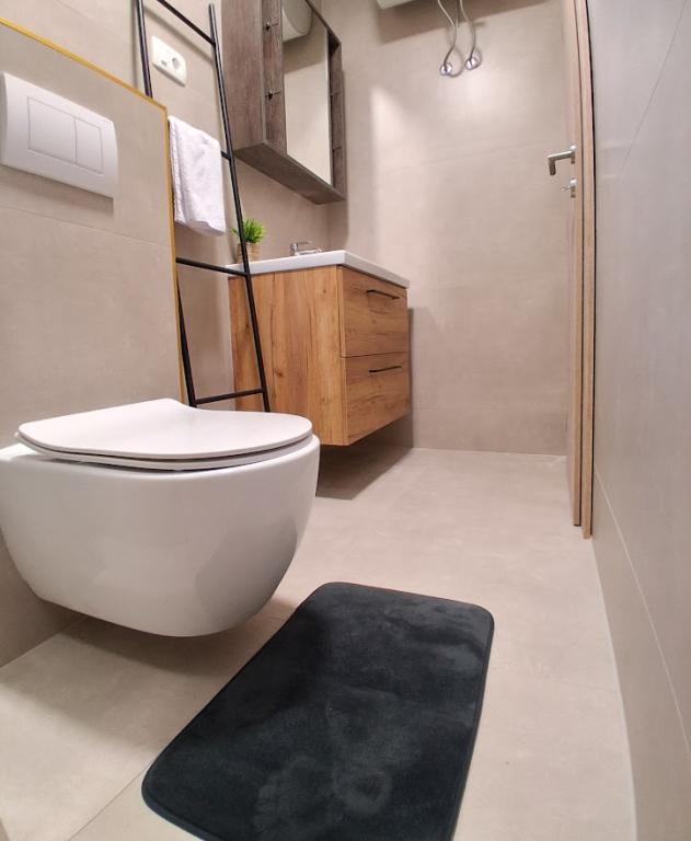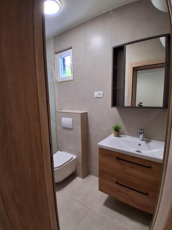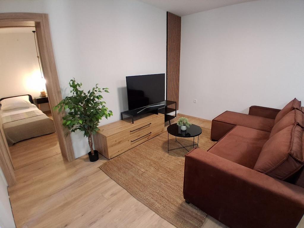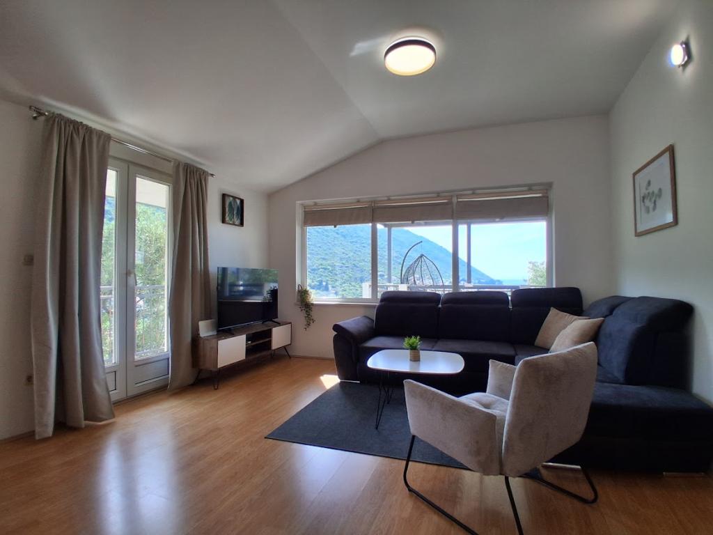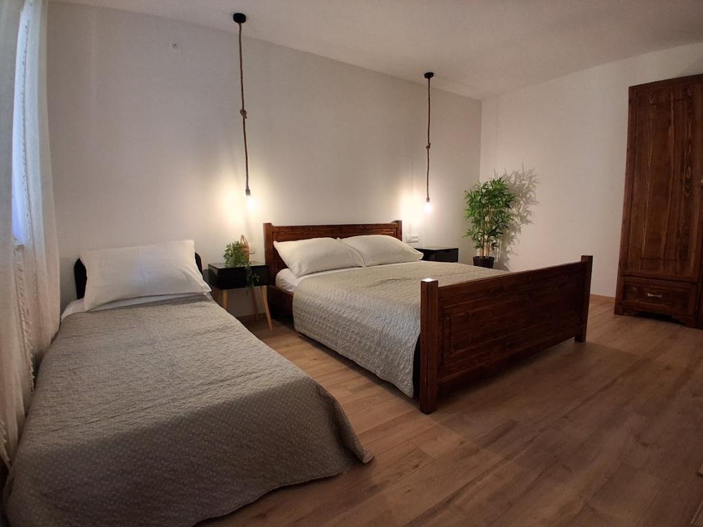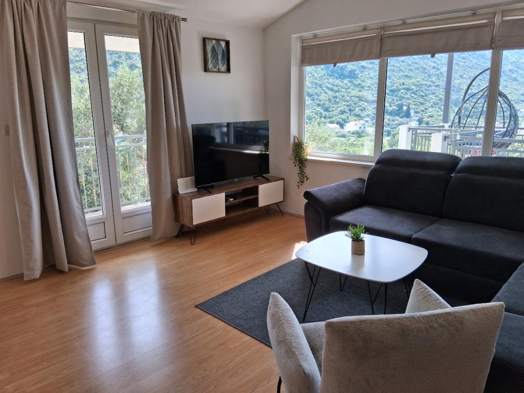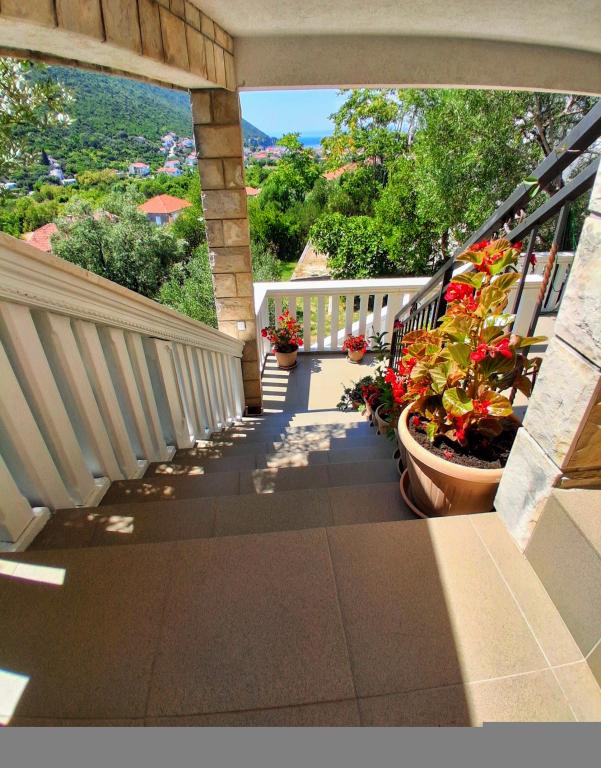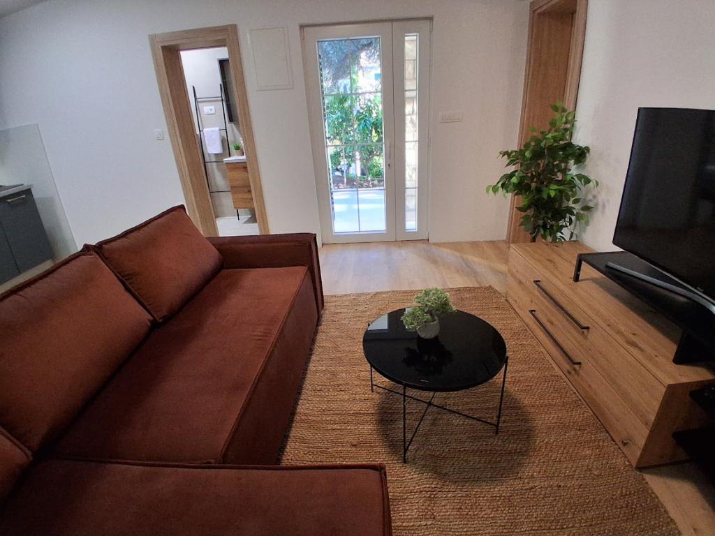 Fully and modernly equipped two-bedroom large apartment with sea view and large covered terrace - entire floor and one-bedroom apartment on the ground floor with a wonderful terrace TWO-BEDROOM APARTMENT consists of two bedrooms with double beds, one bathroom, spacious kitchen and living room with sofa that converts into a bed if necessary ONE-BEDROOM APARTMENT consists of one room with double bed plus extra bed for a third person. There is also the possibility of a sofa bed in the living room. 5-7 minutes away from the beautiful beach and beach bar; Distance to the center approximately 10 minutes walk. The price includes parking, WI FI, air conditioning in each room, towels, washing machine and dishwasher, rest room, electric kettle, coffee maker (two-bedroom apartment), hairdryer, clothes iron and ironing board (two-bedroom apartment)