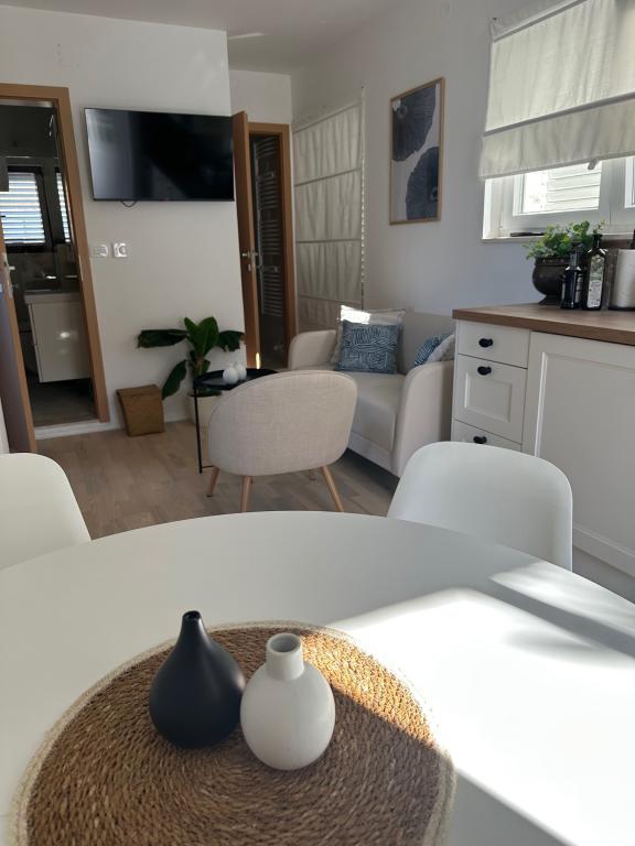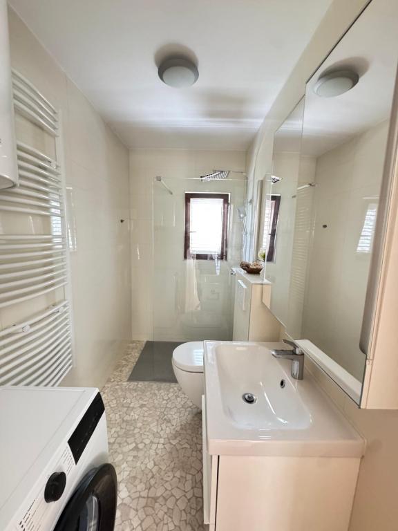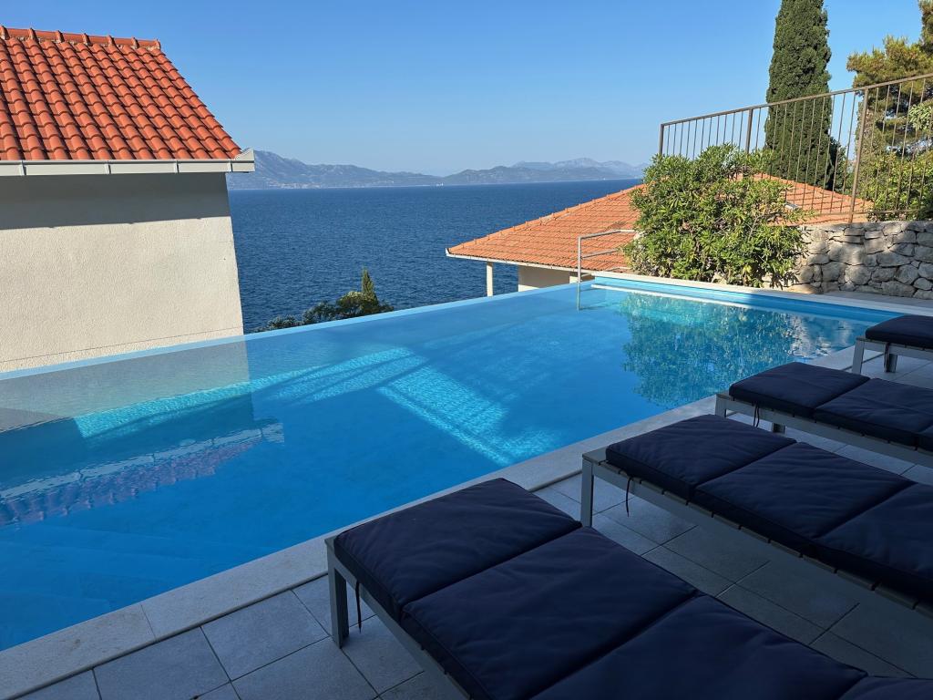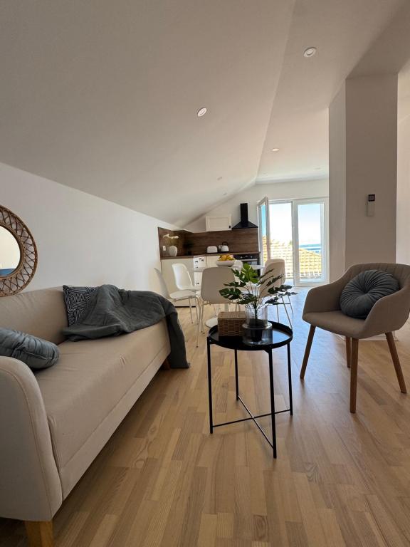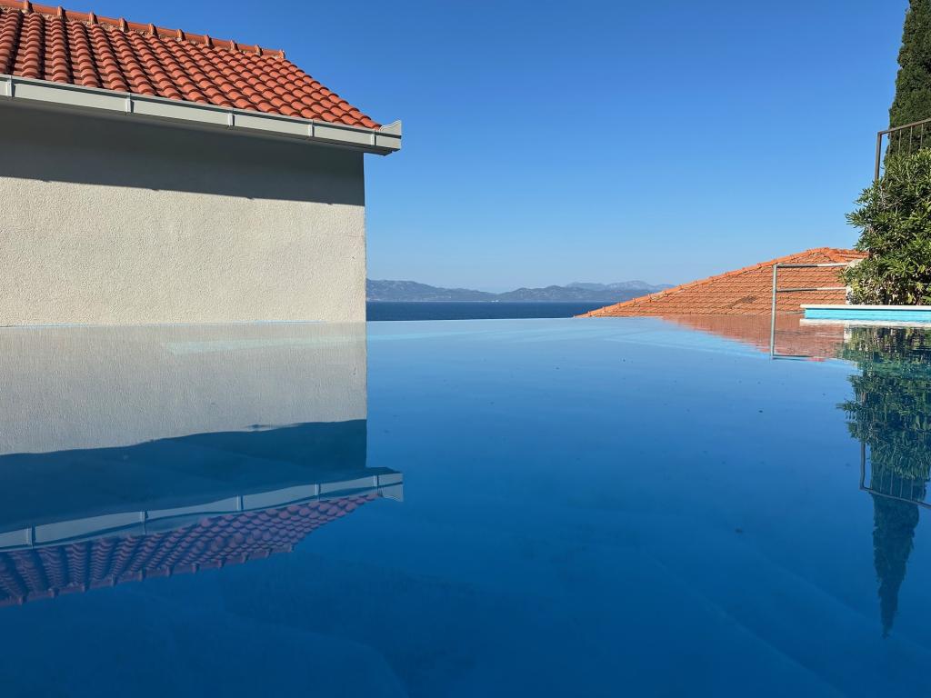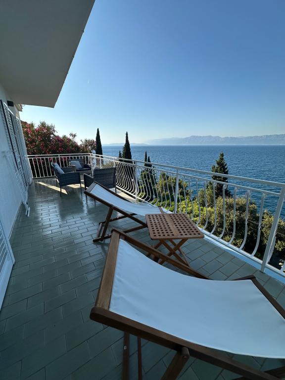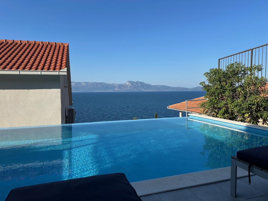 Completely and modernly furnished apartments in a quiet area, located second row to the sea; The facility is located a 15-minute walk to the center and a 10-minute walk to the pebble beach or just 20-30 meters from a rocky or concrete beach. Apartment 2 is rented with a private infinity pool with sun loungers and a shower and a beautiful sea view. Each apartment is equipped with two modern bathrooms with underfloor heating.