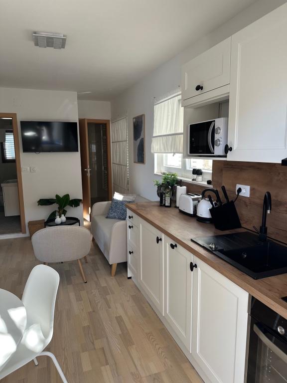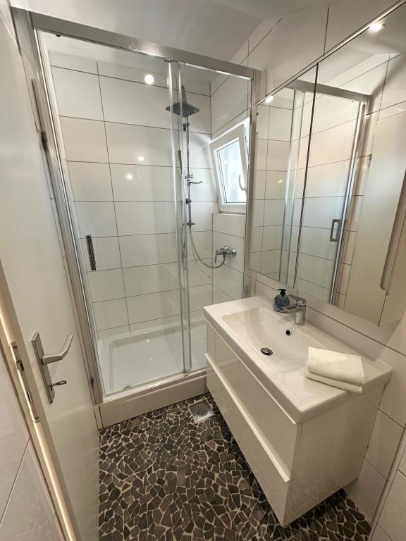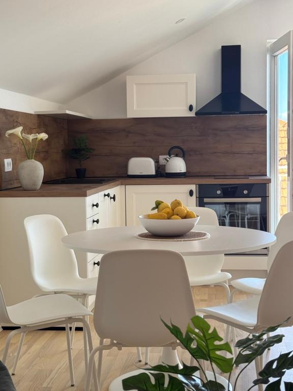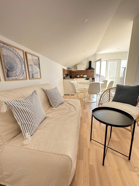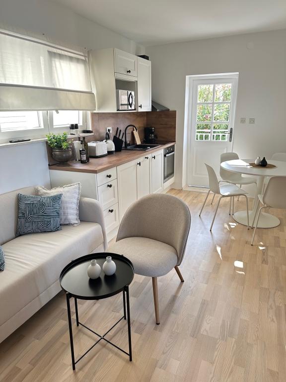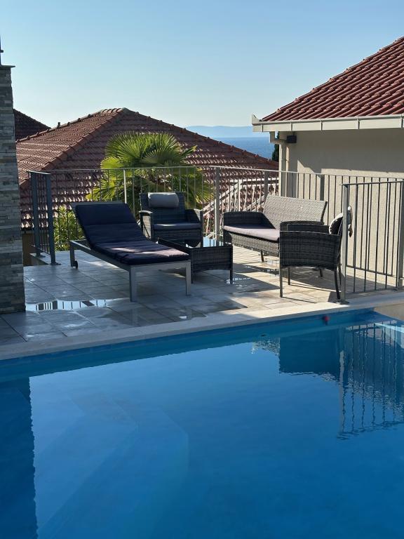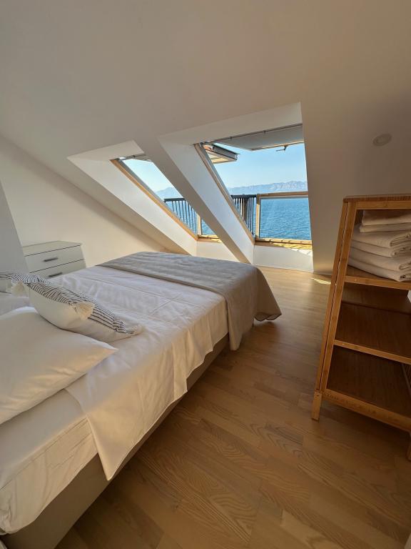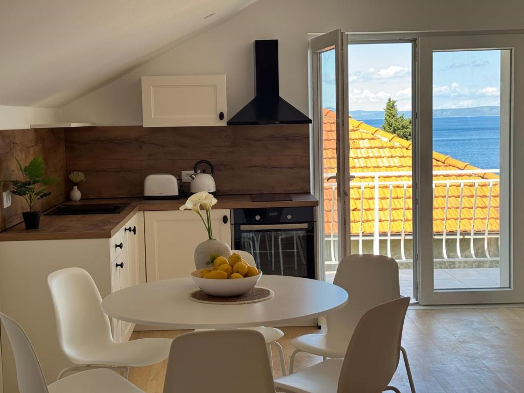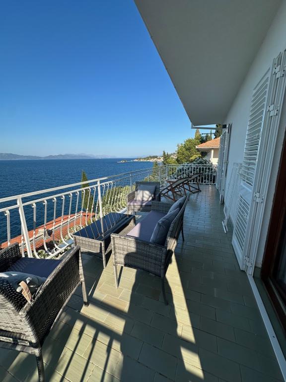 Completely and modernly furnished apartments in a quiet area, located second row to the sea; The facility is located a 15-minute walk to the center and a 10-minute walk to the pebble beach or just 20-30 meters from a rocky or concrete beach. Apartment 2 is rented with a private infinity pool with sun loungers and a shower and a beautiful sea view. Each apartment is equipped with two modern bathrooms with underfloor heating.