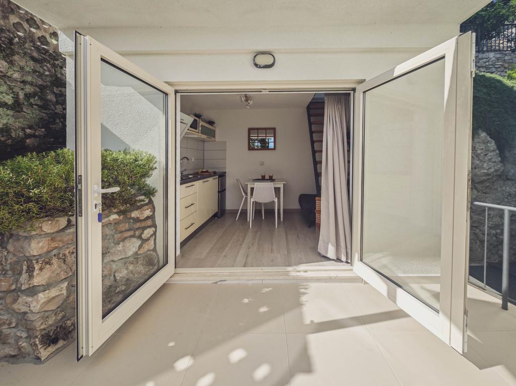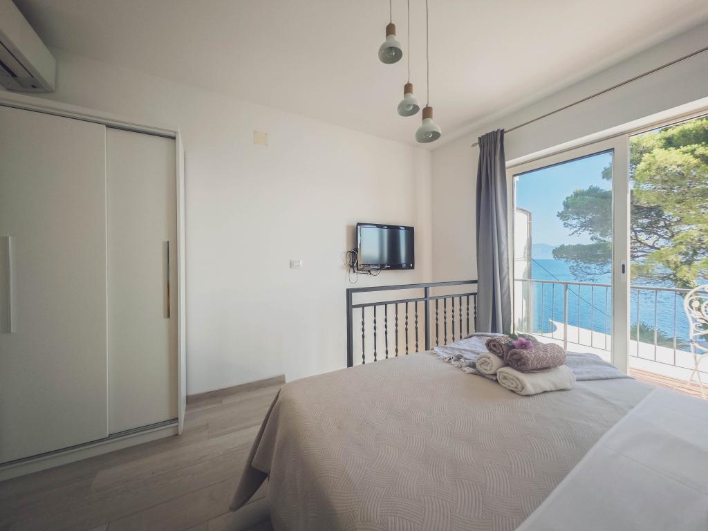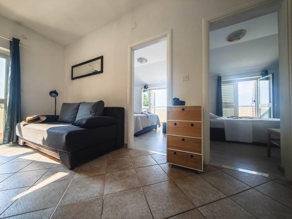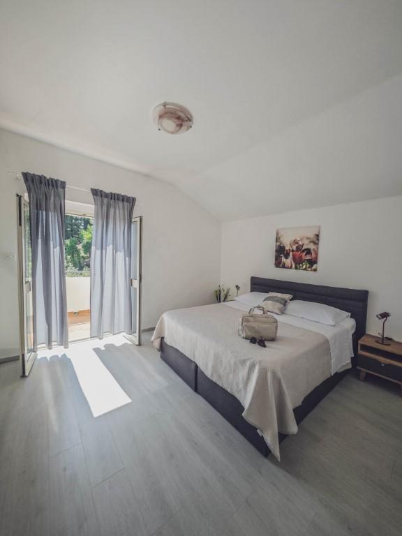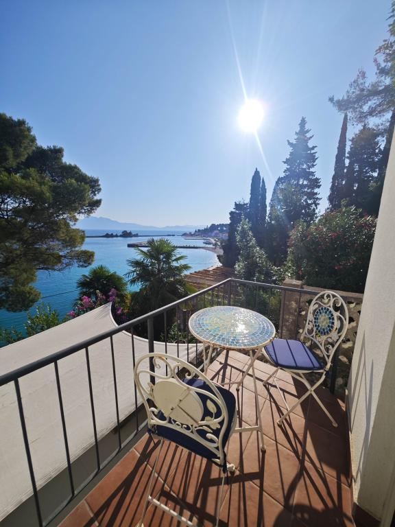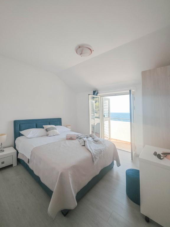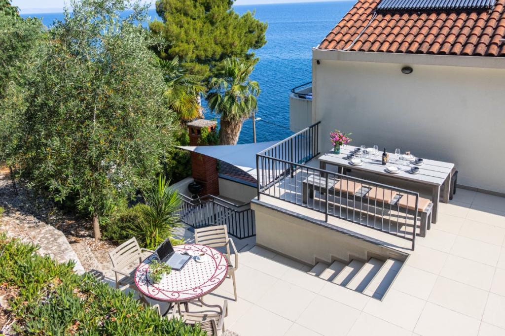 Modernly equipped holiday apartments, in a family villa in Trpanj, a beautiful fishing village on the northern side of Peljesac peninsula. Pine forest, Mediterranean vegetation, olive trees and clear sea are characteristic of this picturesque area. Outside the noise and everyday crowds, the villa is located directly by the sea and the pebble beach, with a beautiful view of the place, about 150 meters from the center of Trpanj. Private parking in front of the villa is provided for all guests. The accommodation consists of four apartments, two of which have two double rooms and two with one double room. All apartments are air-conditioned, have fully equipped kitchen with dining area, living room with extra bed and TV, bathroom, and front and side terraces offering a beautiful sea view. Baby cot available on request. If you want to try out the preparation of Dalmatian grill specialties, grill is allowed. Pets are welcome.
