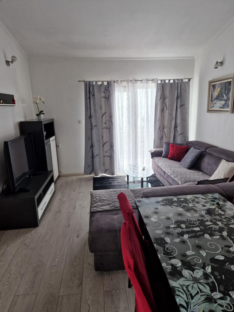 I highly recommend Mrs. Biljana's apartment! It is nicer than in the photos, details regarding location, layout and amenities consistent with the description. Apartment clean, well-kept! We didn't miss anything. At our request, we easily received additional equipment in the form of a sandwich maker and a hair dryer. Clean bedding, nice furniture. A big advantage is the large terrace. Towels changed every 3 days. Parking for a large bus was provided by Mr. and Mrs. Saric. We had no problem with anything, the owners did not interfere in any way during our stay. They were very nice and hospitable. Every request or question from our side was implemented/explained. The wonderful thing is that the apartment is literally in front of the sea. Nothing but relaxation, I recommend it!