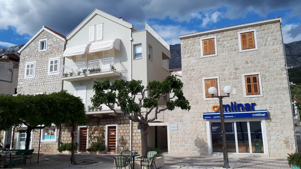 The facility, Apartments Čobrnić, Kraj 75, Tučepi is located in the center of the village, in the old town, protected area of Tucepi. The Čobrnić family has been involved in tourism since the 1950s, with a tradition of over 70 years. The building is an old family building reconstructed in 2015. It consists of three apartments, each approximately 55 m2, on each floor there is one apartment. All apartments have terraces-balconies overlooking the sea. The equipment of the apartment is a combination of old and new, simple and sufficient, romantic and special! The facility is located in the very center of the village, by the sea, marina, restaurants ... in one of the few, remaining, old ambiences in Tucepi.