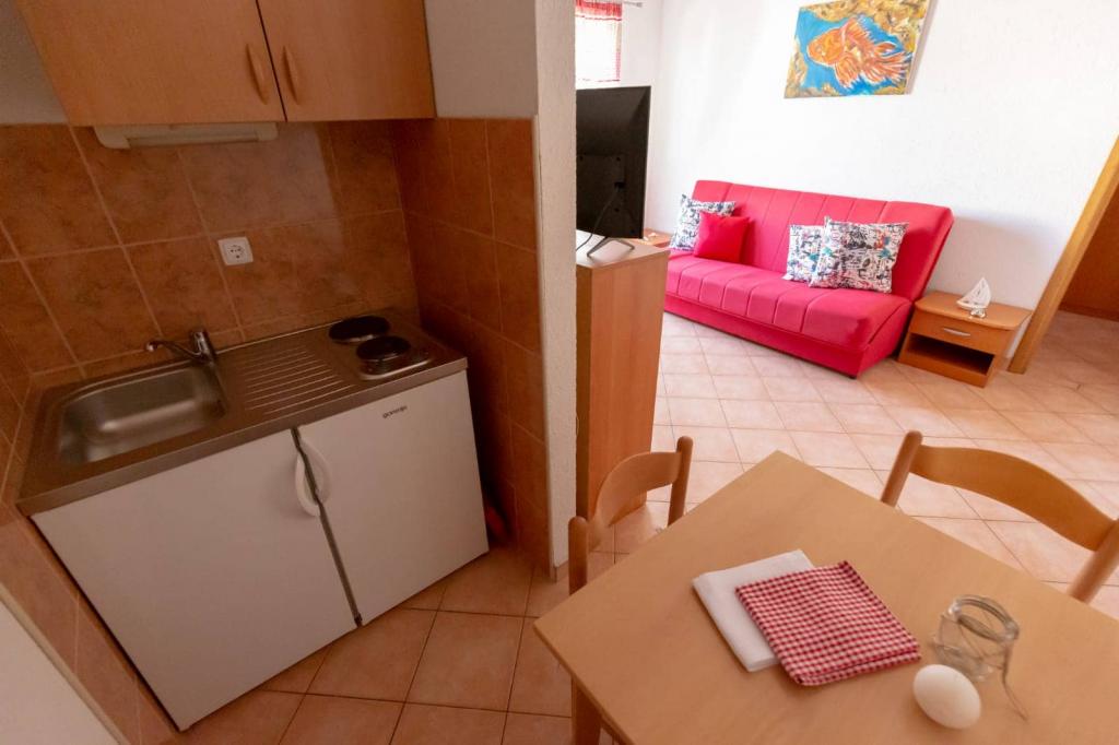 The apartments are located 30 meters from the sea, near the apartment there are restaurants, bars, supermarket and other facilities. With a surcharge of 6 euros per person per night we offer breakfast in the building next to the beach. Ideal for a car-free holiday. Feel the charms of the pearls of Dalmatia, relax on the beaches that stretch for 3 km with the reflection of the crystal clear sea