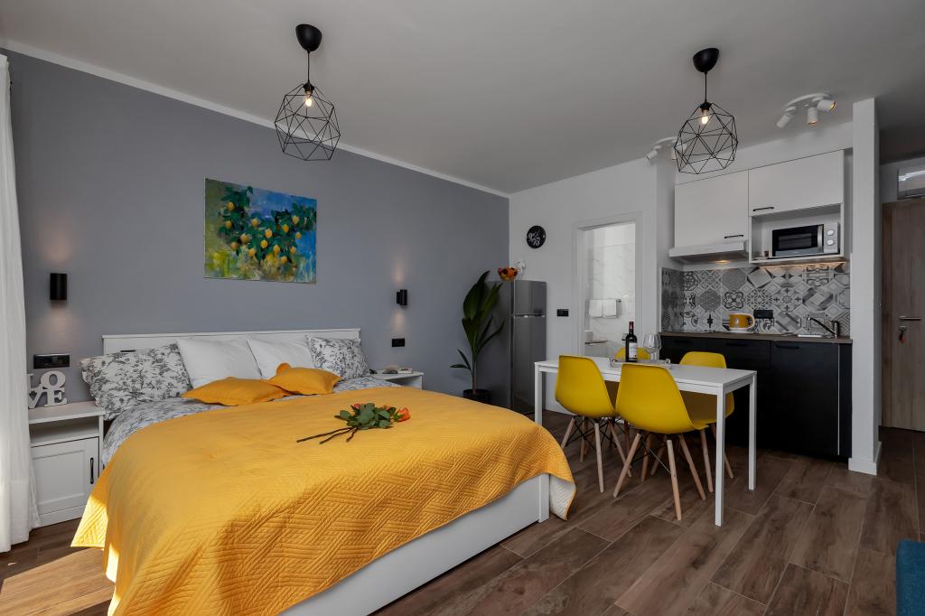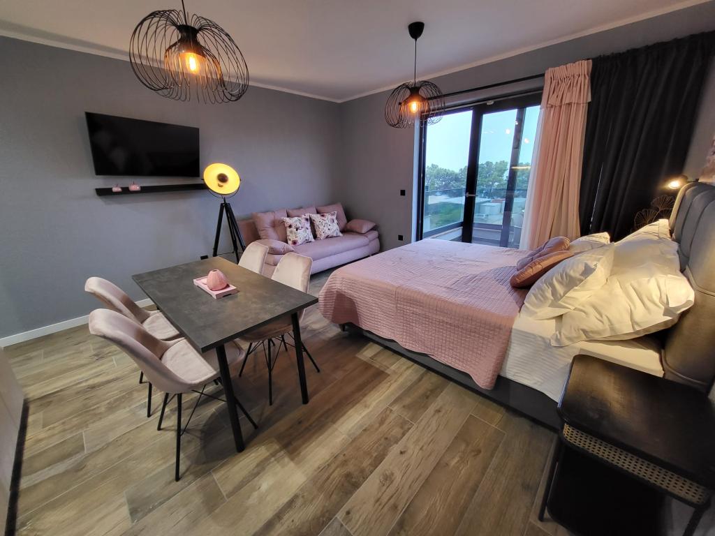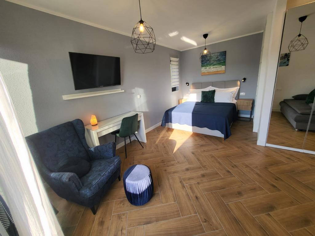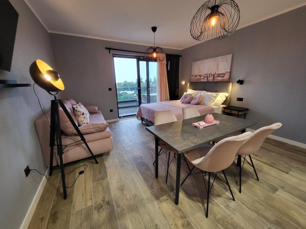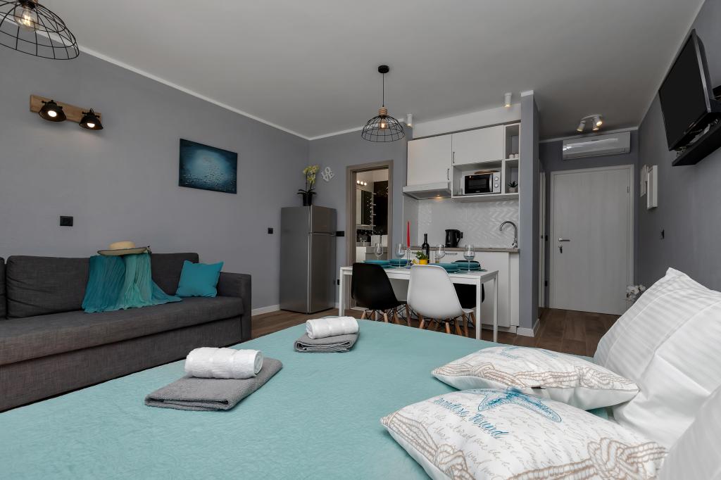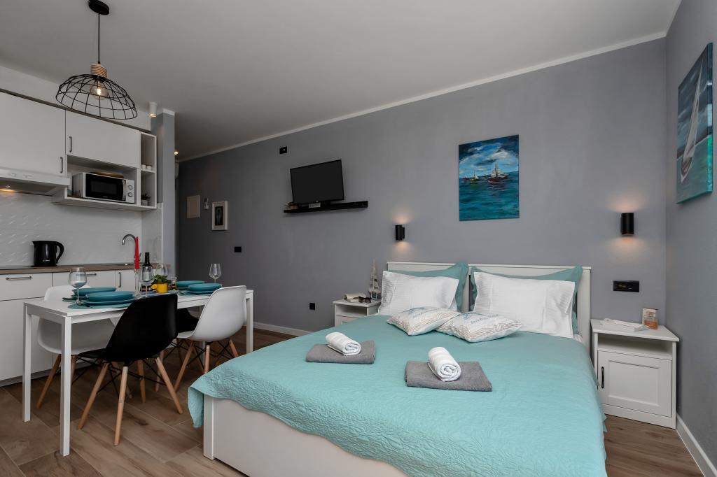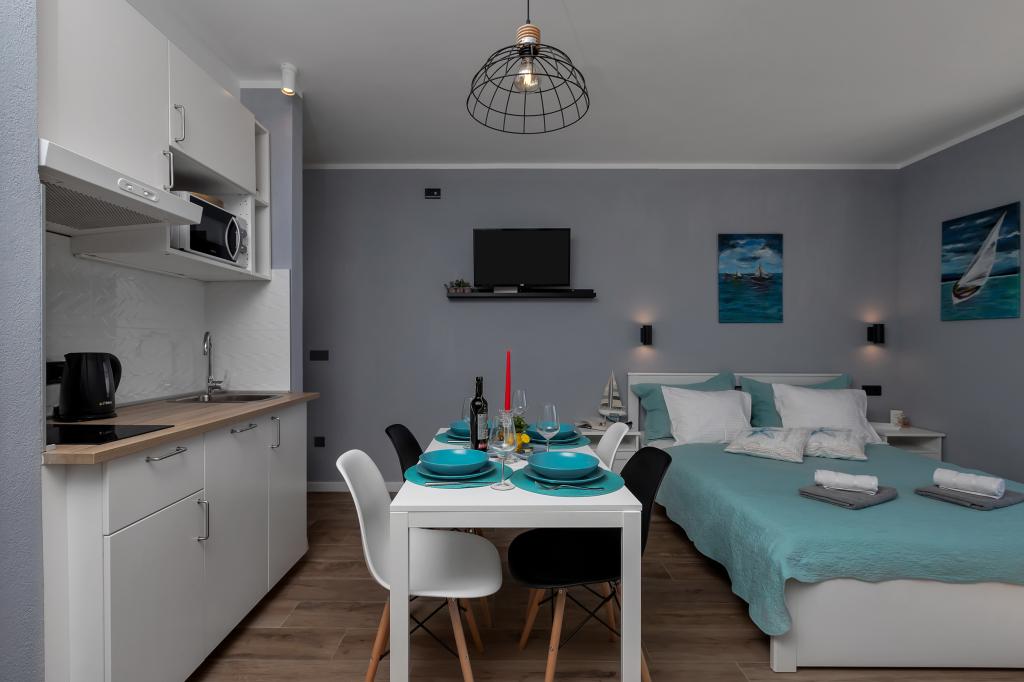 Modernly equipped apartments located first row to the sea. The facility is located a few minutes' walk from the beach. There are currently no other houses around the object at that location. Parking is free, and the garage is subject to availability at an additional cost. A warm welcome and a pleasant stay to all guests.