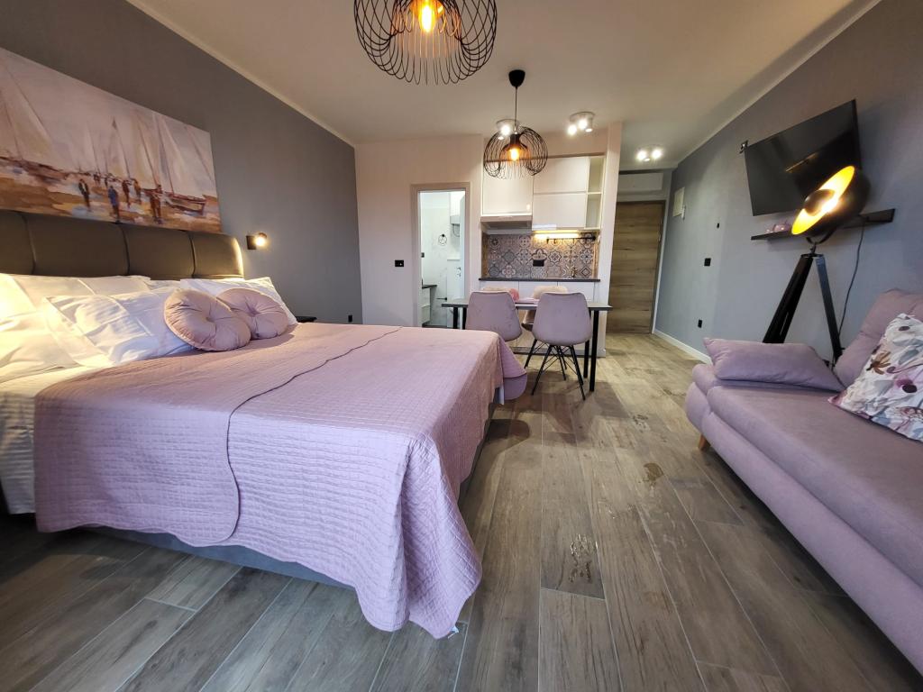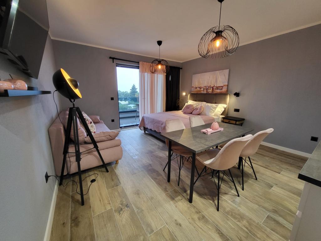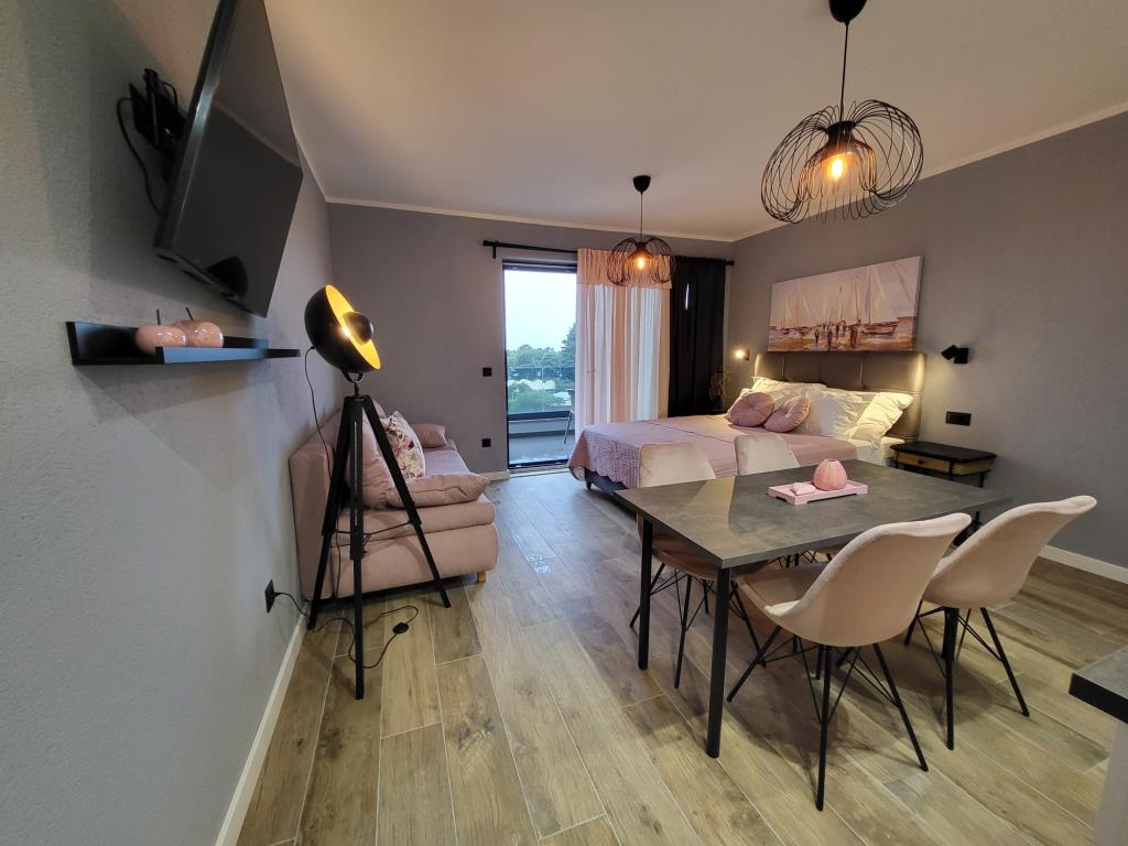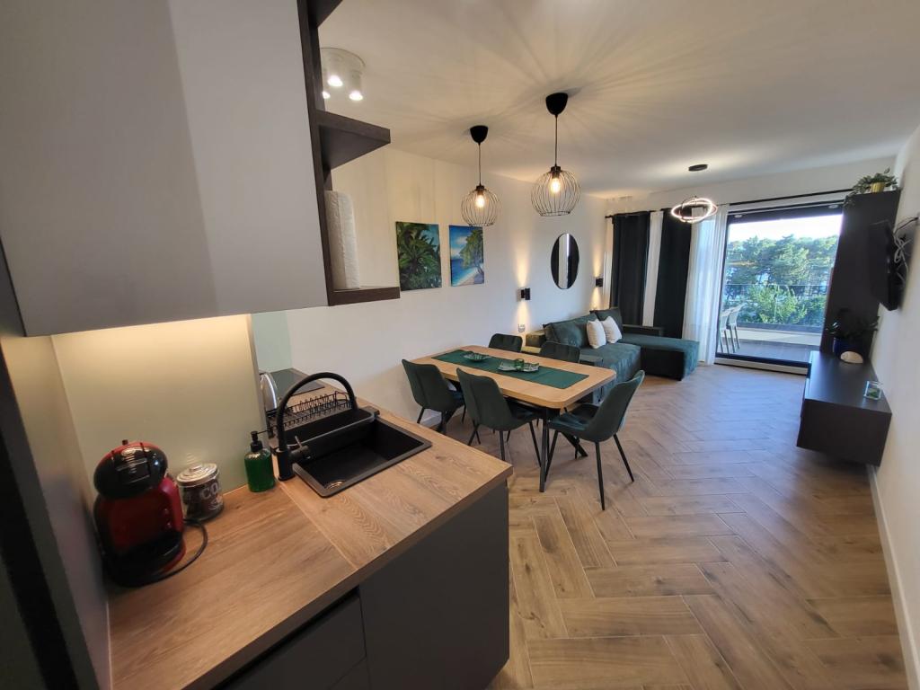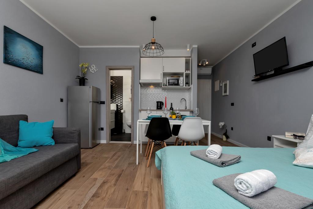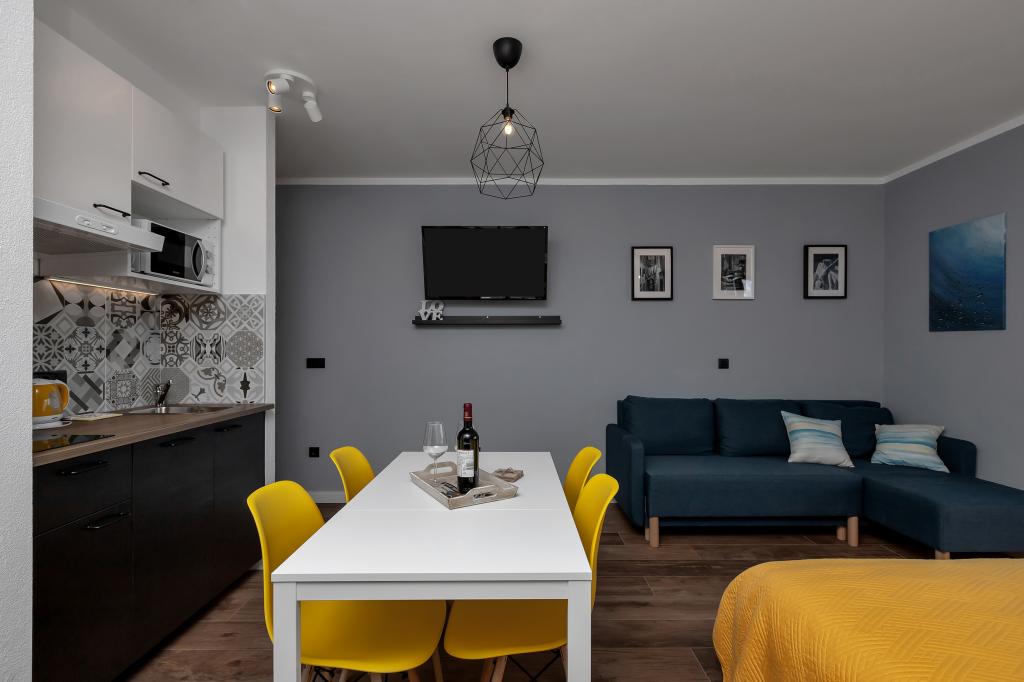 Modernly equipped apartments located first row to the sea. The facility is located a few minutes' walk from the beach. There are currently no other houses around the object at that location. Parking is free, and the garage is subject to availability at an additional cost. A warm welcome and a pleasant stay to all guests.