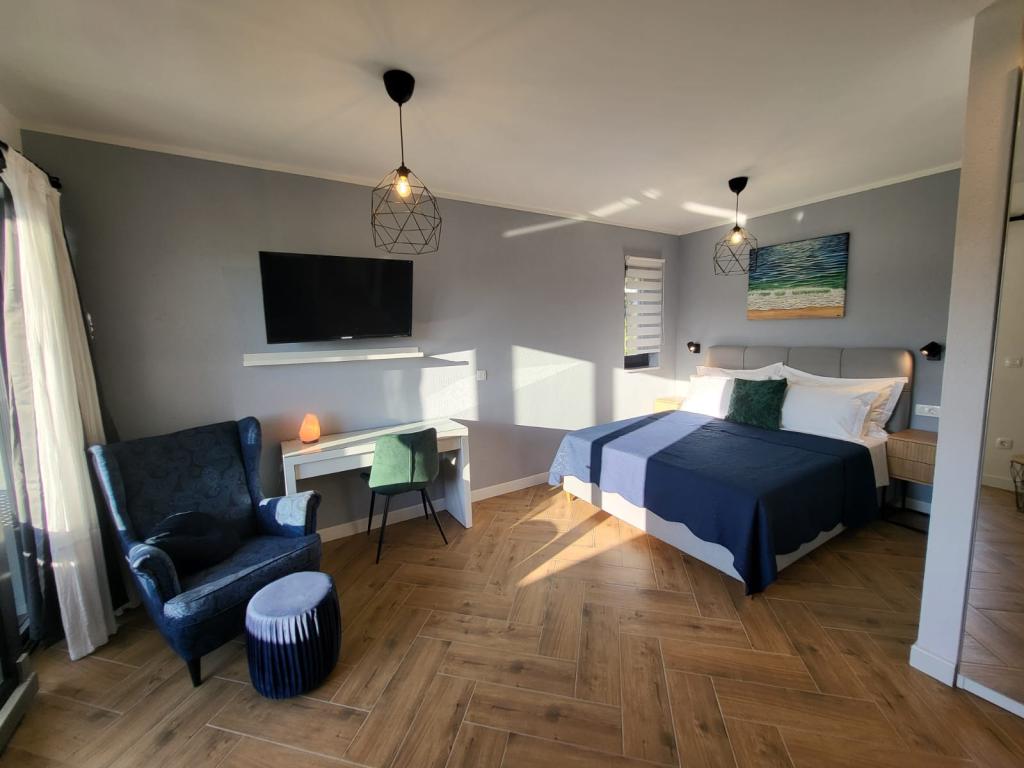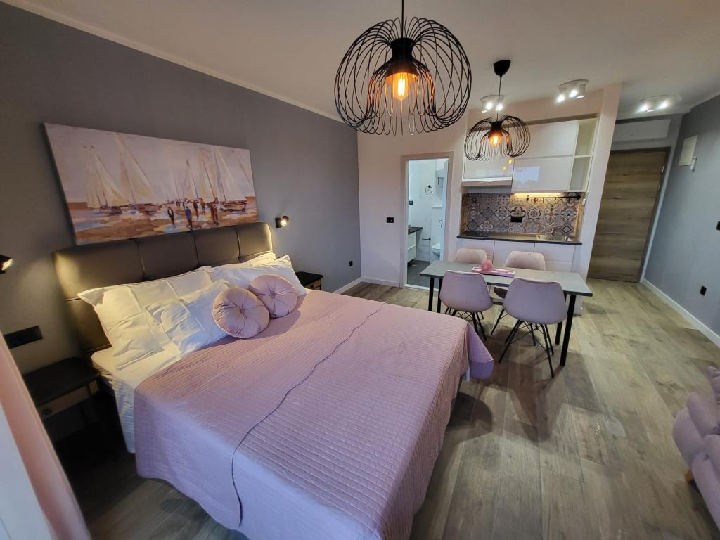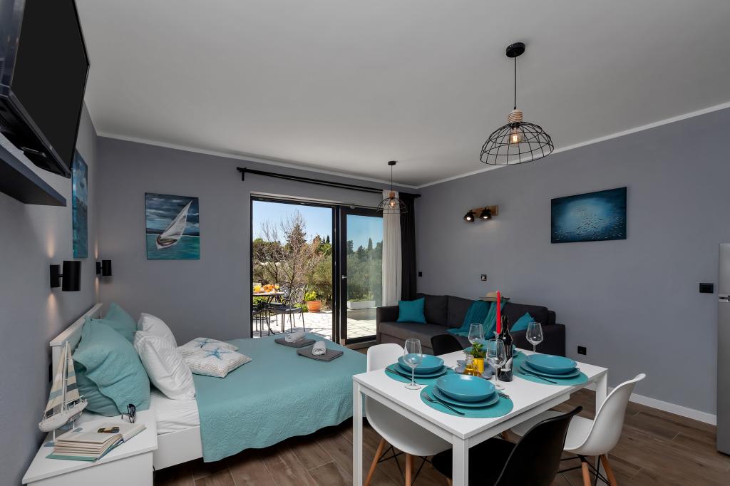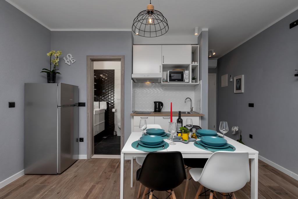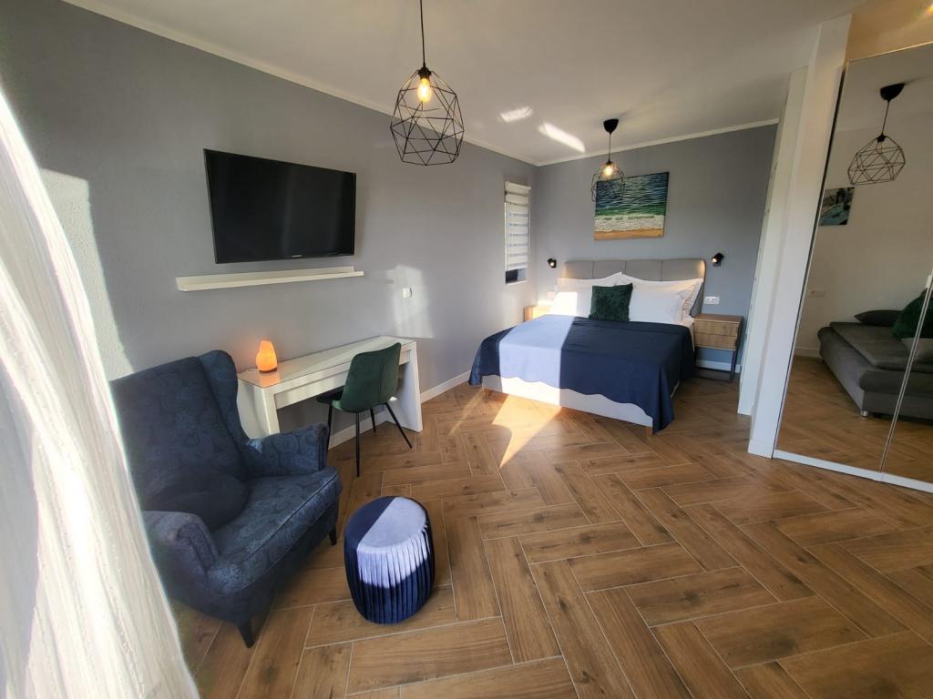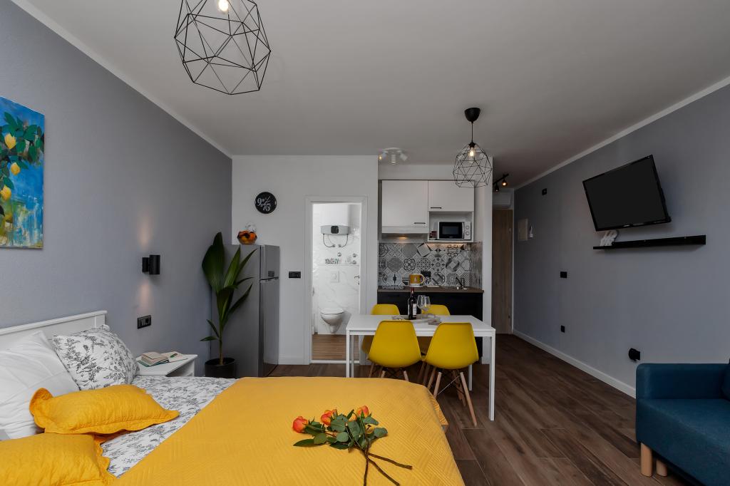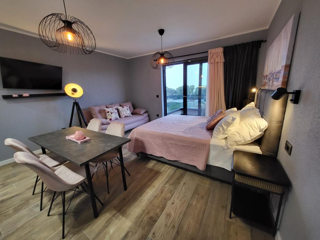Modernly equipped apartments located first row to the sea. The facility is located a few minutes' walk from the beach. There are currently no other houses around the object at that location. Parking is free, and the garage is subject to availability at an additional cost. A warm welcome and a pleasant stay to all guests.