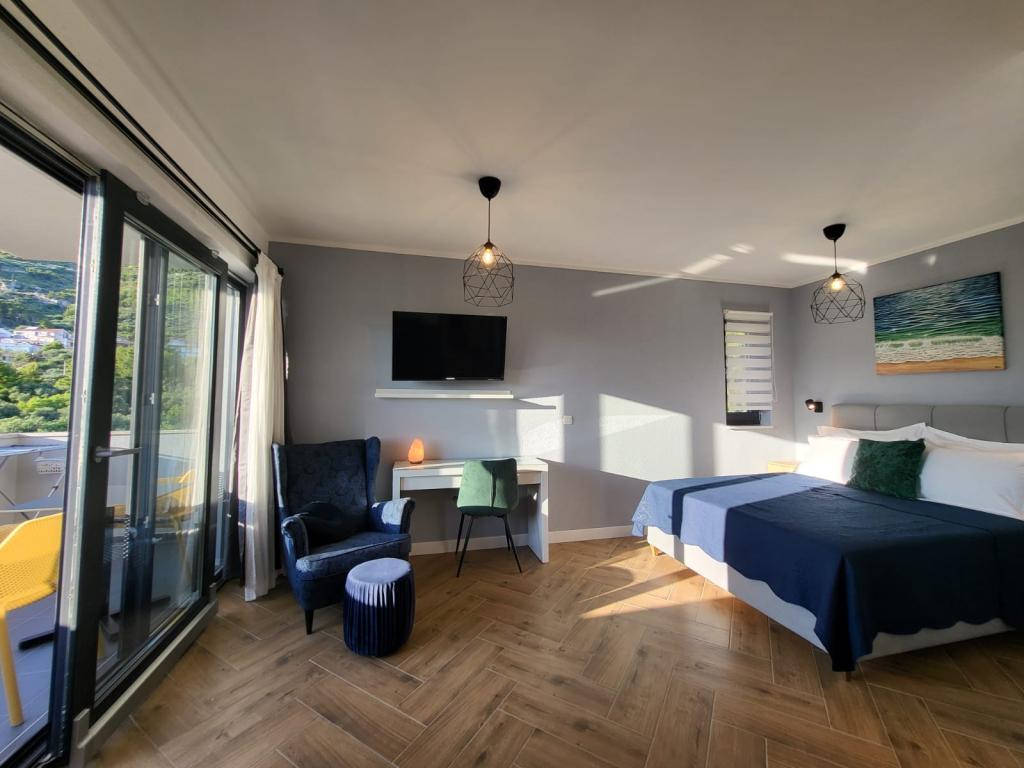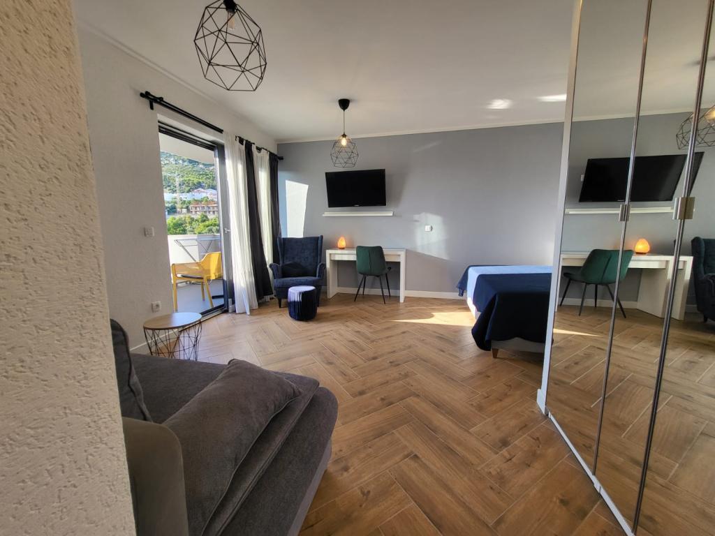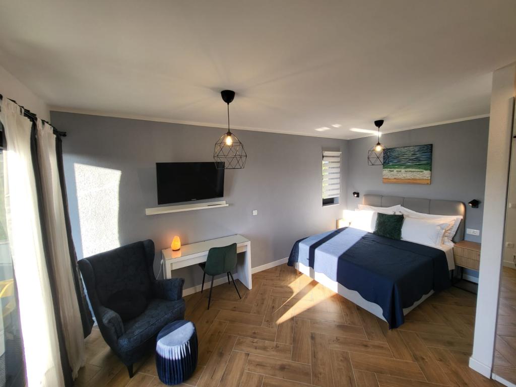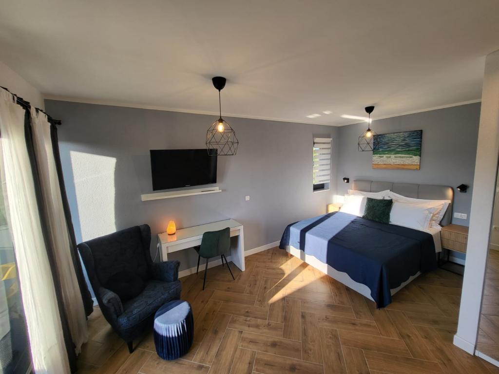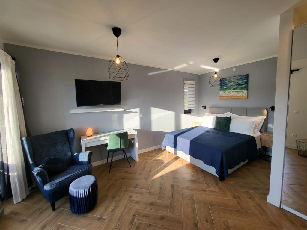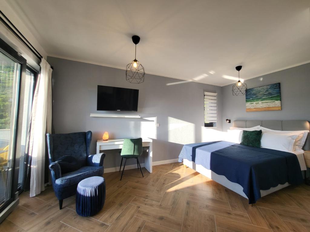 Modernly equipped apartments located first row to the sea. The facility is located a few minutes' walk from the beach. There are currently no other houses around the object at that location. Parking is free, and the garage is subject to availability at an additional cost. A warm welcome and a pleasant stay to all guests.