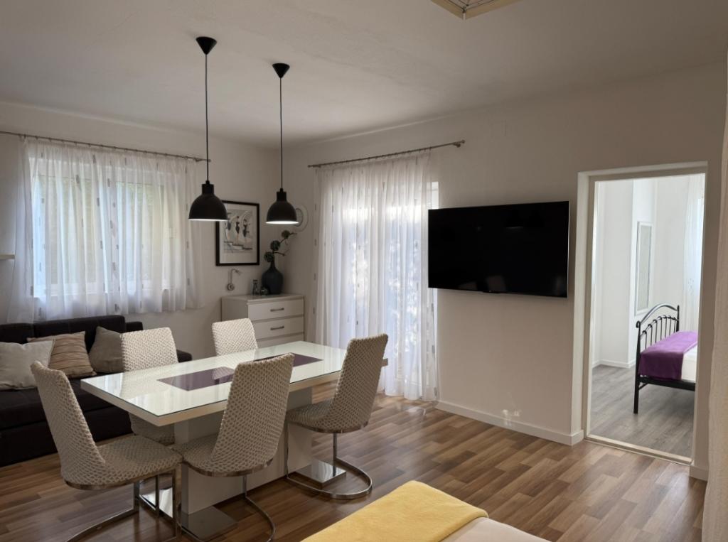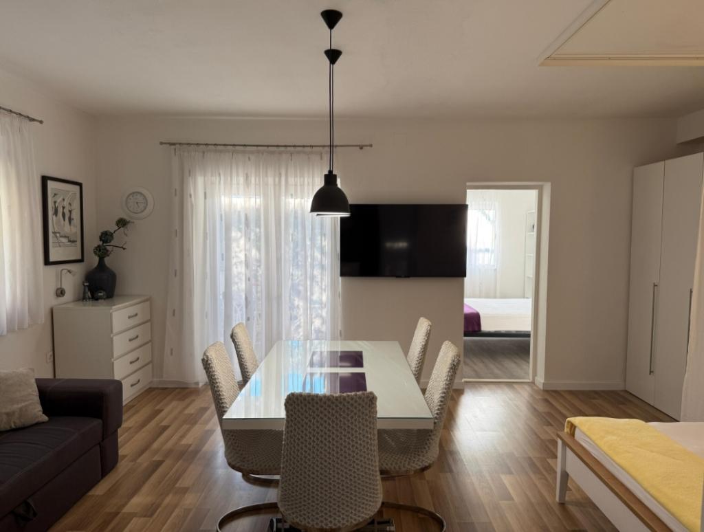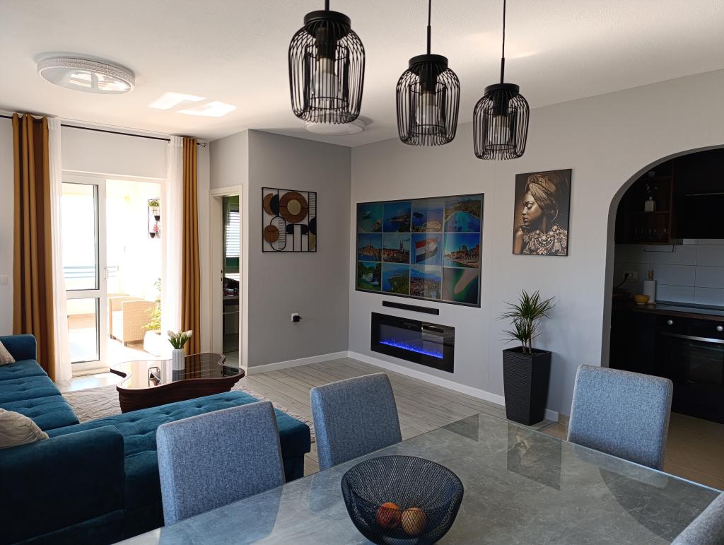 The best vacation, the apartment is superbly decorated, clean and equipped with everything you need for a pleasant vacation, real luxury, a large terrace and a beautiful view of the sea, secured parking, etc... everything is just like in the pictures, the owners are very kind, everything was great, everything is within reach, the beach, the sea is close and crystal clear, our family had a great time and only praise to the owners for taking such good care of the apartment, it is clear that it is very important to them that the guests are satisfied and that they lack nothing. We will definitely come back again
