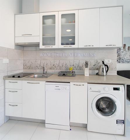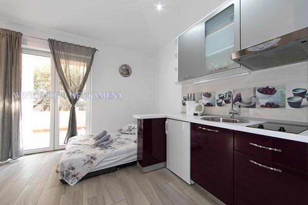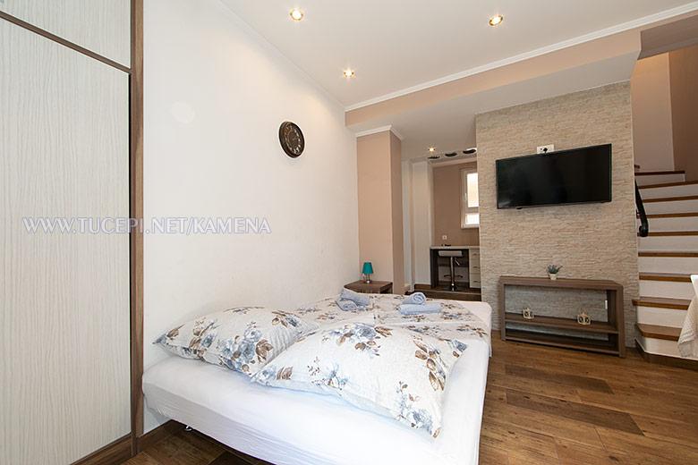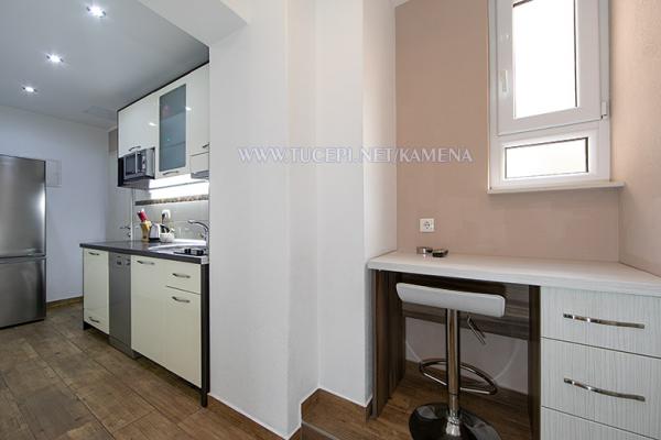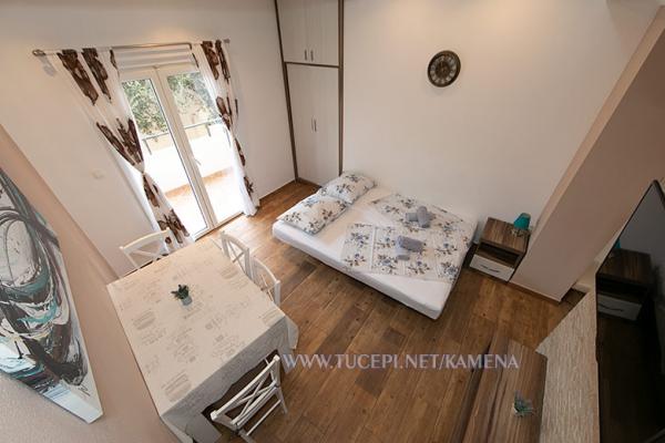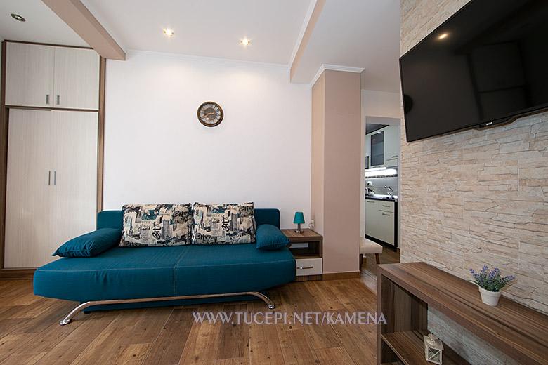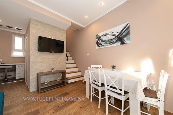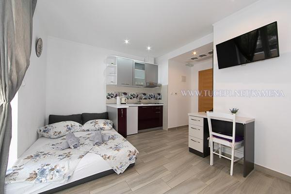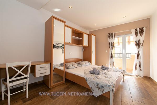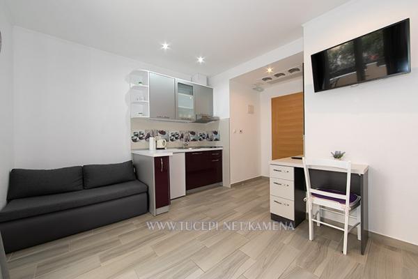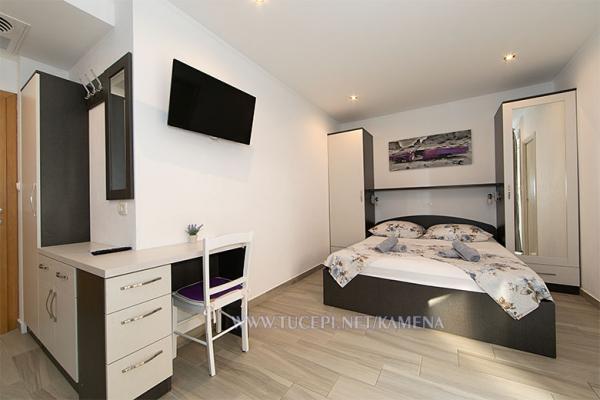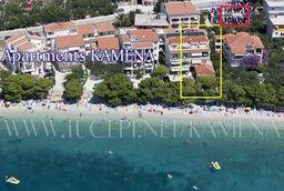 Apartments Kamena are located in a quiet part of Tučepi, located first row to the sea. We offer modernly equipped apartments and studio apartments for 2, 3, 4, 5 and 6 people with a parking space for each apartment. All our apartments have air conditioning, TV, satellite, Wi-Fi and all necessary kitchen and bathroom equipment. Our building also houses our family restaurant Kamena, where you can try traditional Dalmatian cuisine with a superb selection of Croatian wines. In the immediate vicinity there is also a beach cafe for afternoon coffee or a cocktail by the sea. The very center of the town with numerous cafes, restaurants, post office and pharmacy is 300 m away.