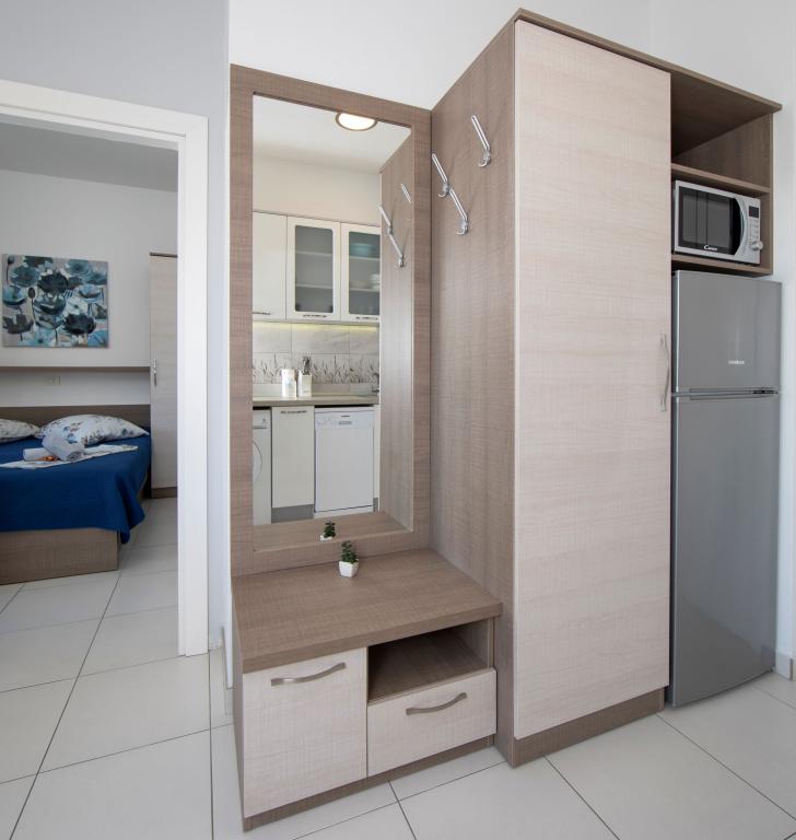 This is a very clean and well-furnished apartment in a very pleasant location right by the beach. The rooms were really clean and nice, a beautiful balcony with a view of the sea. Air conditioning, parking, and a really nice and pleasant lady owner. The restaurant on the ground floor cooked excellently. We will definitely be happy to come back.