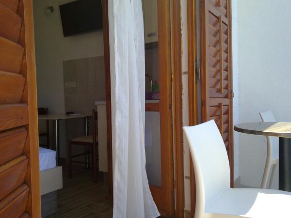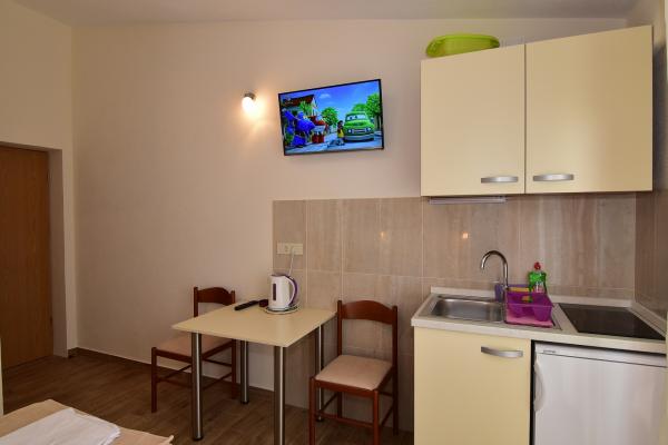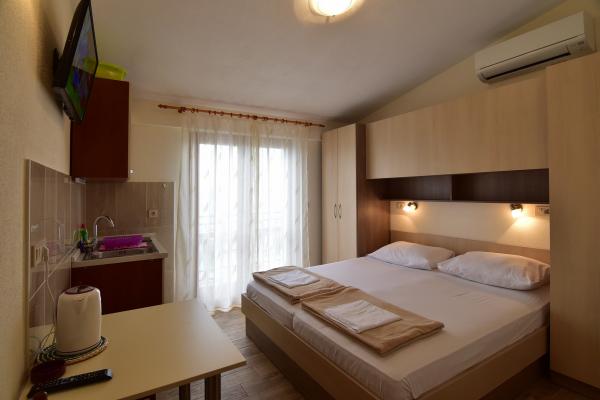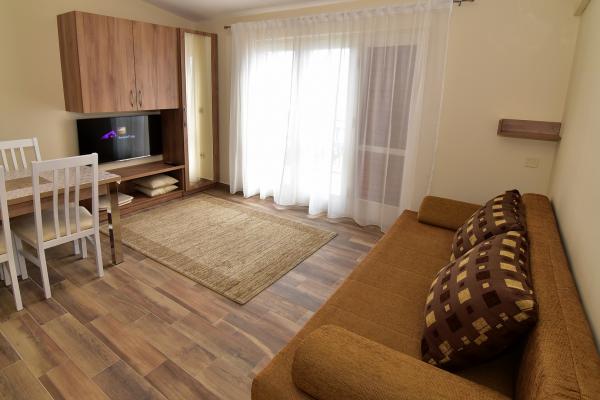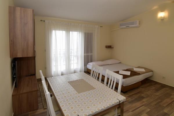 The apartment is located in the center of the first row to the sea near the long sandy beaches, shops, restaurants, post offices and other content that may be of interest to vacation. It consists of a bedroom, bathroom, mini-kitchen, dining room, living room with terrace that offers beautiful views of the sea, islands and natural beauty of the place.