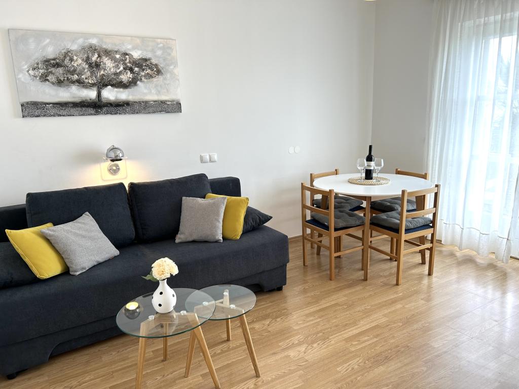 Adorable accommodation, we were more than satisfied. The beach is 150 m from the house. The owners are great. The apartment was clean and tidy, we felt comfortable. The owners were always available. I recommend!