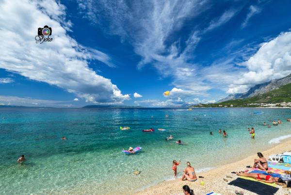Modernly equipped apartments in the very center of Tučepi. Second row from the sea. Distance from the beach 100 m. Within 150 m there is a clinic, pharmacy, post office, shop, many restaurants and cafes, children's playground...