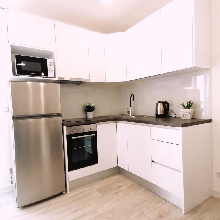 The accommodation was excellent, the studio apartment is just like in the photos, everything is new and custom-made. The apartment is clean and tidy, the balcony is large, with a deck chair. The apartment has everything you need for a stay. The hosts are unobtrusive, yet always available. Everything to be praised!