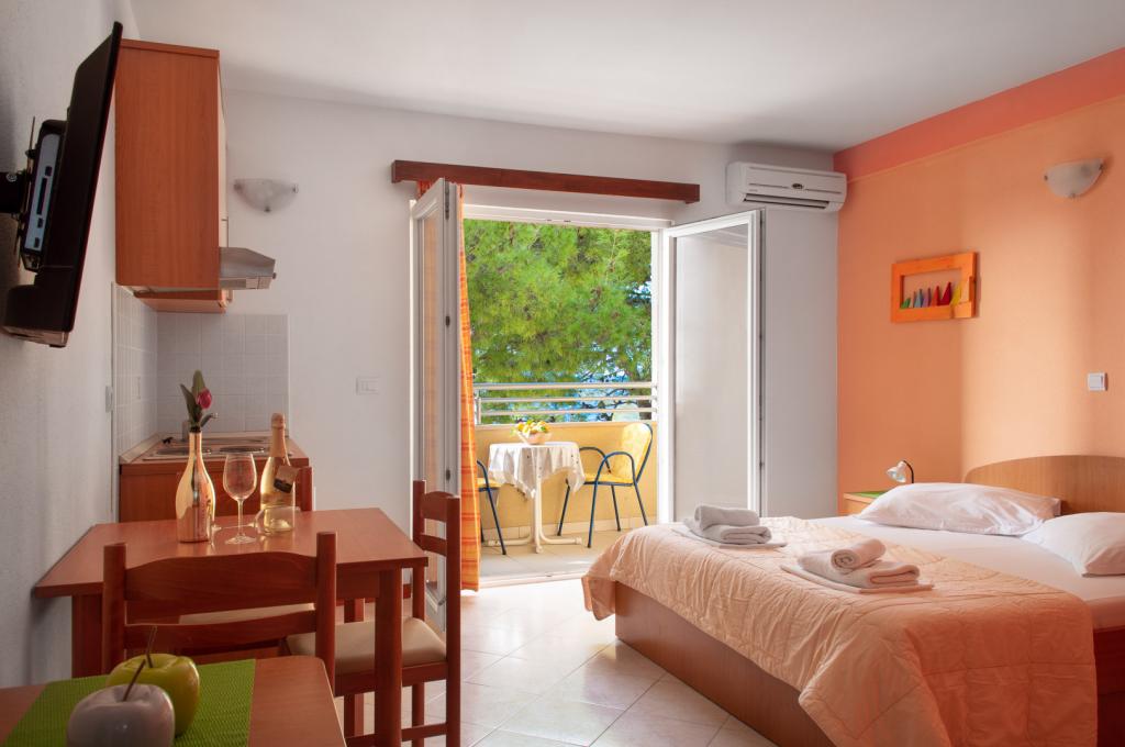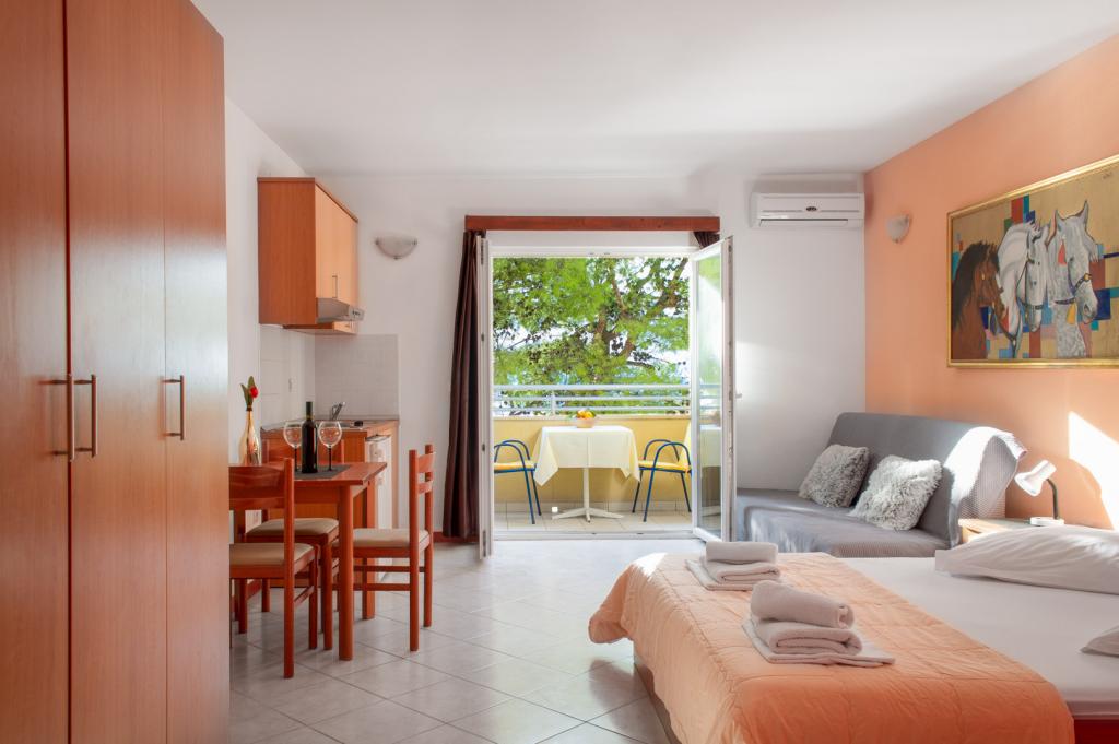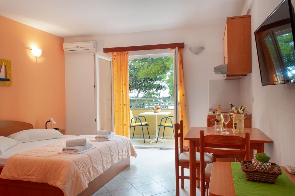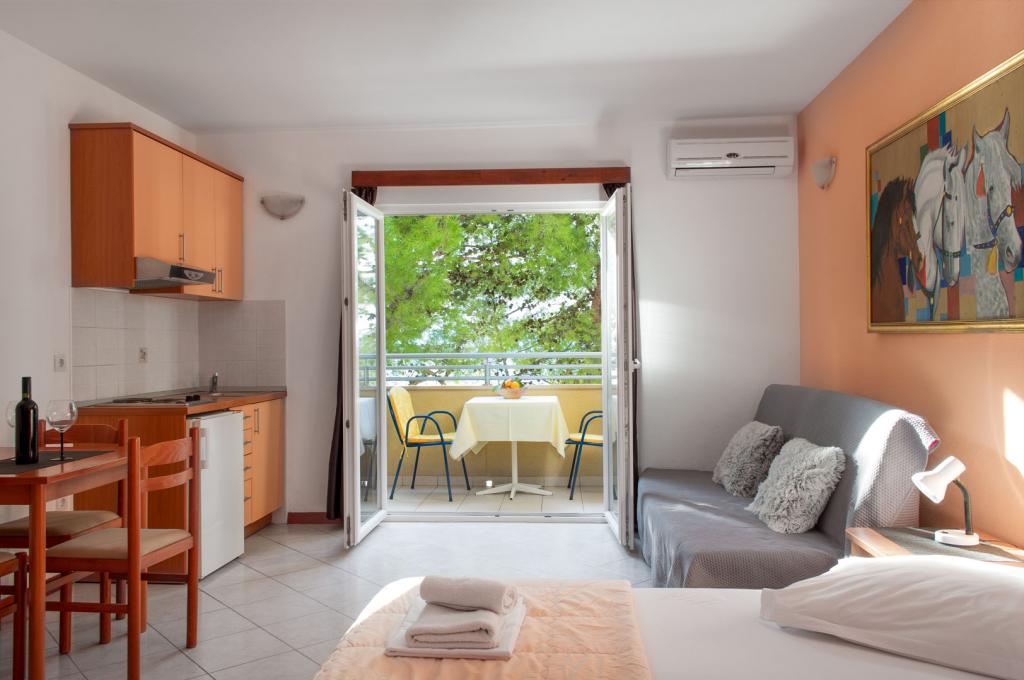 This facility is located on one of the best beaches in the region. On the first and second floor of the house there are 8 apartments for rent. They all have south-facing balconies with seating. Each apartment has an equipped kitchen, microwave, kettle, air conditioning, free Wi-Fi and parking. Laundry service is available for a small fee. Parking is located nearby. For any additional information about individual apartments or the city, feel free to contact us.