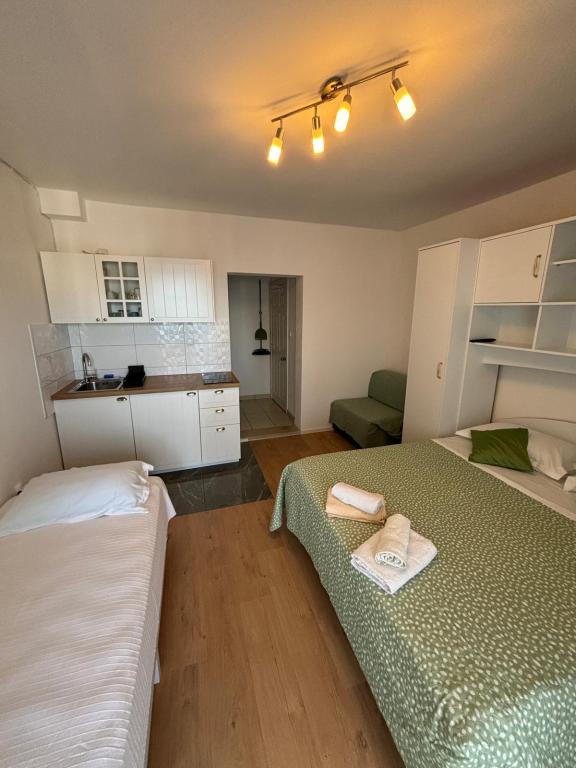 We are located in the center, 50m from the beautiful beach in Tučepi, (4km), pharmacies, shops and apartments are equipped restorana.Svi klma devices, wireless internet and private parkingom.Uz rich gastronomy, sports, cultural and entertainment activities, you stay in our beautiful the place will make nezaboravnim.Nedaleko of us (10min walk) there are tennis courts and sports igralista.Veliki selection of restaurants which can be reached in 2min. There is the possibility of excursions by boat to visit our beautiful islands and a number of other facilities.