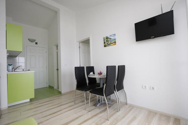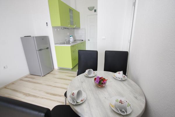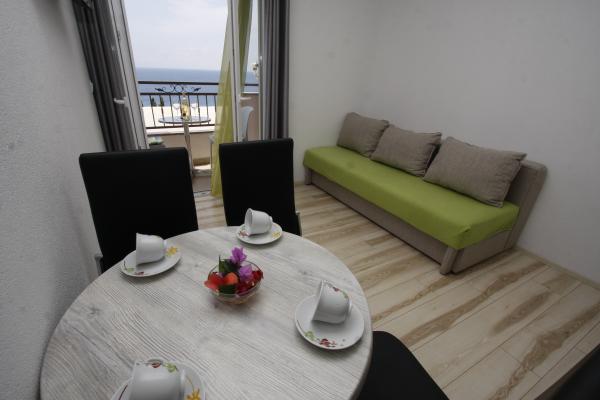 Excellent accommodation. The apartment was perfectly clean and well equipped. Lovely view of the sea. Hosts friendly and at your service. The beach is two minutes walk, and there are all other necessary facilities (shops, bars, restaurants, etc.). Center is for about 5 min. A very important thing in a place crossing over the main road (on the way to the beach), there is a traffic light. Otherwise, the comments I do not write, but this time I really have to because I'm very pleased. Highly recommended!