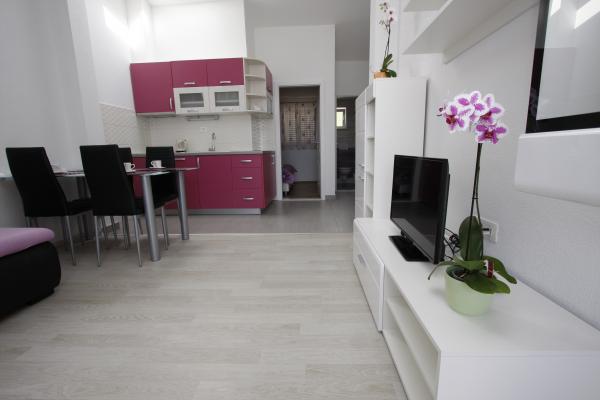 Residential tax is included in price.My girlfriend and I were in the orange apartment from August 3. until 15.8. and we didn't have a single comment. The apartment is superbly decorated and comfortable, it has everything you need for living and cooking. The beach is a few minutes' walk from the apartment, and small shops are also nearby for buying everyday things. As for the hosts, all praise for their friendliness and helpfulness. If we needed help or advice, they always helped us and answered all our questions. In short, congratulations to both of you! We loved our stay and will definitely come back!