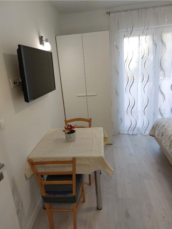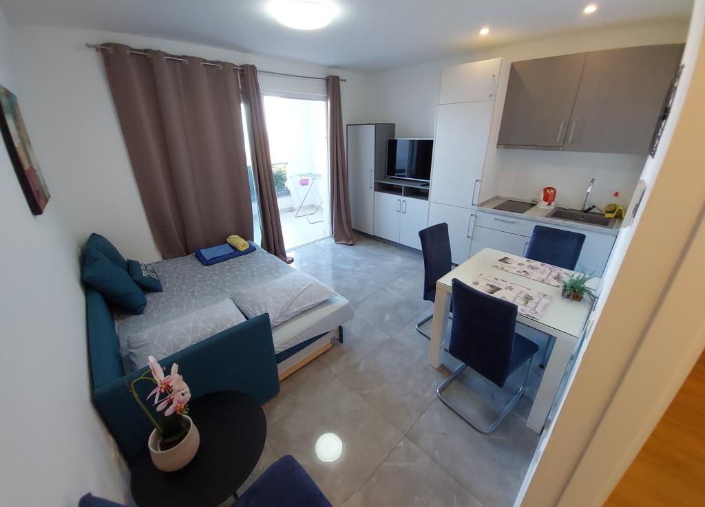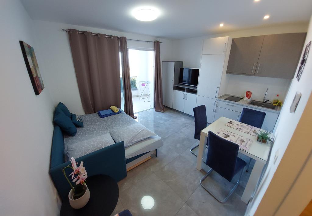 We stayed 6 nights and the apartment is highly recommended. Everything is clean and tidy, the bed is very comfortable. The living room has air conditioning, the room also has a separate air conditioner, as well as internet and TV. Terrace with a view of the sea and the sea is a 2-minute walk away. The host in this case, Vesna, welcomed and accommodated us nicely, and all praise for her kindness