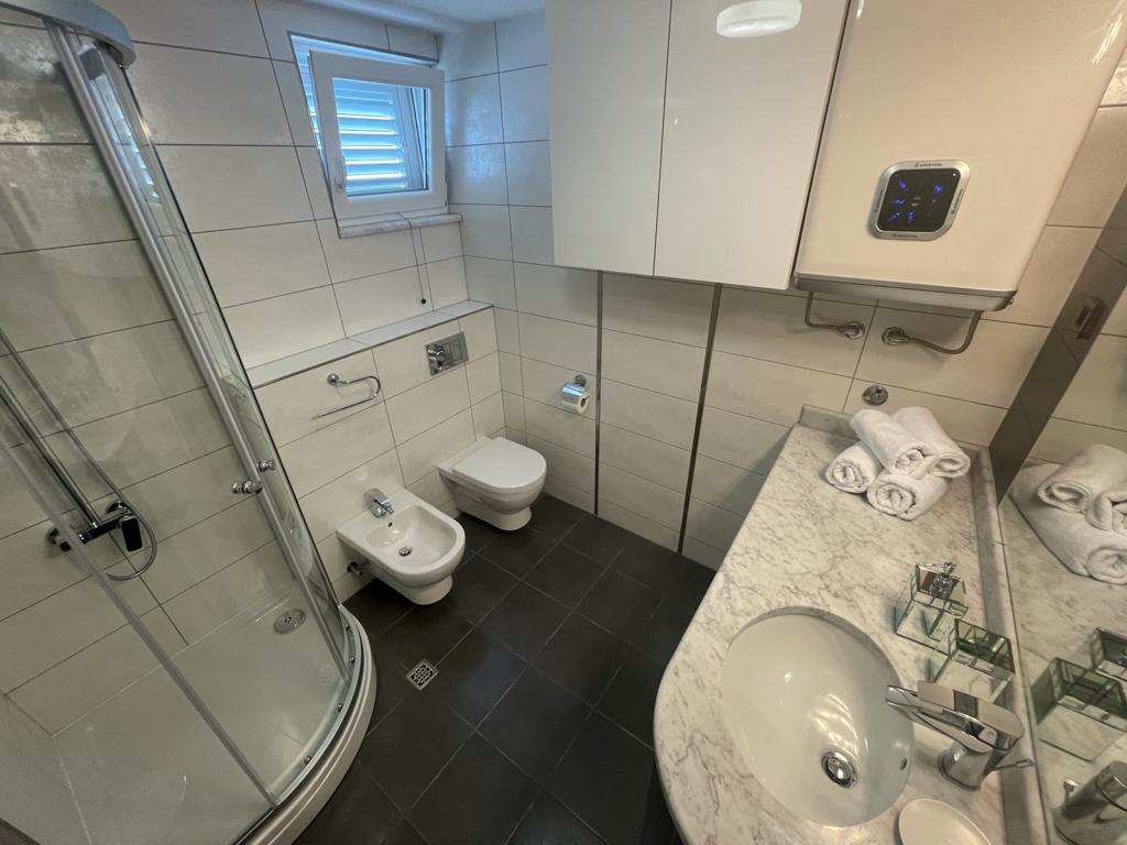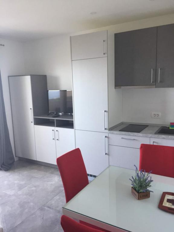 Super apartment, modernly furnished, cozy and clean with a large terrace and a beautiful view of the sea. Spacious bathroom and kitchen, quiet air conditioning. It is only 2 minutes to the sea. Parking right next to the house. Kind and caring Mrs. Vesna. We recommend it and we will definitely come back here.