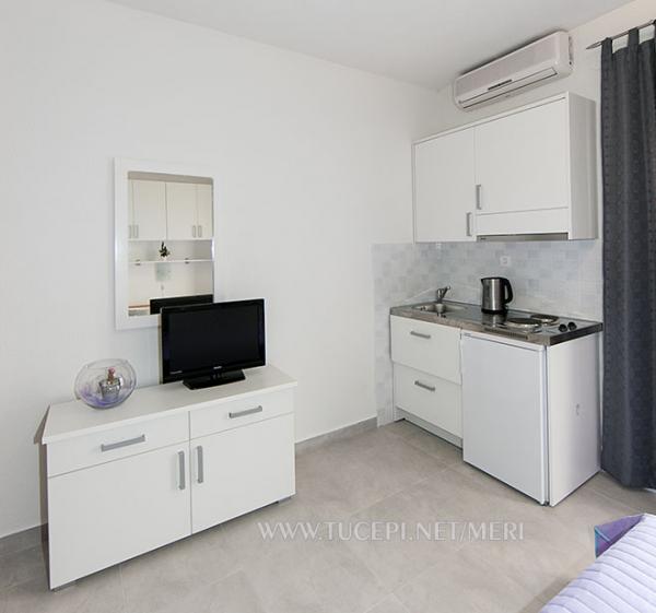 Fully furnished apartments close to the town center, about 2 minutes walk away and 40 meters from the beach with a large parking lot in front of the house