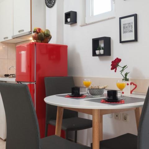 Just 150 meters from the beach, Villa Nela is next to the Alga Hotel. The proximity of the beach, sports grounds, promenade, restaurants, cafes and all other facilities necessary for a complete holiday, guarantees a pleasant and unforgettable summer. The Covic family is not only the owners of the villa, but also the villa staff who take care of everything that will make your vacation in Tučepi as enjoyable as possible. This kind of hospitality gives the guests of Villa Nela a family atmosphere, a personal and very cordial service that you cannot get in larger hotels. With tradition and courtesy, Villa Nela offers you everything a top-notch tourist facility of this type can offer. Apartments have their own bathrooms, air conditioning, satellite tv, wireless internet connection, safes, large spacious balconies and secured parking space in front of the villa. The climate is disinfected and the apartments are spotlessly clean.