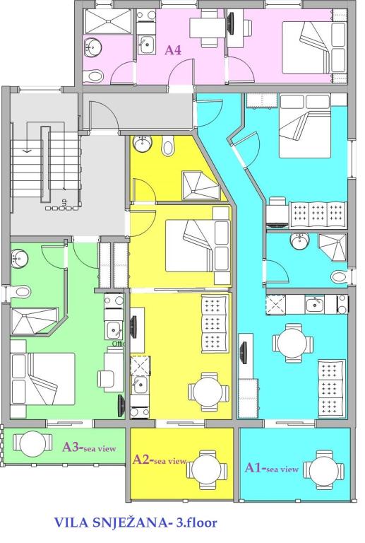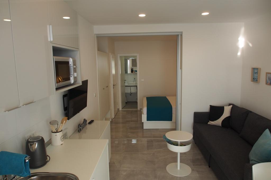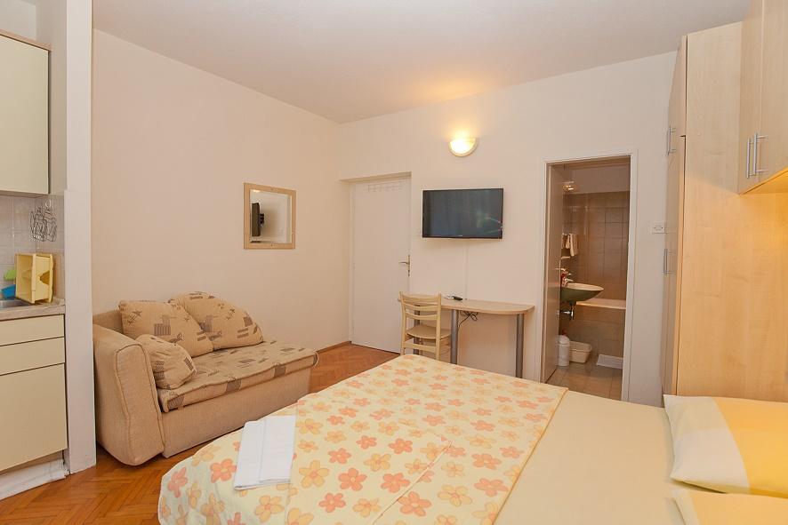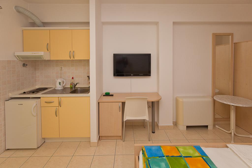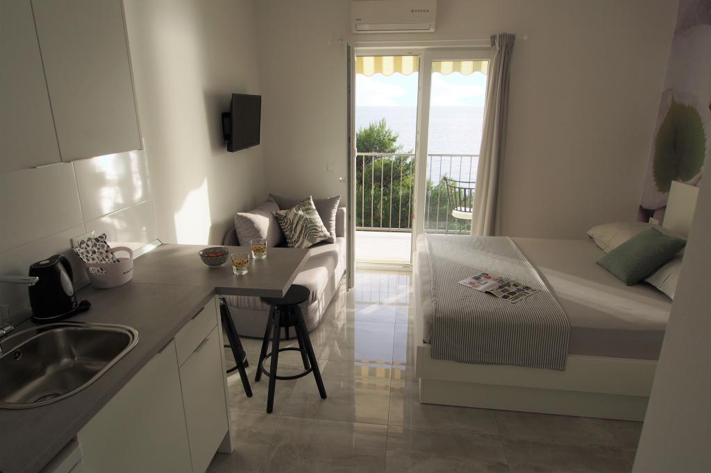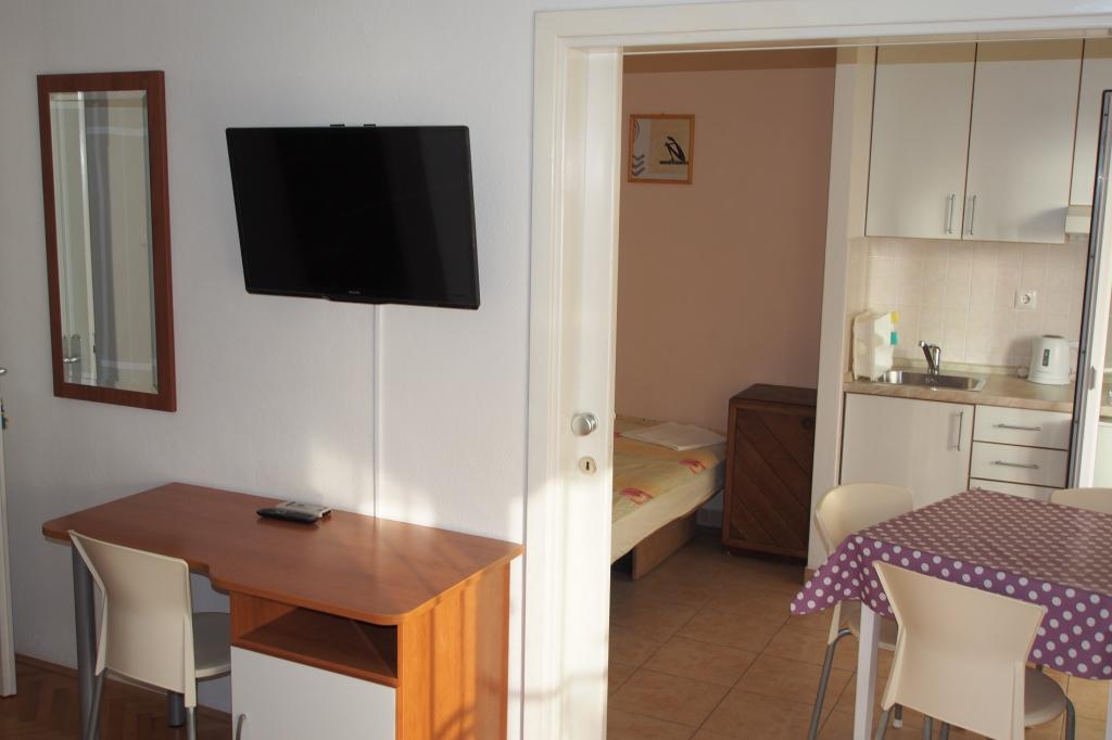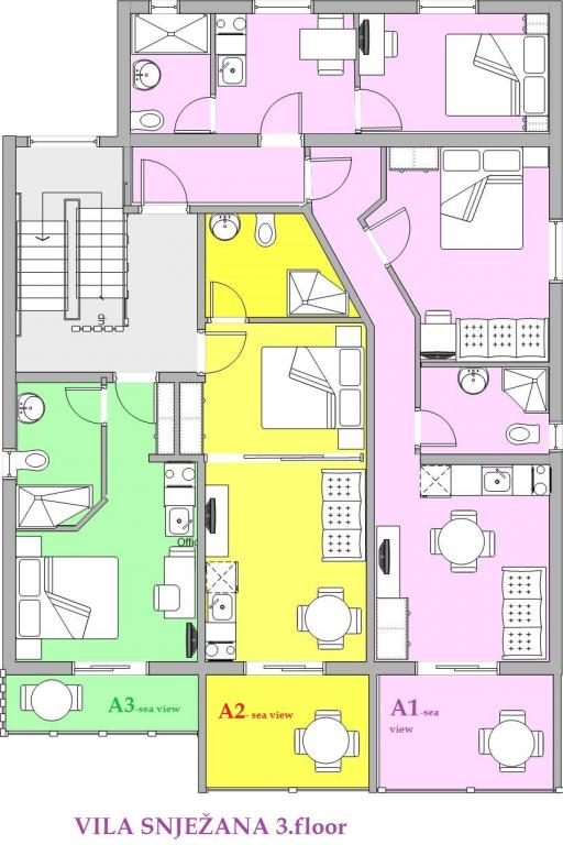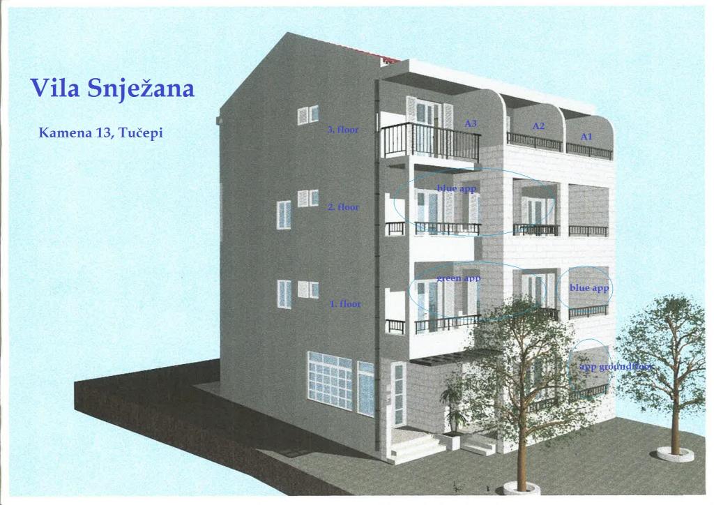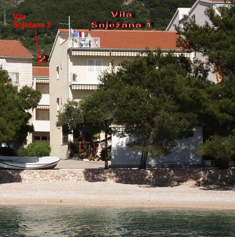 Villa Snježana is located in a quiet part of Tucepi directly next to the most beautiful beach in the Adriatic. The Villa Snježana offers you modernly furnished apartments and studio apartments for 2, 3, 4 and 5 people. All apartments have air conditioning, CTV, signal for WIFI and all necessary kitchen and bathroom equipment. Within the villa Snježana there is a parking for all our guests in the yard of the house under centuries olive trees. We also offer two garage parking places for our guests. In the immediate vicinity there is a beach cafe for a pleasant afternoon coffee by the sea as well as the famous Stone restaurant with superb chef\s delicacies and traditional Dalmatian dishes. The center itself with many cafes, restaurants, mail, pharmacy is 300 m away. The sports center for all sports and hotels in Tucepi is 2km away from us. The loving family of Viskovic with the tradition of over 40 years in tourism will try to make your stay pleasant and to come back to us.