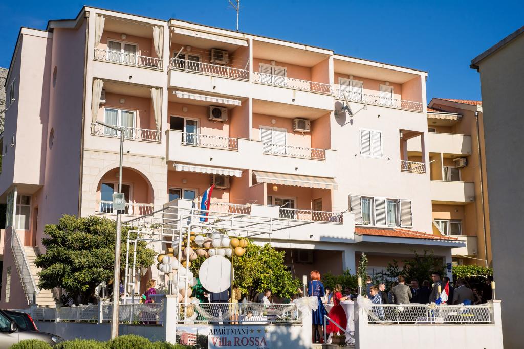 Villa Rossa is located in the center of Tucepi, 100 m away from the beach. All apartments are modern and functionally furnished and have balconies overlooking the sea. Equipment of all apartments include air conditioning, wireless Internet, satellite / TV, fully equipped kitchen, a toilet, shower or toilet, tub. The price includes tourist tax, electricity and water consumption, use of air conditioning, wireless internet, parking, bed linen, towels. Parking in the yard of the villa. In the vicinity of the facility of 100 to 200 m are: doctor, pharmacy, post office, ATM, currency exchange, shops, a bakery, restaurant, cafe, pizzeria, rent a boat, boat docks for trips, playground and a church.