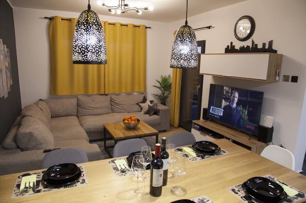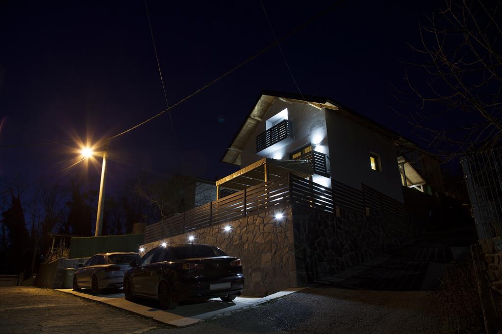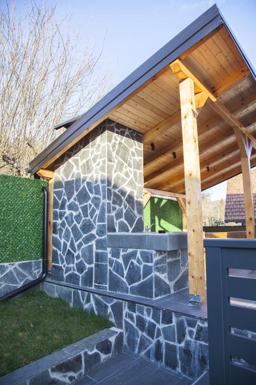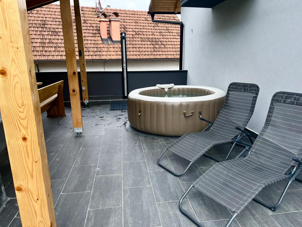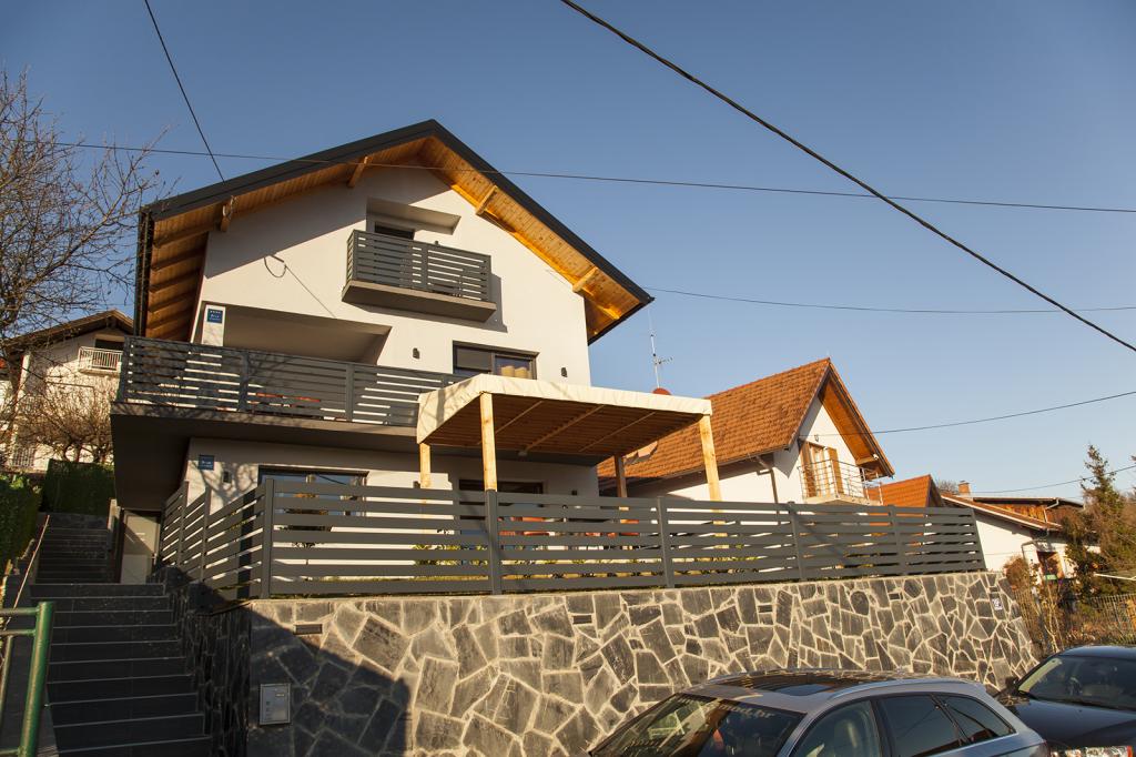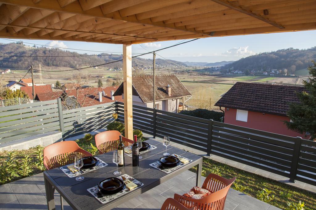 Surround yourself in style in this extraordinary space. This modern 4-star villa is located on a quiet hill above the Tuhelj Spa and has a wonderful view of the surroundings. The apartment on the ground floor (38m2) has everything you need for a perfect vacation and more. Fully equipped kitchen with oven, dishwasher and microwave with all accessories. TV with 100+ programs and Netflix. The outdoor terrace with a wooden pergola, barbecue and a beautiful view will relax you every time... The upstairs apartment is two-storey (70m2) and has 3 bedrooms, a large living room with a fully equipped kitchen, a sauna, a bathroom and a toilet. TV with 100+ programs, Netflix, PS4 console, BT radio, etc... The covered terrace offers a beautiful view of the surroundings. Access for guests Our guests have access to private parking and garage, laundry, outdoor terrace with barbecue and sink, hot tub (May-October), garden shower, sauna and much more...
