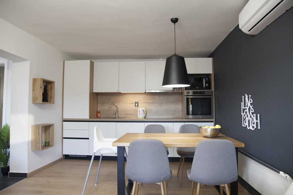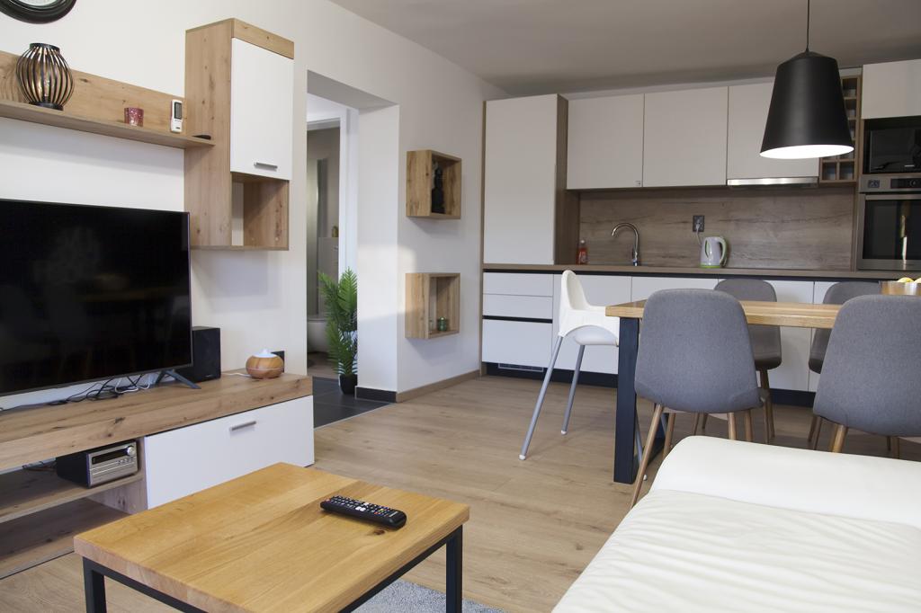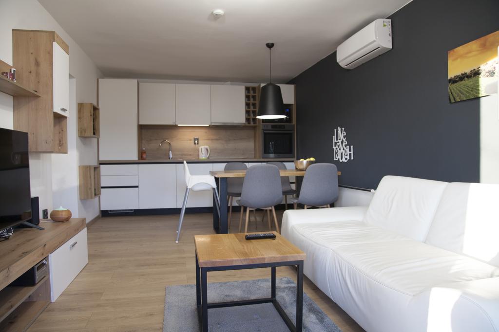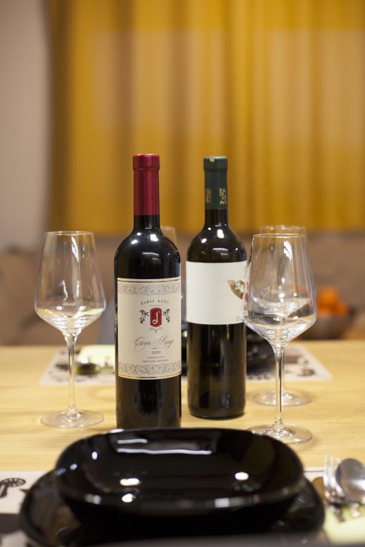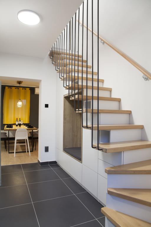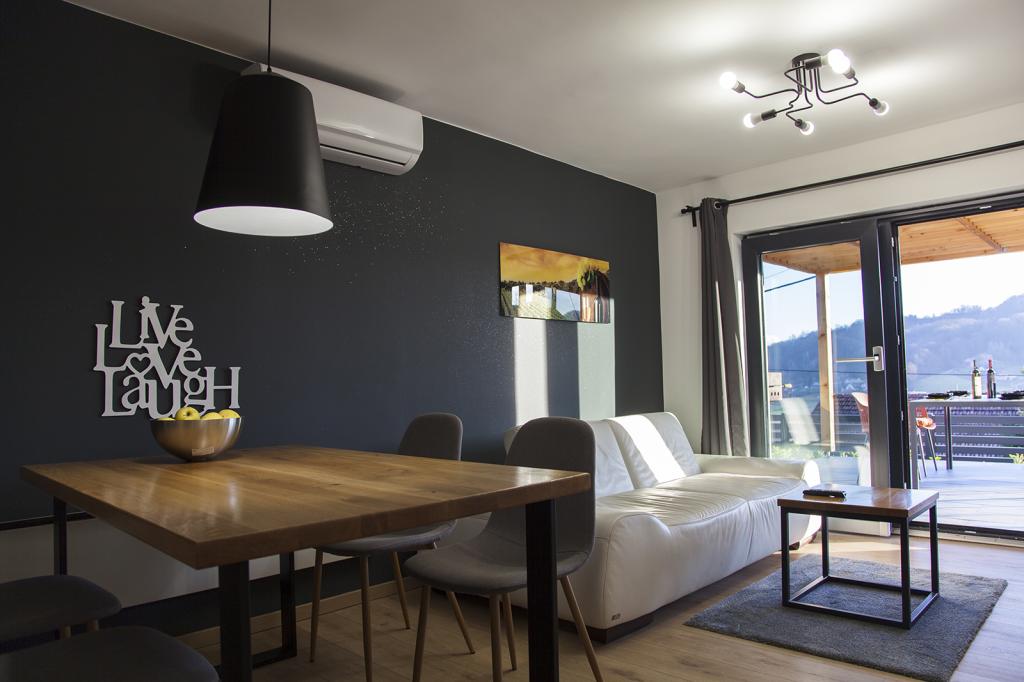 Surround yourself in style in this extraordinary space. This modern 4-star villa is located on a quiet hill above the Tuhelj Spa and has a wonderful view of the surroundings. The apartment on the ground floor (38m2) has everything you need for a perfect vacation and more. Fully equipped kitchen with oven, dishwasher and microwave with all accessories. TV with 100+ programs and Netflix. The outdoor terrace with a wooden pergola, barbecue and a beautiful view will relax you every time... The upstairs apartment is two-storey (70m2) and has 3 bedrooms, a large living room with a fully equipped kitchen, a sauna, a bathroom and a toilet. TV with 100+ programs, Netflix, PS4 console, BT radio, etc... The covered terrace offers a beautiful view of the surroundings. Access for guests Our guests have access to private parking and garage, laundry, outdoor terrace with barbecue and sink, hot tub (May-October), garden shower, sauna and much more...