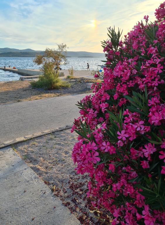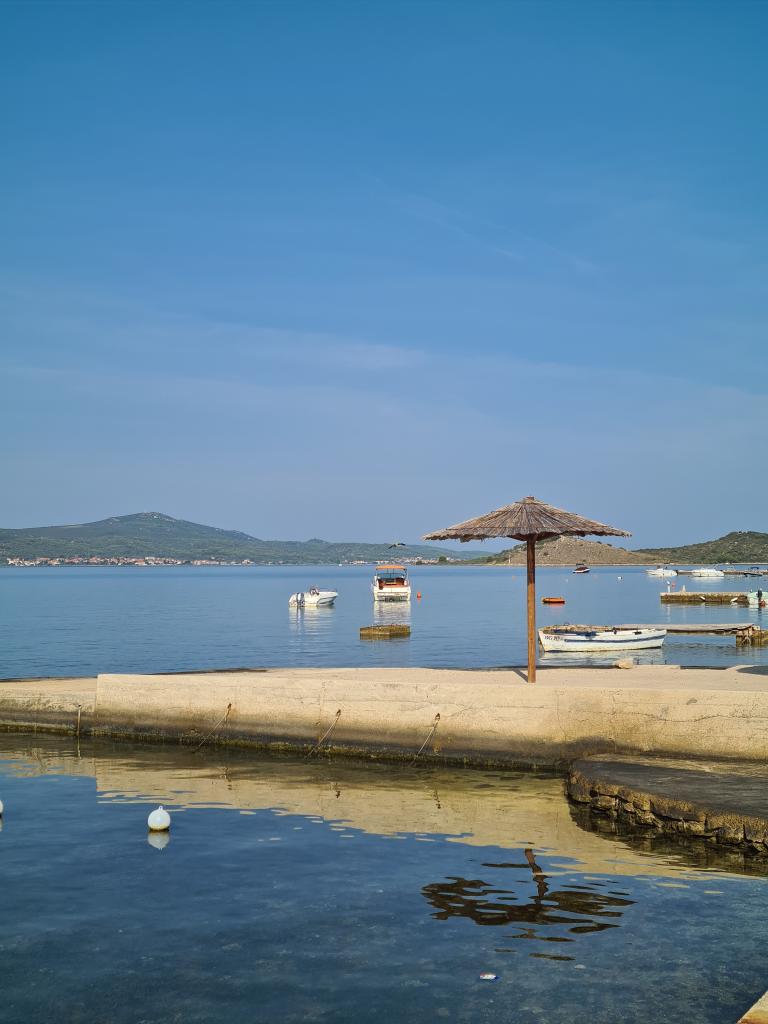 We stayed in Turanj for 6 days. The hostess was kind and sweet, she welcomed us with cakes. Accommodation as in the pictures, the sea literally in the yard. Deck chairs and an umbrella on the beach, included in the price of the apartment. The terrace of the apartment is ideal for evening relaxation. The promenade to Sv. Filip i Jakov is illuminated the entire way, ideal for evening walks. The place is small and quiet, and yet it has everything you need (bakeries, cafes and small shops). I definitely recommend it to people who want to rest and relax. Thank you, Mrs. Marija, for everything, we had a great time at your place.