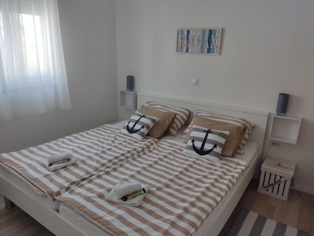 Welcome to Maris Relax Apartmant! Comfortable apartment, furnished in marine style, located in Turanj, on the border with St. Philip and St. James and only 80 steps from the beautiful pebble beach and crystal clear sea. The equipment of the apartment provides you with everything you need for a carefree and relaxing holiday and other necessary places (shop, ATM, post office, restaurants, etc.) are located 5 minutes walk from the apartment. The surrounding towns and cities offer cultural and the islands beautiful natural beauty! All you have to do is relax and rest your body and soul!