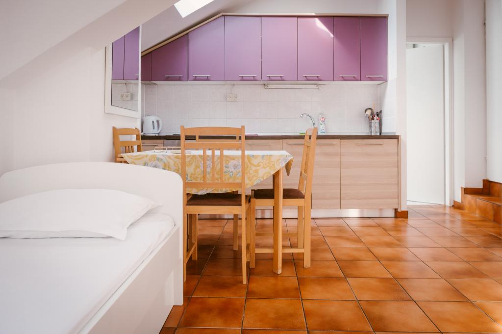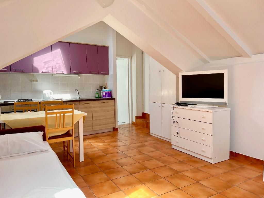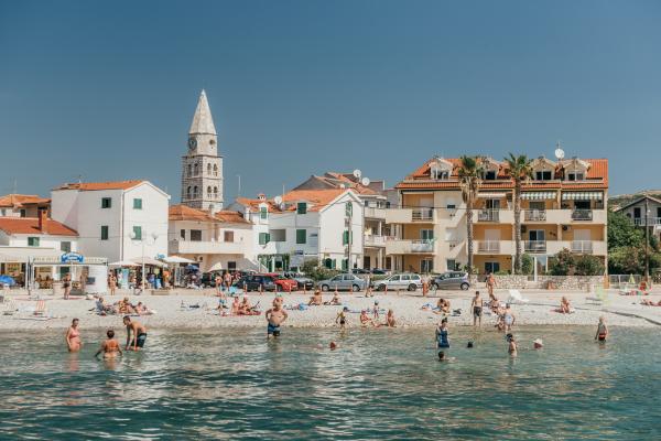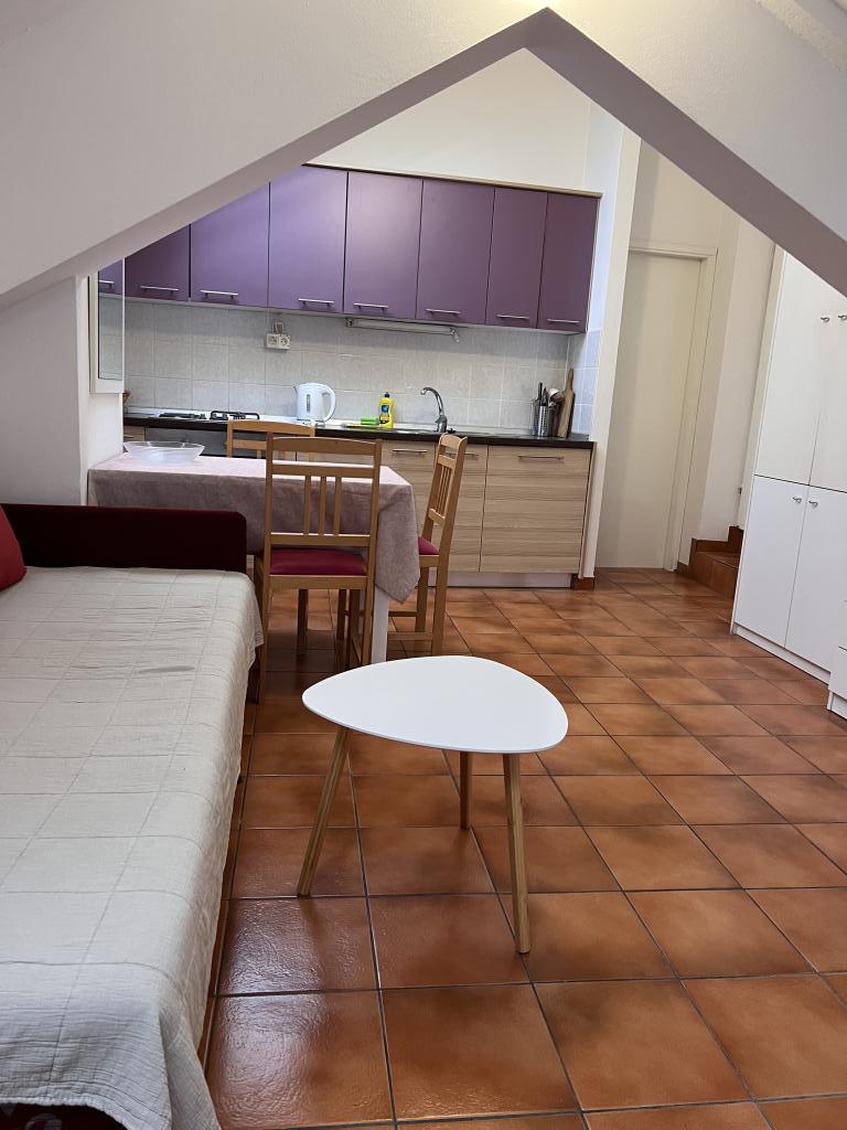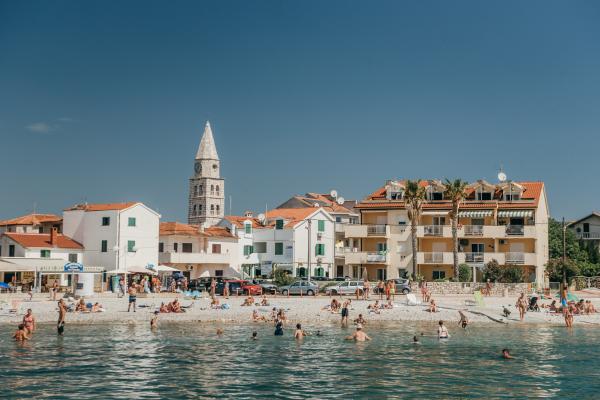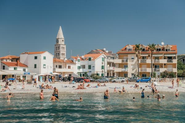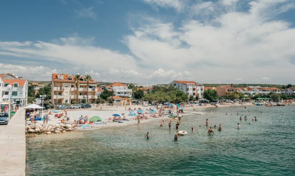 Accommodation as in the photos, everything OK. The owner of the house is a super nice person. He can speak English, Slovak, Czech, Croatian. Parking in front of the house, ice cream parlor right under the house, pizzeria right next door, 2x shops within 3 minutes walk. The beach is great, right in the water you have a big bouncy castle. Just great.